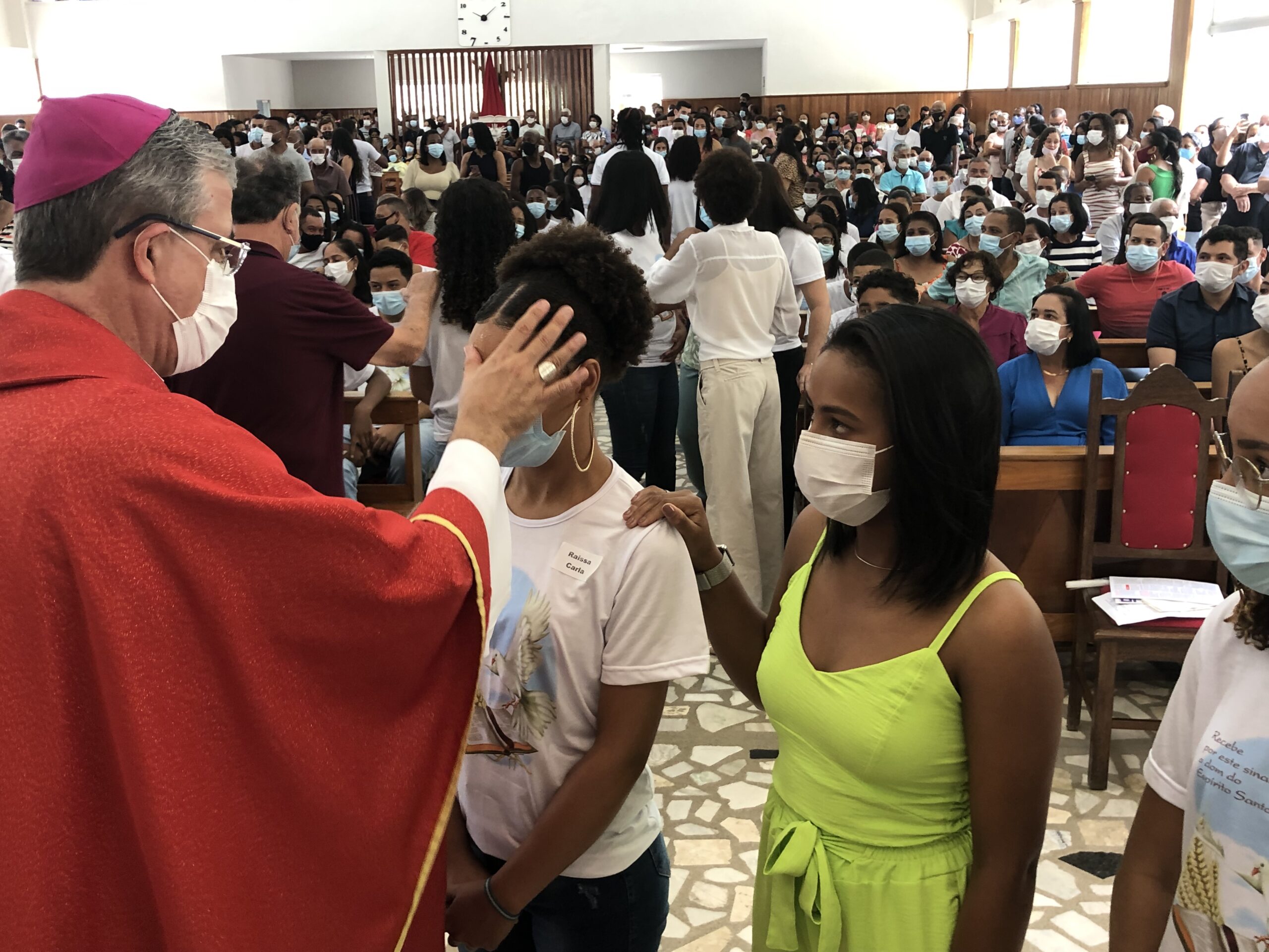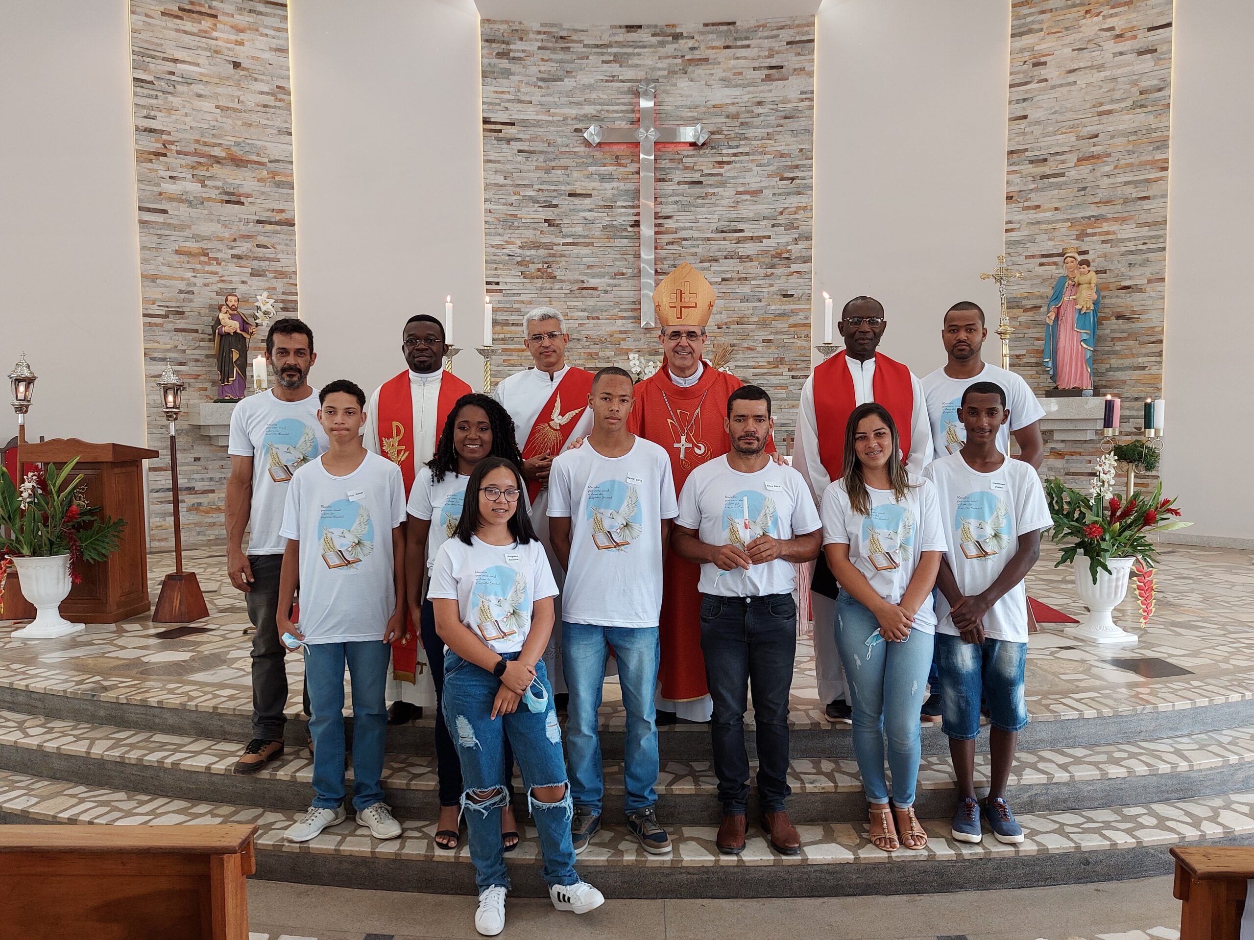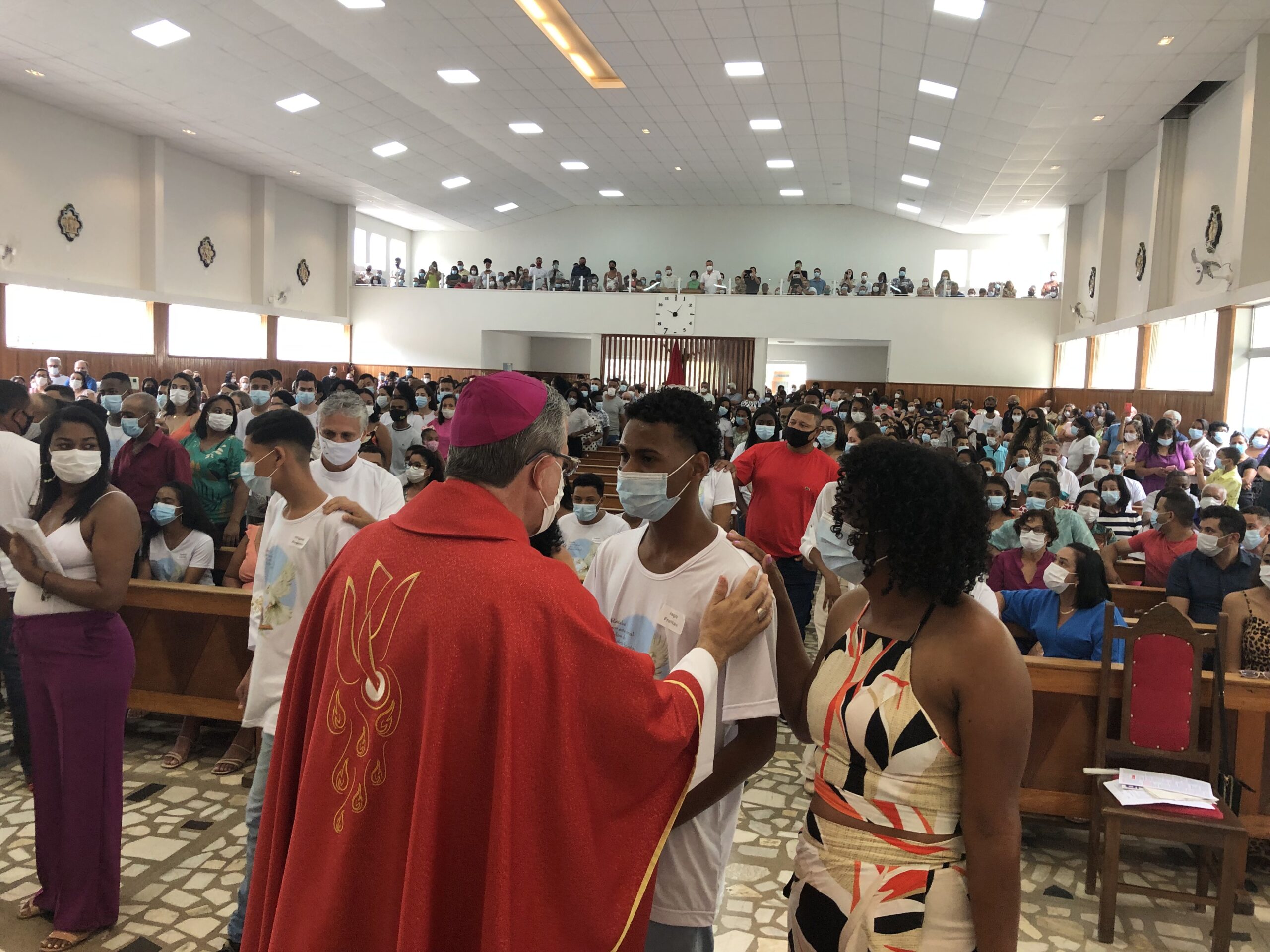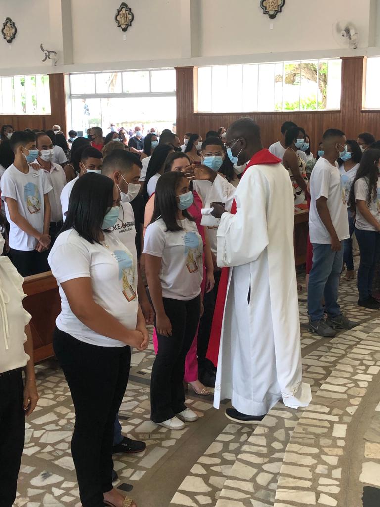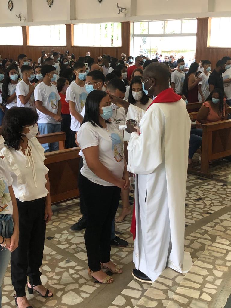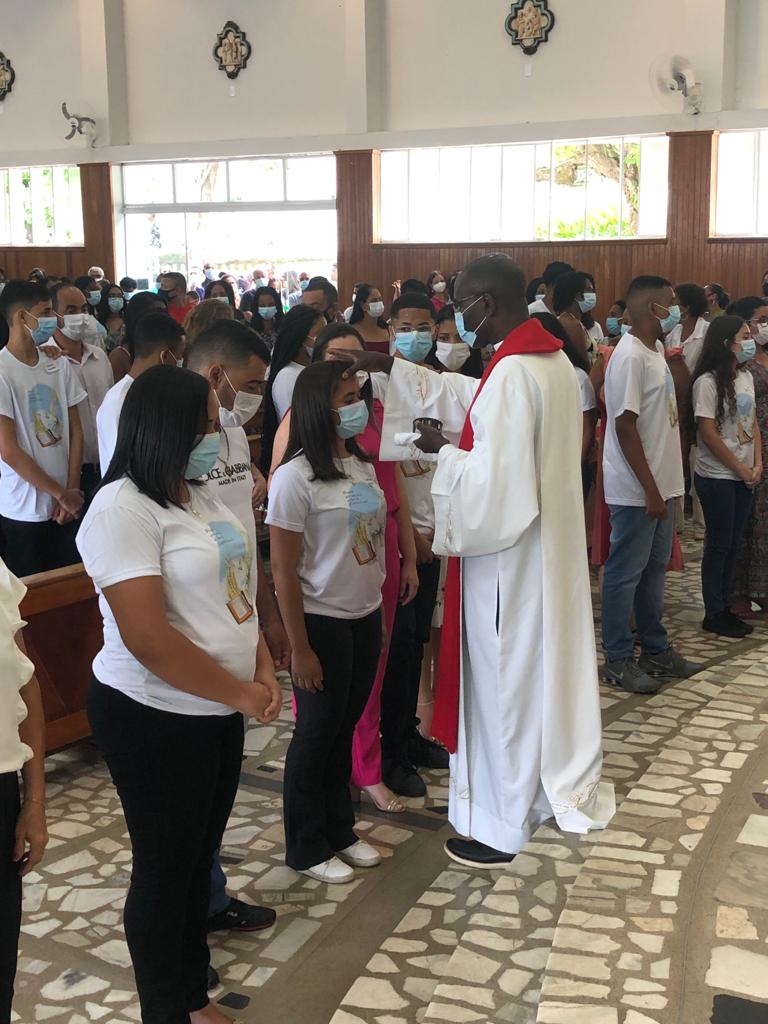 Com os devidos cuidados, devido a pandemia do Coronavírus, jovens, padrinhos e comunidade puderam renovar a fé na presença do Espírito do Senhor na igreja e no mundo.