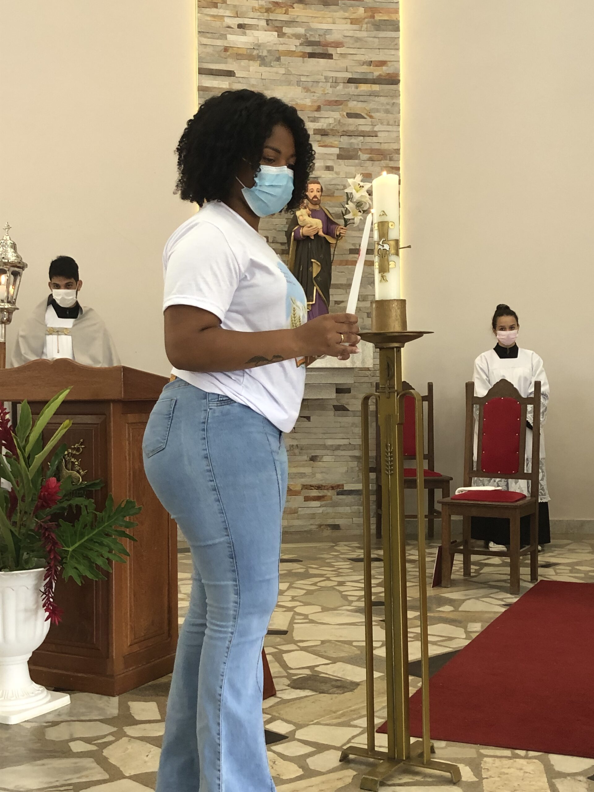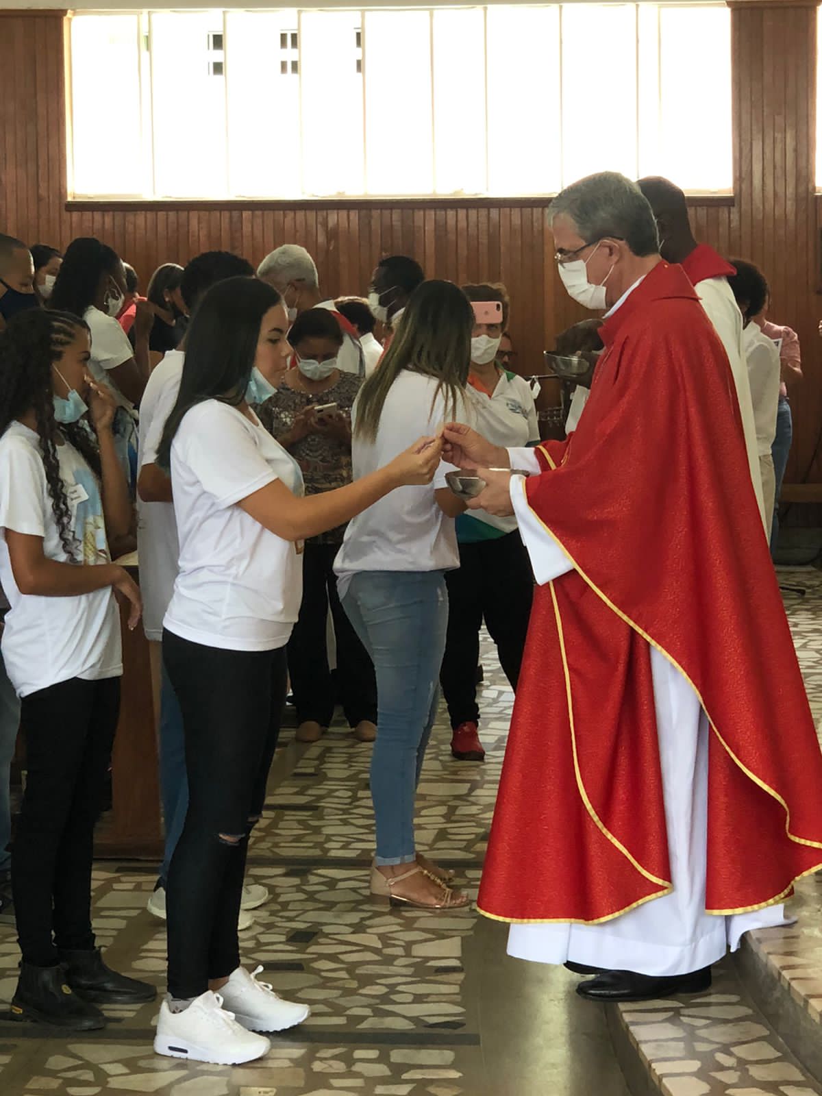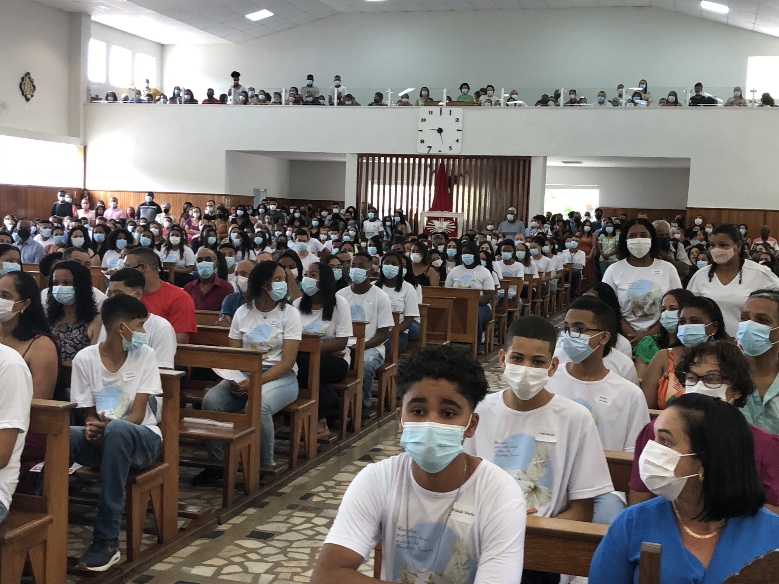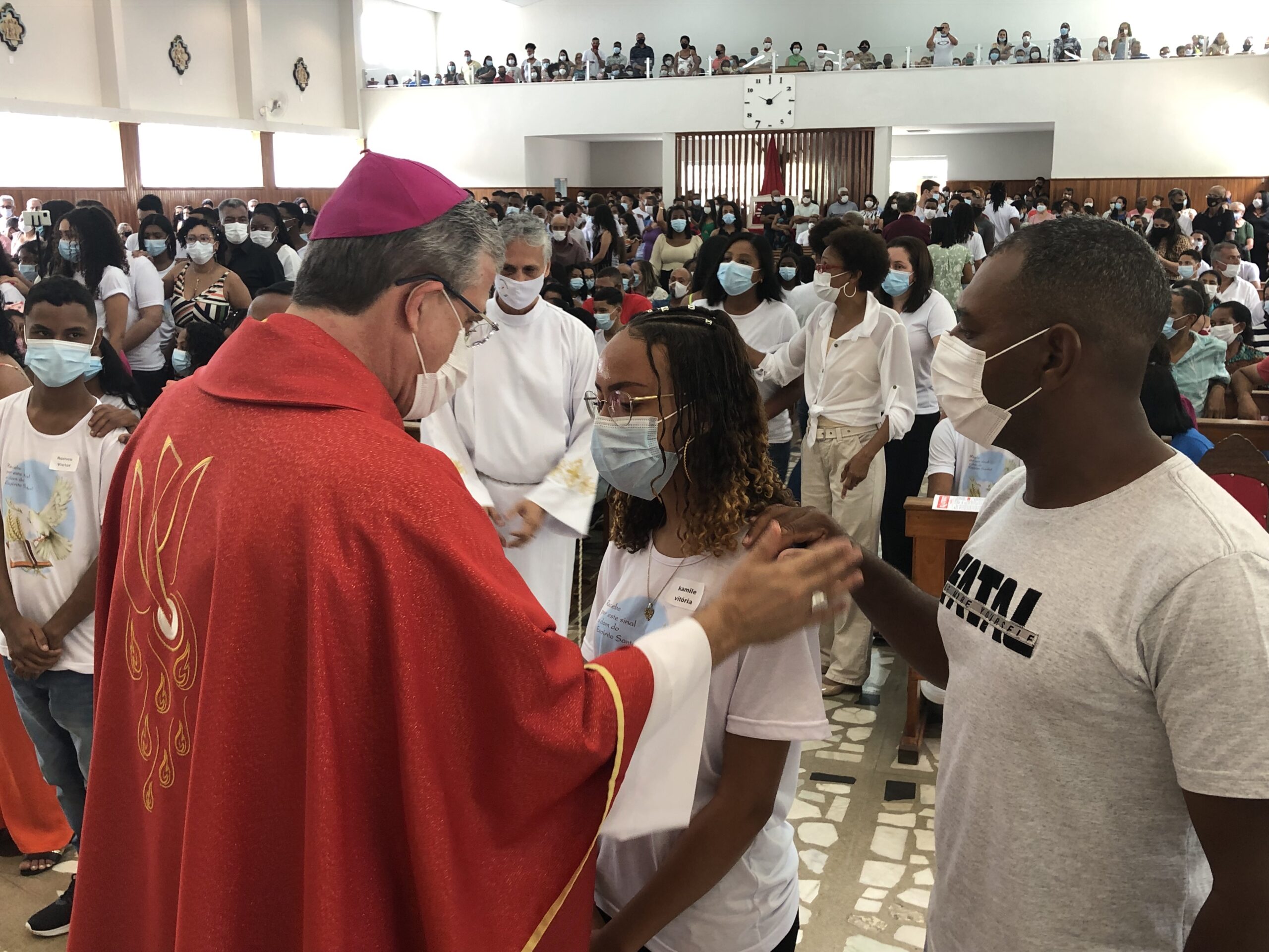 Com os devidos cuidados, devido a pandemia do Coronavírus, jovens, padrinhos e comunidade puderam renovar a fé na presença do Espírito do Senhor na igreja e no mundo.