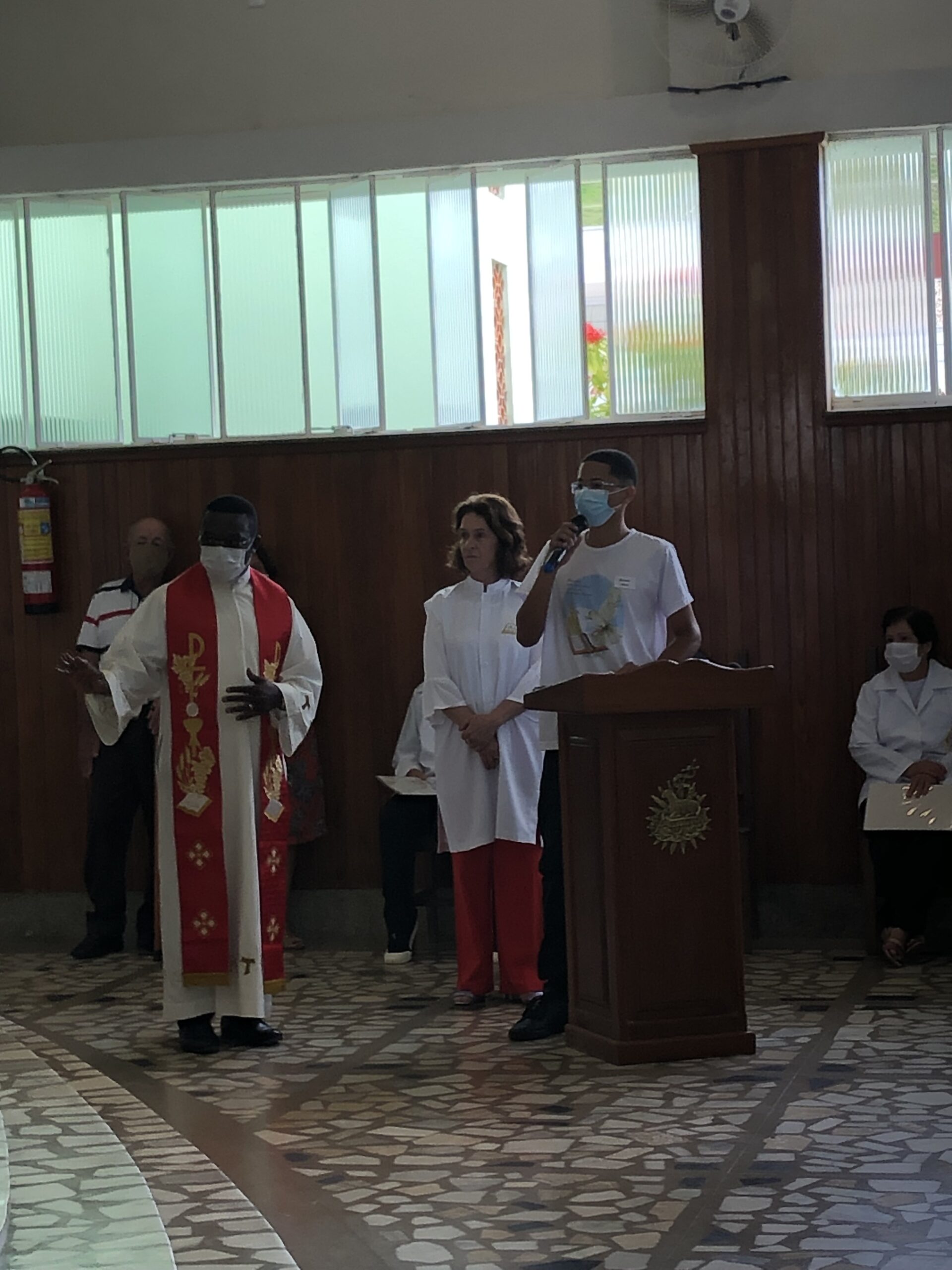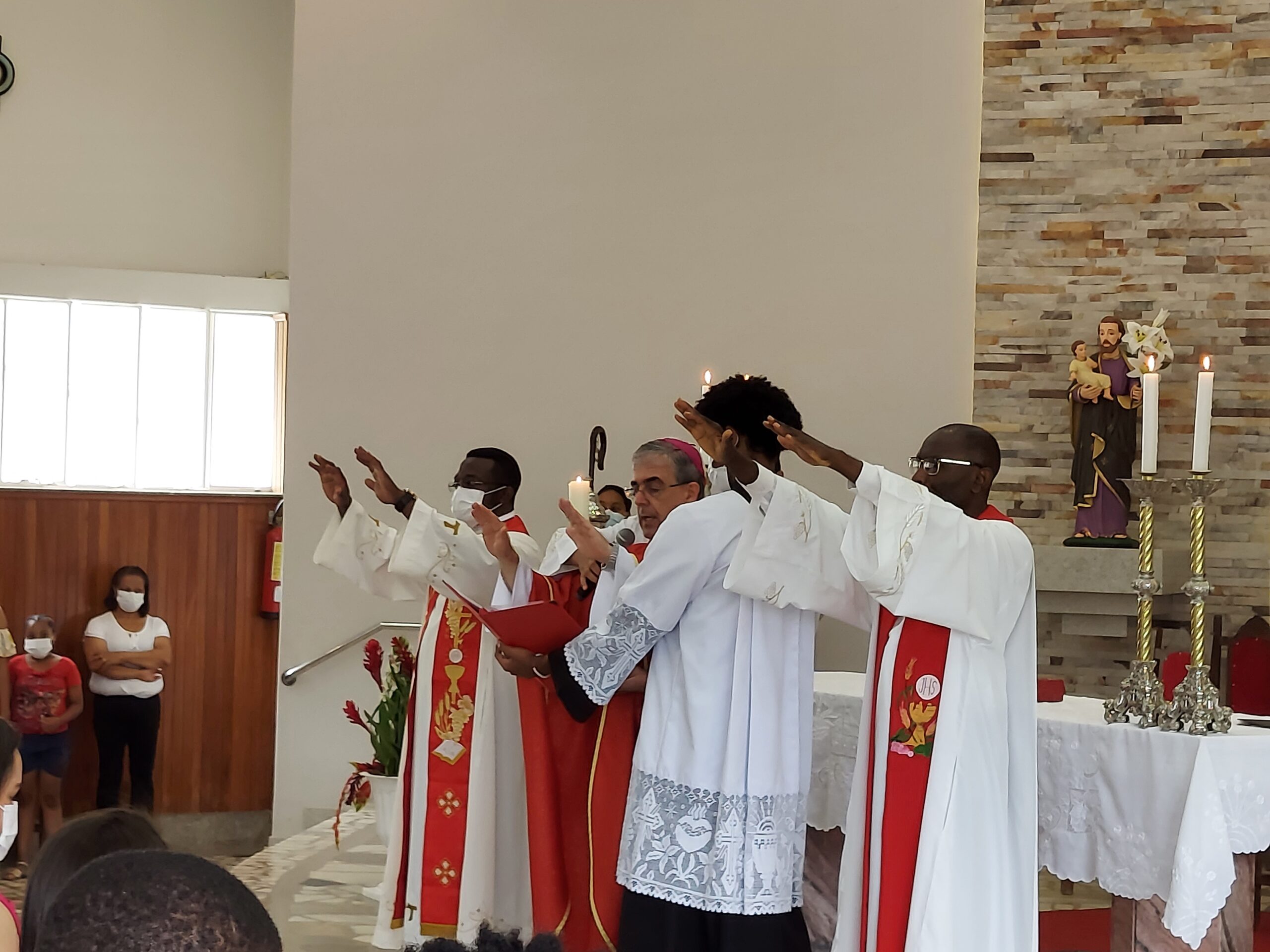 Mabiala, CICM, padre Yaga III Onana Firmin, CICM e diácono Luciano dos Santos Rodrigues.