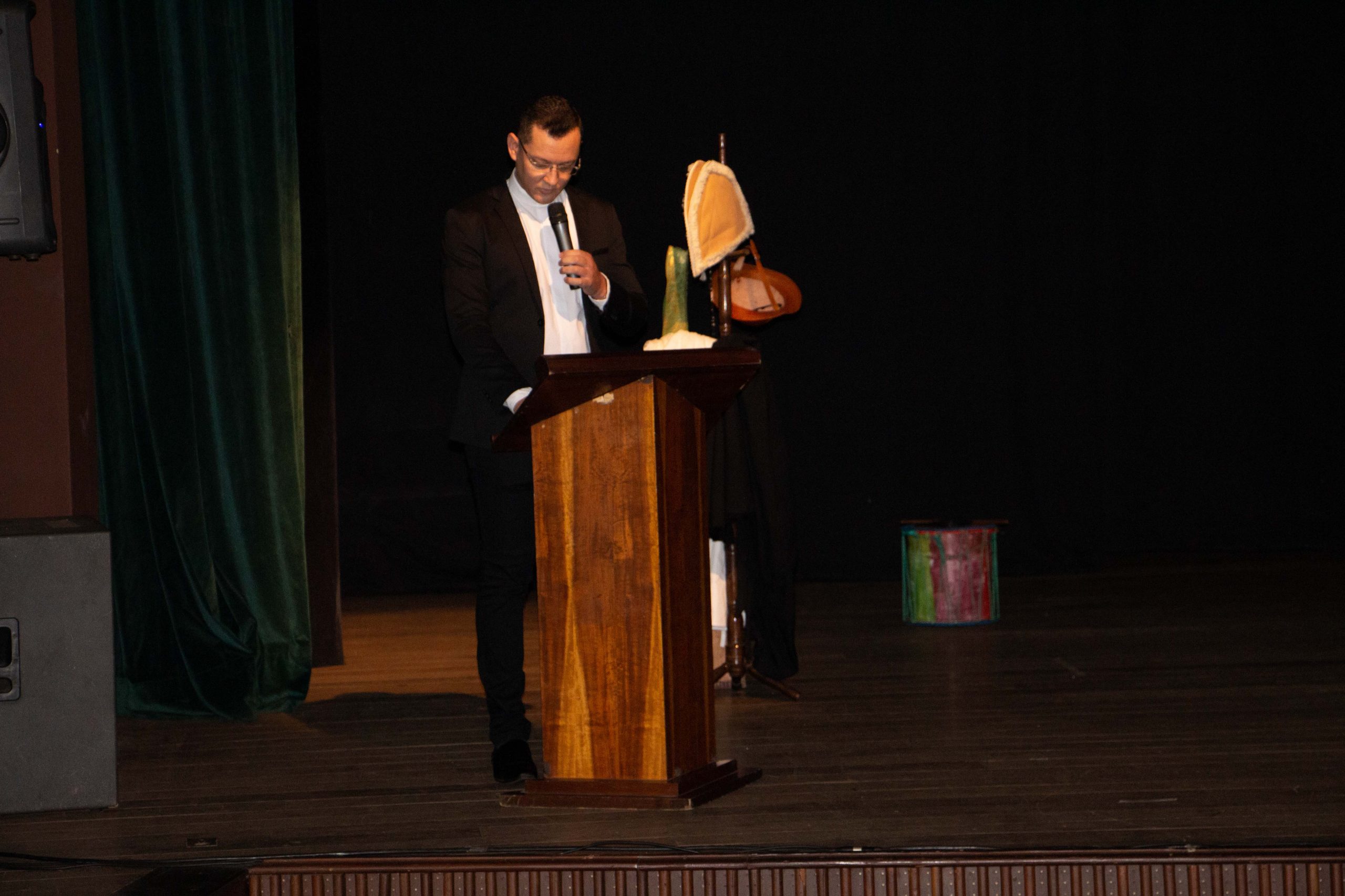 Contemplando as comemorações do centenário de nascimento de Dom Mário Teixeira Gurgel, SDS, a Companhia Itabirana de Teatro apresentou na última quarta-feira, 20 de outubro, às 19h, no Centro Cultural da Fundação Carlos Drumond de Andrade, em Itabira, a peça teatral intitulada “A história de um bispo piadoso”. Baseada em sua última obra “Só Rindo”, cuja verba foi revertida para o Hospital Nossa Senhora das Dores e construção da Igreja Nossa Senhora das Graças, no bairro Pedreira, município de Itabira, a obra reúne uma coleção de anedotas, não sendo de sua autoria, contadas por Dom Mário em suas palestras, pregações e etc. o Mesmo dizia, na apresentação da obra que, como bom cearense, sempre gostou de chistes e historietas humorísticas e que o nosso Deus é o Deus da alegria.