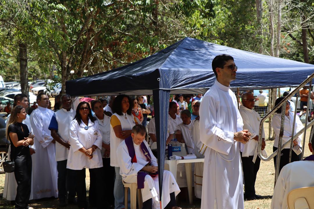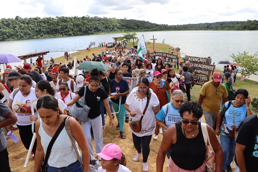 A Diocese de Itabira-Coronel Fabriciano deu início à Campanha da Fraternidade 2025 na manhã deste domingo (9), reunindo cerca de 3.000 fiéis no Parque Estadual do Rio Doce (PERD). O evento contou com a participação de padres, diáconos, seminaristas, religiosos e religiosas das paróquias da diocese, além do Bispo Diocesano, Dom Marco Aurélio Gubiotti. A programação começou com um momento de oração e animação conduzido pelo Padre Hideraldo Veríssimo Vieira às margens do lago, destacando a beleza do local como um convite à reflexão sobre a Ecologia Integral, tema central da campanha deste ano. Em seguida, na área de eventos do parque, houve a apresentação das paróquias e uma encenação teatral sobre a história do PERD, reforçando a importância da preservação ambiental.