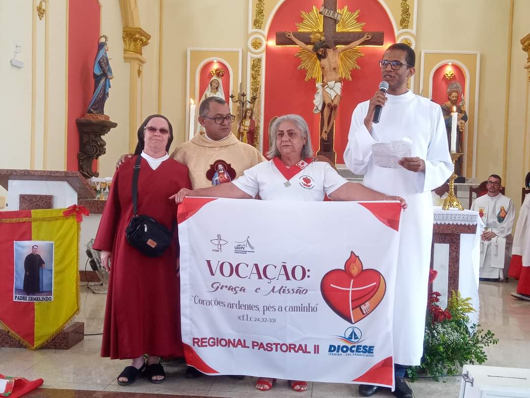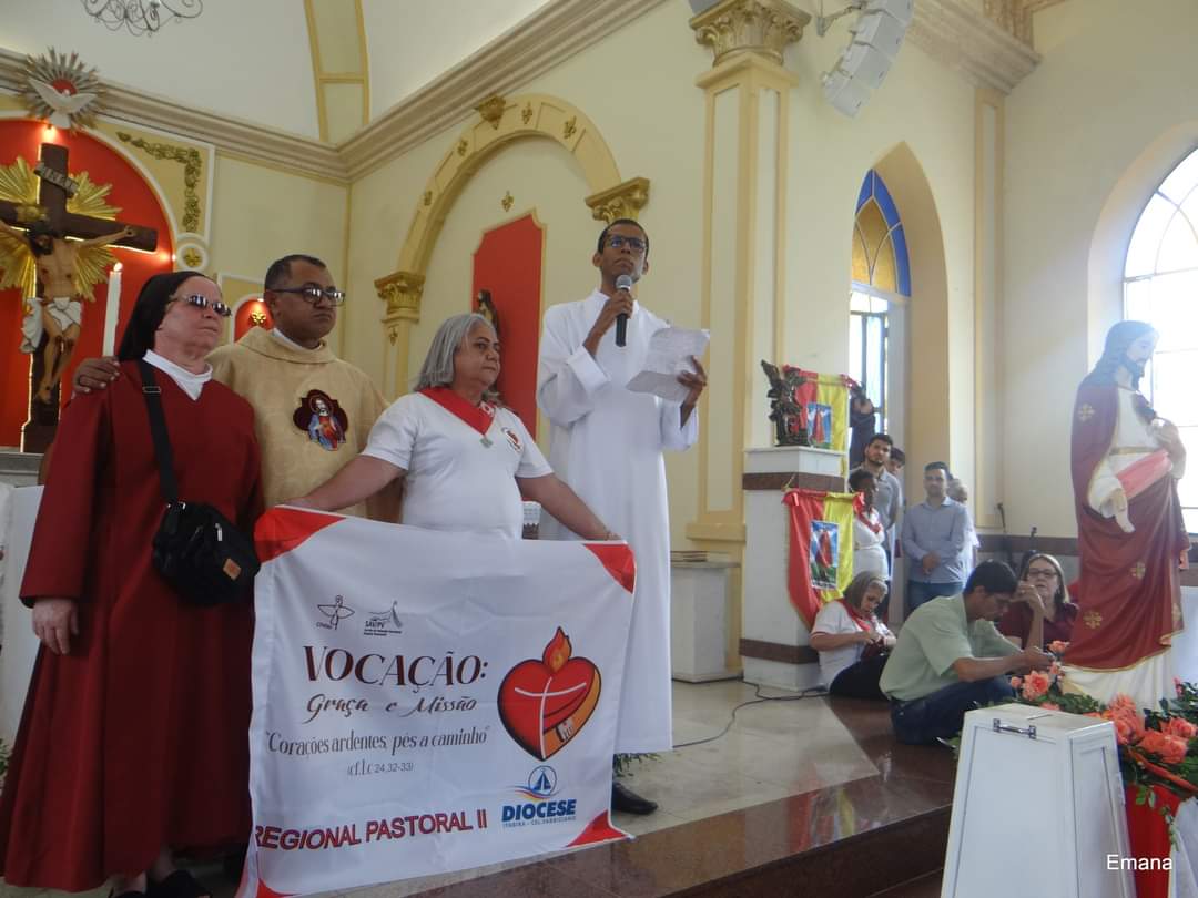 O Ano Vocacional que se inicia tem como tema: “Vocação: graça e missão” e como lema: “Corações ardentes, pés a caminho”. Em nossa Diocese a abertura do Ano Vocacional se deu em nível diocesano nos três regionais sendo que, em nosso regional, acontece aqui em São José do Goiabal.
