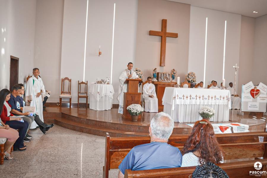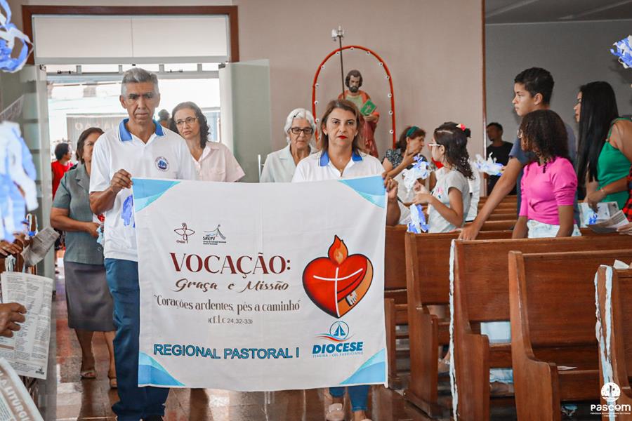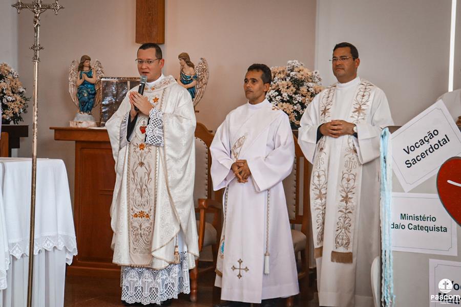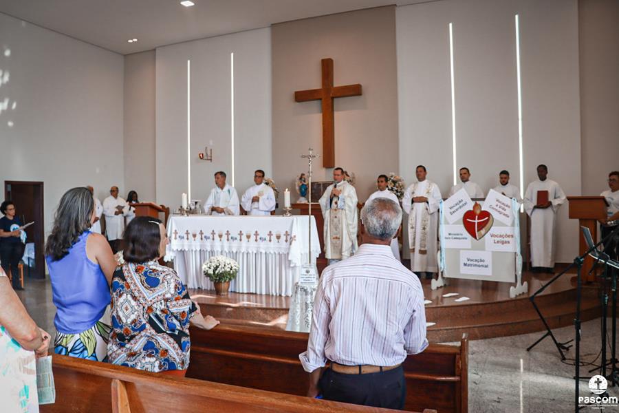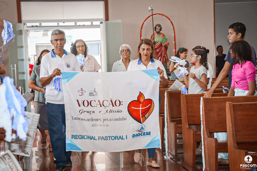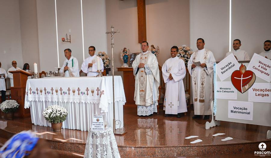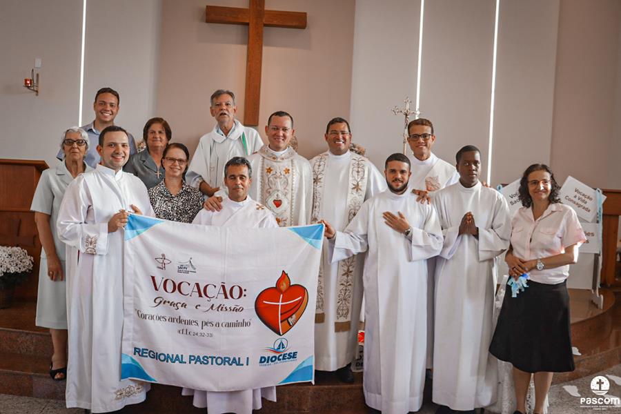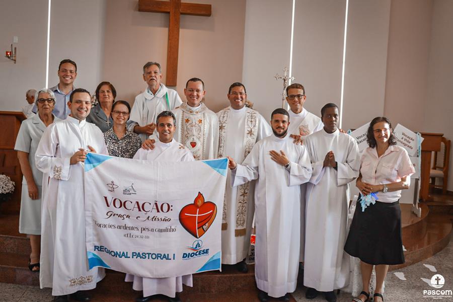 Celebrando o terceiro Ano Vocacional da Igreja no Brasil neste ano de 2023 com o tema “Vocação: Graça e Missão” e lema “Corações ardentes, pés a caminho” (cf. Lc 24, 32-33), com a liturgia da festa da Transfiguração do Senhor e rezando pelos presbíteros no domingo dia 06 de agosto, a Região Pastoral 1 da nossa Diocese de Itabira-Coronel Fabriciano celebrou, na Igreja São José, Paróquia Nossa Senhora da Piedade, em Itabira, a abertura do mês vocacional. Muitos fieis leigos e leigas, lideranças pastorais e comunitárias, participaram da celebração eucarística que foi presidida pelo Pe. Ueliton Neves da Silva, coordenador regional de pastoral. Participaram ainda da missa os padres José Marcelino de Magalhães Filho (pároco da paróquia acolhedora) e Márcio Soares (reitor do Seminário Diocesano), os diáconos permanentes Márcio Rogério Vieira Honorato e Bruno Luiz de Souza, alguns seminaristas da nossa diocese e as religiosas Missionárias de Nossa Senhora das Dores e Filhas do Sagrado Coração de Jesus.
