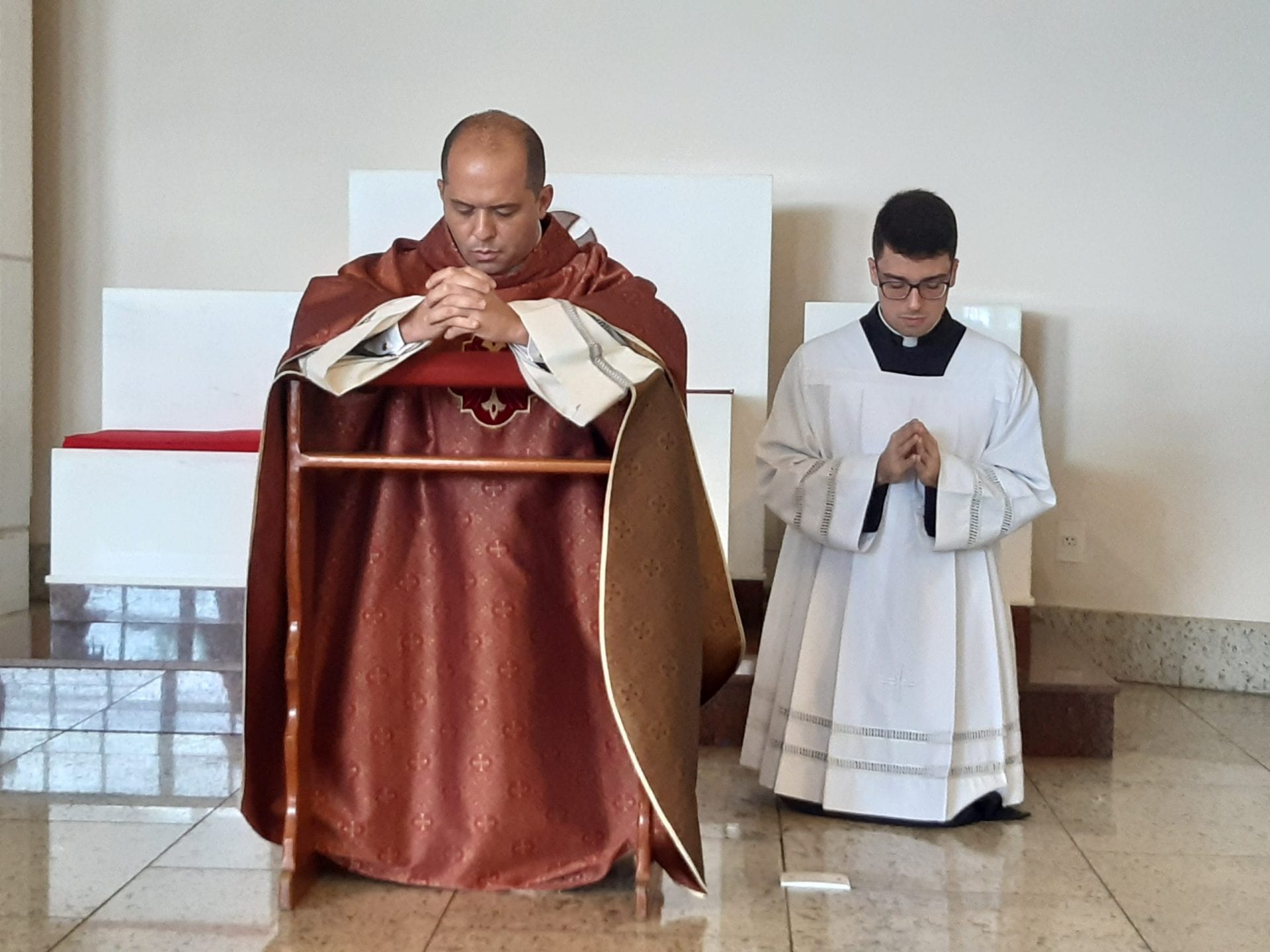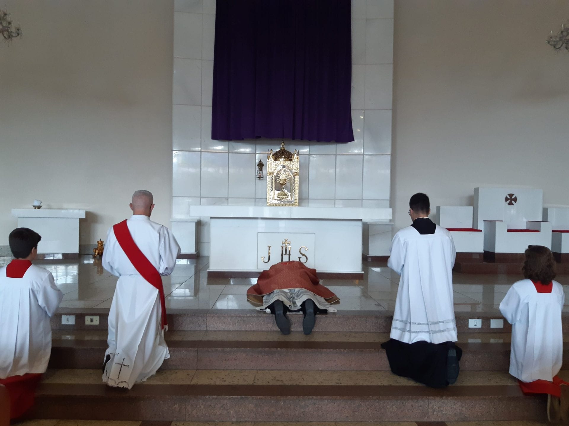 Com um rito profundo e muito sugestivo, a celebração começou com o belo gesto do prostrar-se diante do altar do sacerdote. Na pessoa do Pe. Fernando dos Santos, fomos recordados que o próprio Jesus despojou-se de si mesmo e fez-se obediente até a morte.