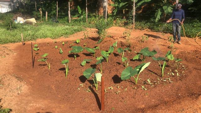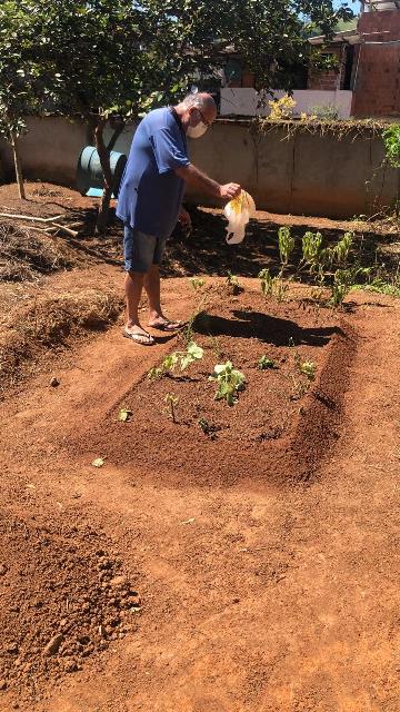 A água utilizada na irrigação é de uma nascente que esta sendo revitalizada pelos voluntários da ASAS numa mata anexo a horta.