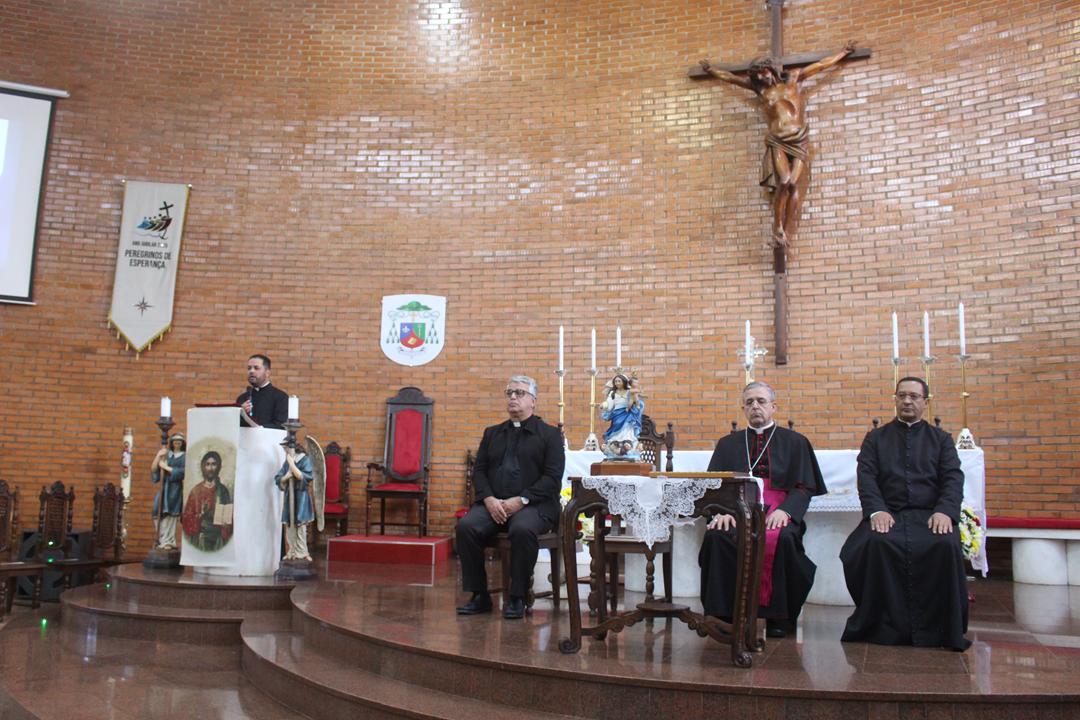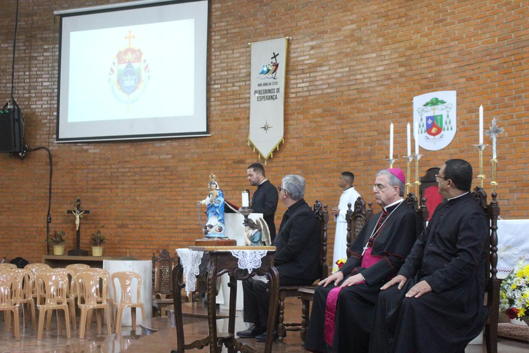O brasão também conta com a mitra e o báculo, símbolos do ministério episcopal, destacando a essência da Paróquia, Sé Catedral, como sede da Diocese e referência espiritual para toda a região. “O brasão representa quem somos: um povo que carrega o terço nas mãos, que tem fé e raízes profundas nesta terra”, destacou o padre Adriano Mendes de Pinho, pároco da Catedral.