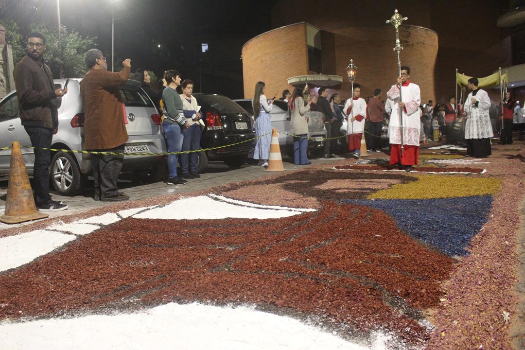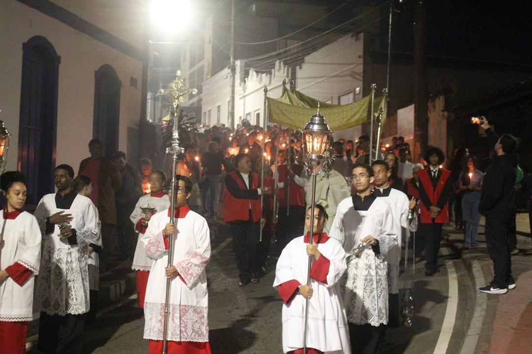 Em sequência a solene procissão do Santíssimo Sacramento, com a presença dos Ministros Extraordinários da Sagrada Eucaristia e acompanhados da banda Euterpe Itabirana.