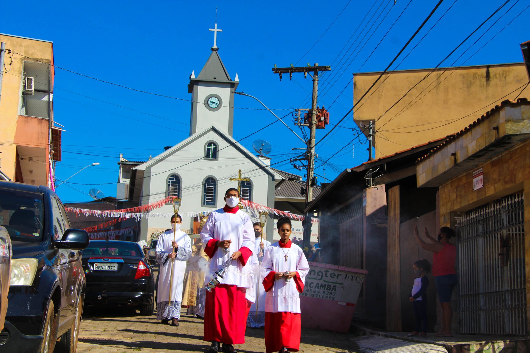 A missa teve transmissão pelo auto falante da Matriz e redes sociais e a procissão motorizada pelas redes sociais.