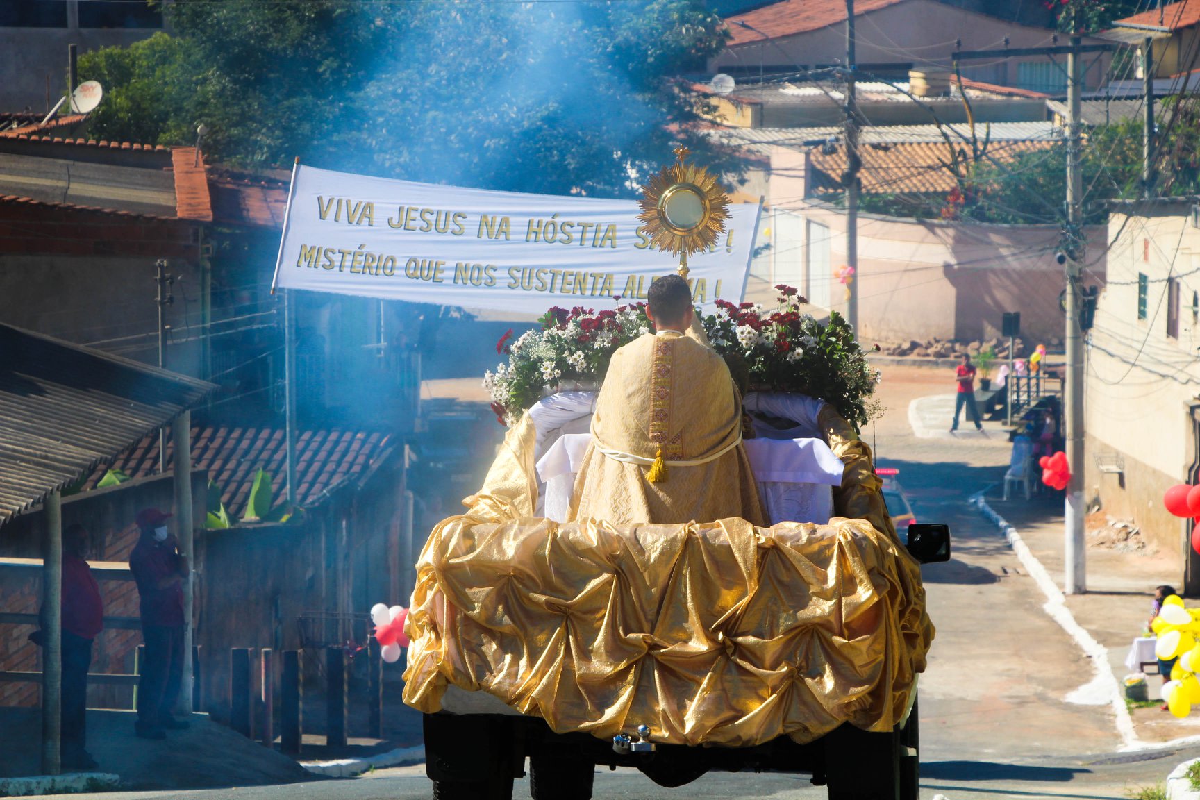 Após a santa missa, foi dada a primeira bênção do Santíssimo Sacramento em frente a Igreja Matriz, onde os moradores, nas calçadas e janelas de suas casas, receberam a receberam. Seguindo em procissão motorizada, foi percorrido um trajeto contemplando as comunidades urbanas da paróquia. A segunda bênção foi dada em frente a Igreja do Sagrado Coração de Jesus, no Bairro Praia e a terceira e última no Santuário São Geraldo.