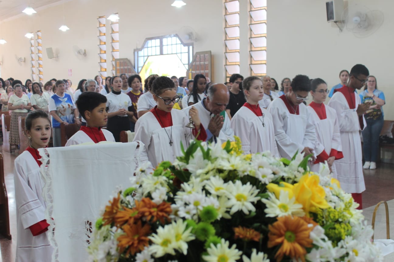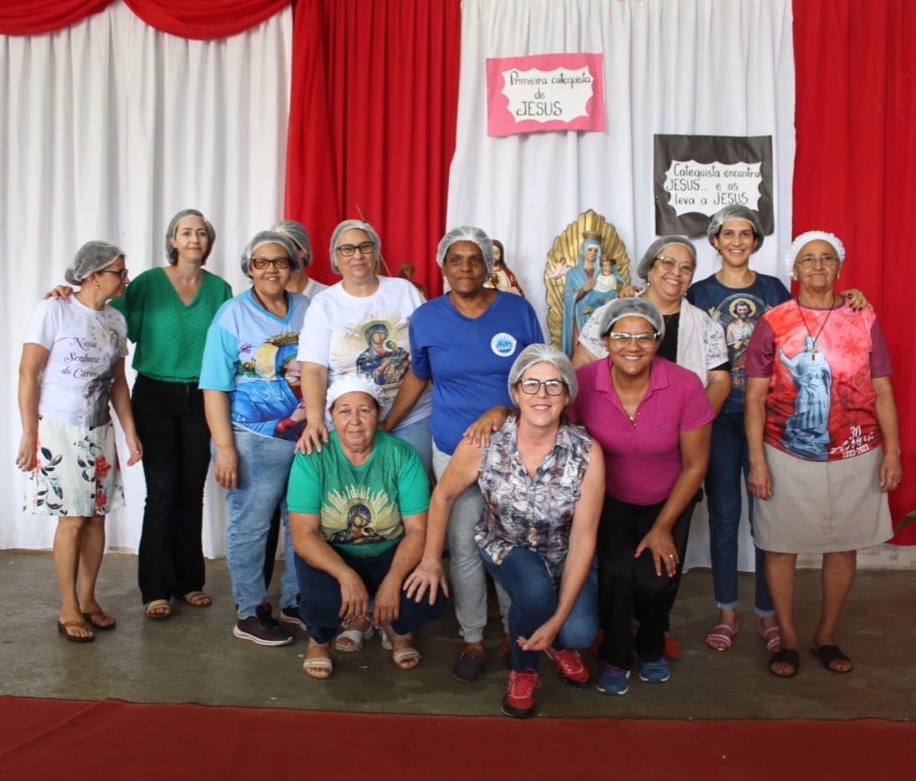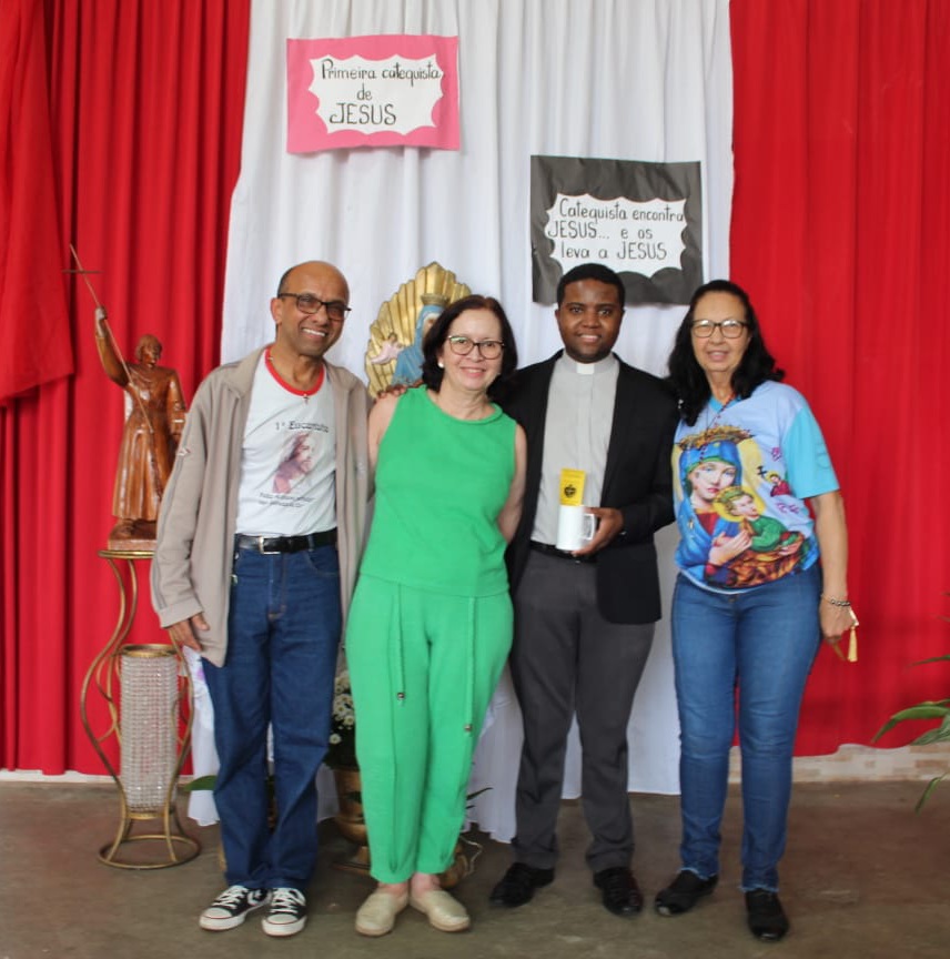 O momento de ação de graças ocorreu na Comunidade Nossa Senhora do Perpétuo Socorro, no bairro Loanda, onde os catequistas foram acolhidos com brindes, café, cantos e brincadeiras. Em seguida, o Padre Jesu Doss fez uma reflexão sobre a vocação e missão do catequista, tendo como base o tema do ano vocacional “Vocação: Graça e Missão” e o lema “Corações ardentes, pés a caminho” (Lc 24, 32-33). Foi uma oportunidade de renovar o compromisso com a evangelização e a formação da fé das crianças, adolescentes, jovens, adultos e idosos que participam da catequese.