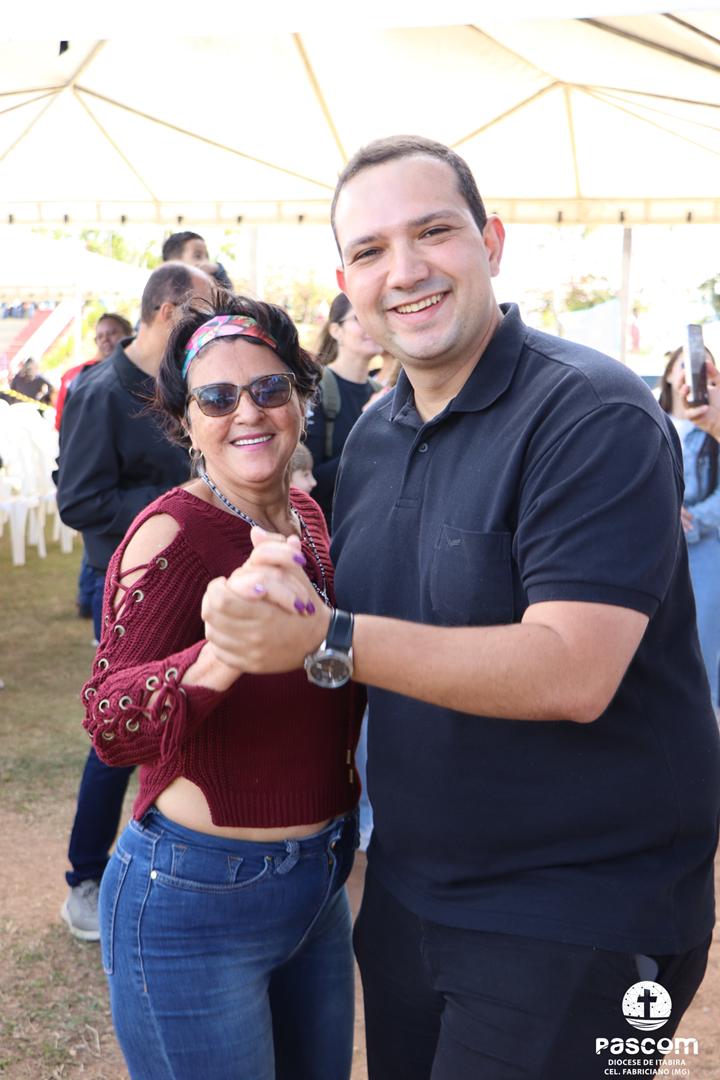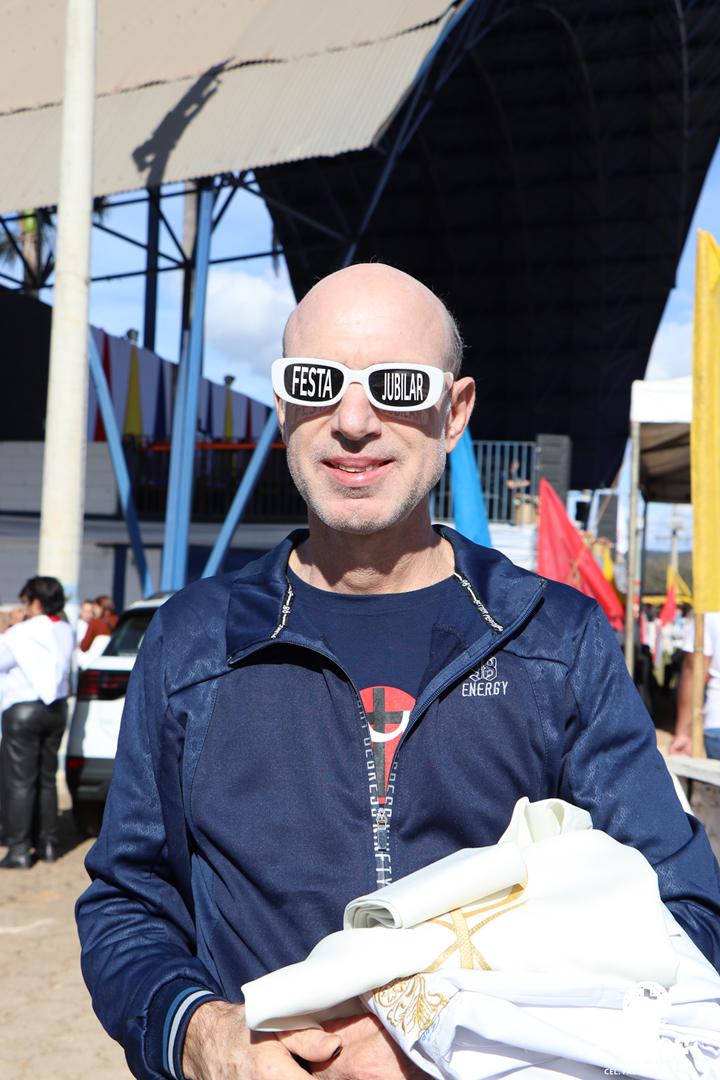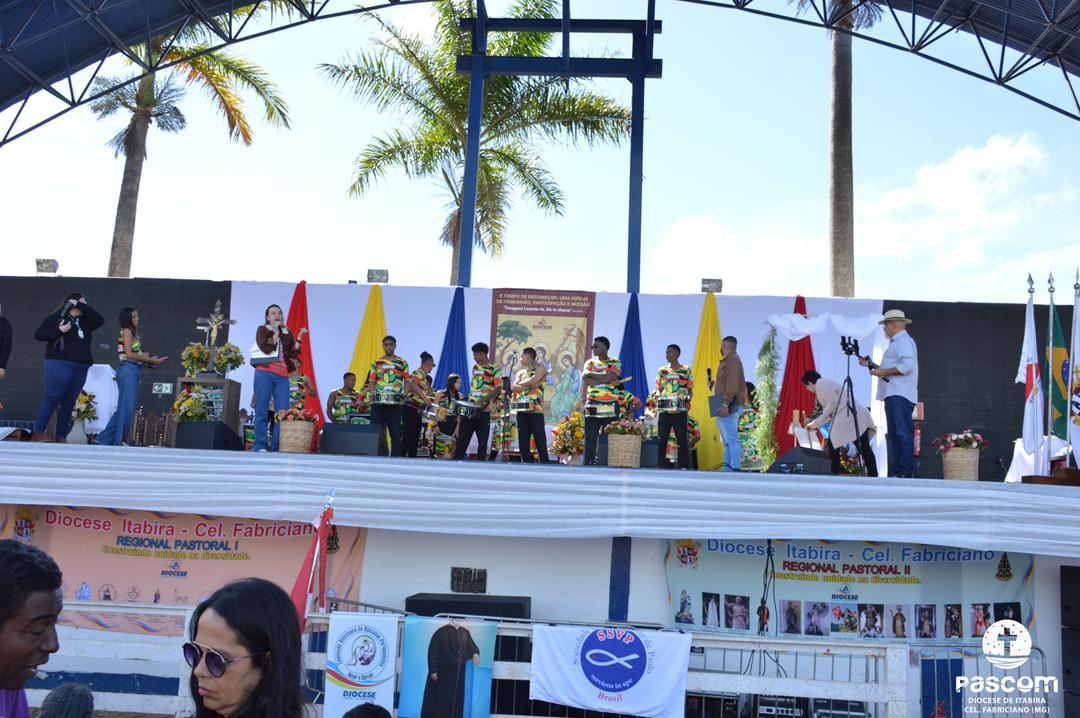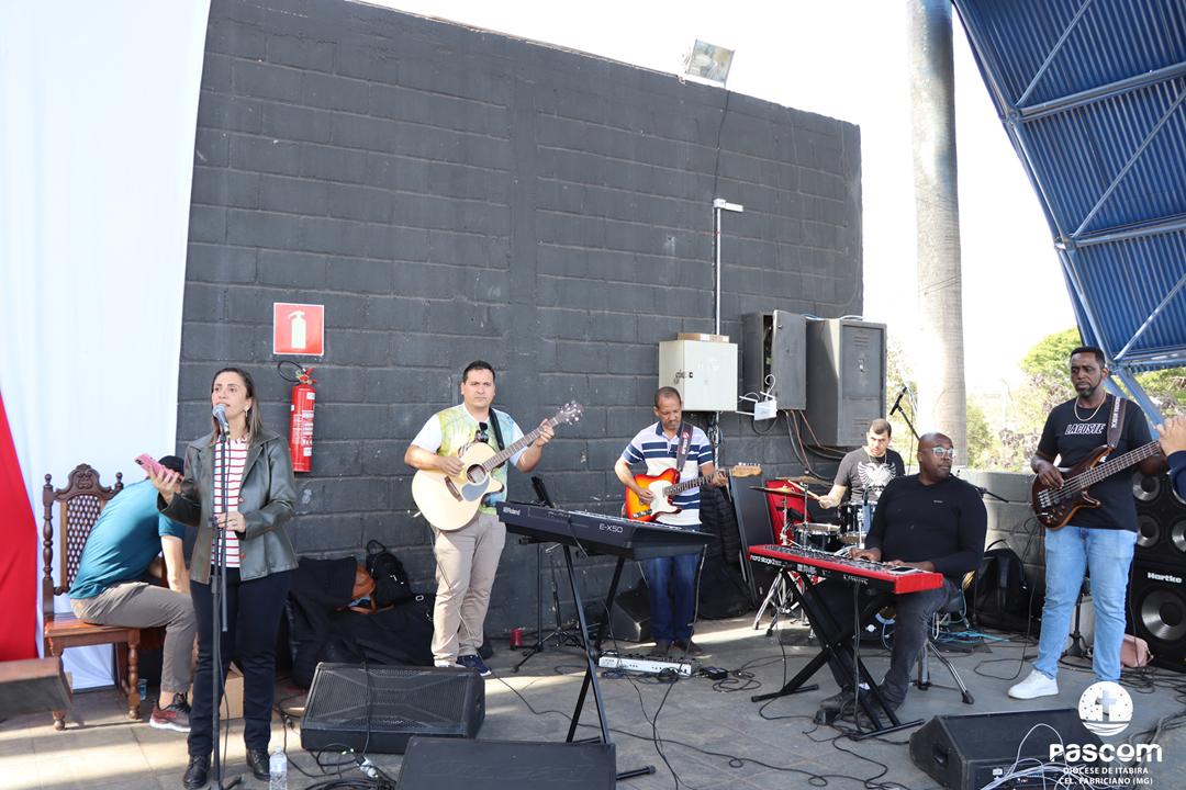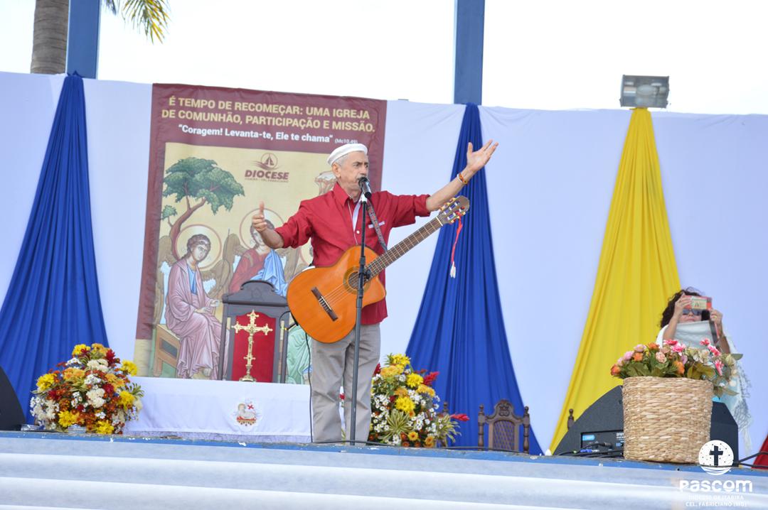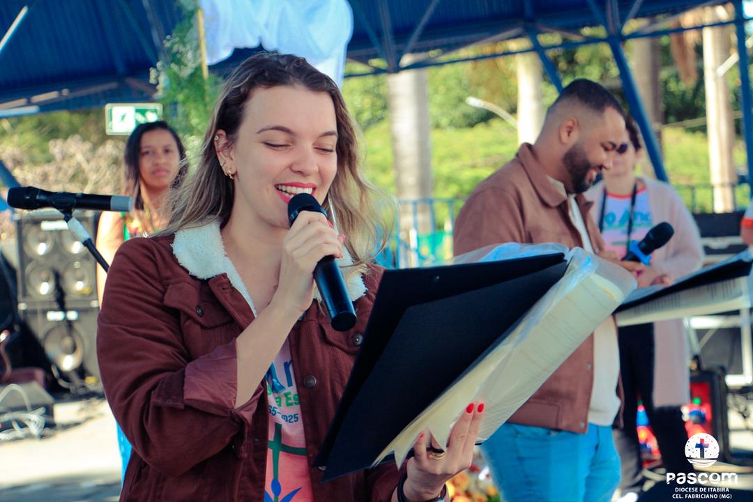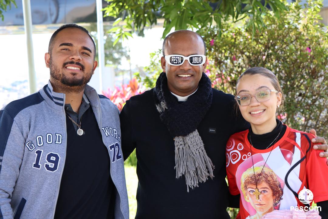 Ao longo da manhã, a festa seguiu com apresentações culturais incluindo os grupos Tambores do Morro, Batuque de Roda, Neste Chão. Na alegria deste Jubileu, tivemos a honra de contar com a presença do Padre Paulo Leal, filho de nossa Diocese, que com sua voz, sensibilidade e espiritualidade, abrilhantou nossa festa com belos momentos de louvor e oração. Sua participação tornou nossa celebração ainda mais especial. Após o almoço comunitário, às 13h15, o cantor Zé Vicente animou os fiéis com canções que expressam a espiritualidade e o compromisso com a justiça e a paz. Com sua voz profética, suas canções cheias de esperança e compromisso com os pequenos, Zé Vicente envolveu a todos em uma verdadeira experiência de espiritualidade encarnada e transformadora. Em seguida, foram partilhados testemunhos de fé e vida missionária por diversos leigos e lideranças da diocese.