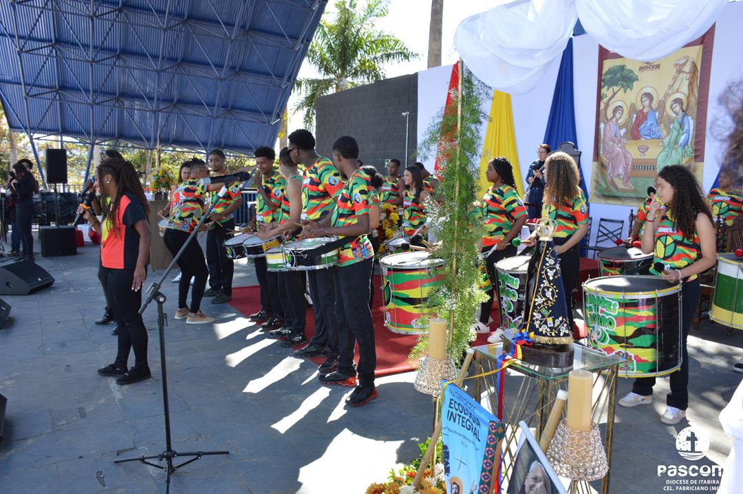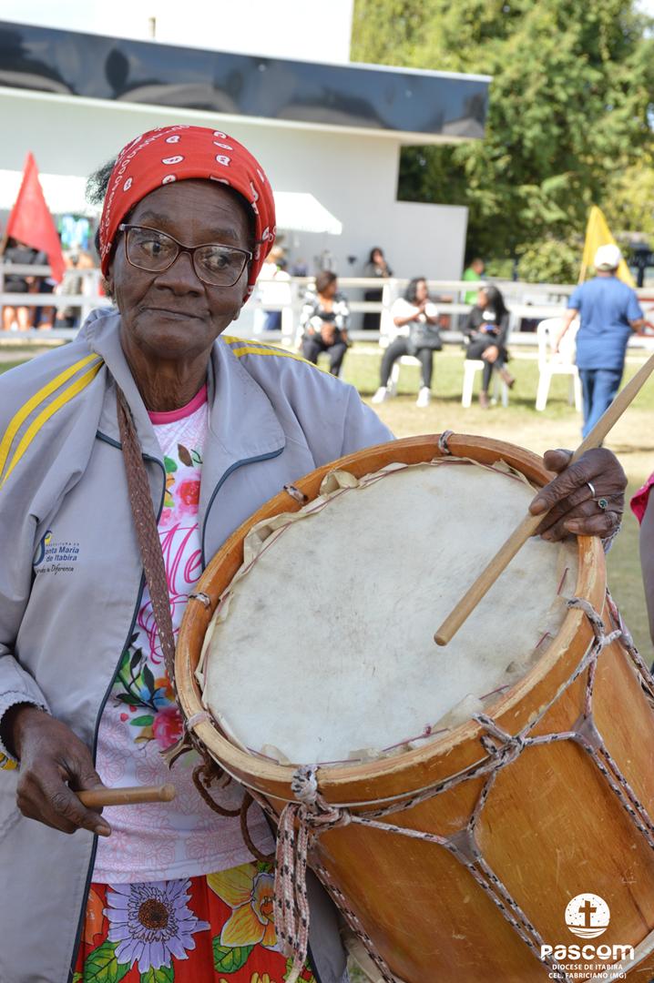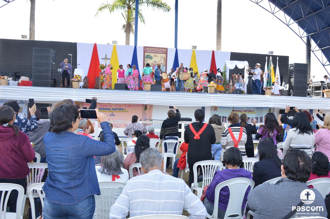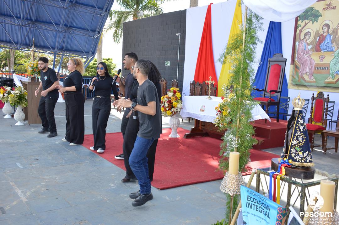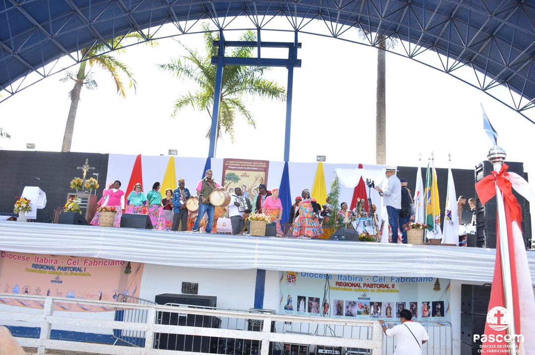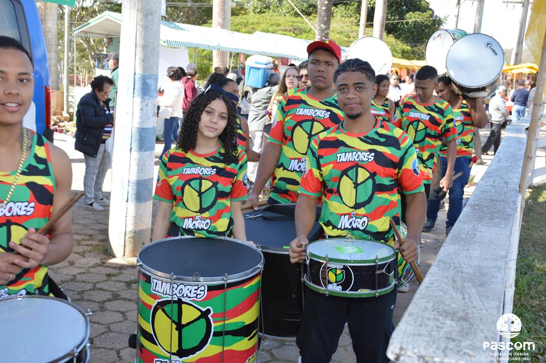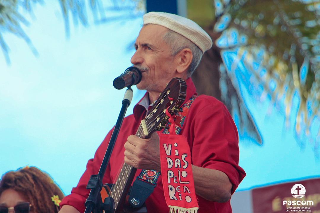 Ao longo da manhã, a festa seguiu com apresentações culturais incluindo os grupos Tambores do Morro, Batuque de Roda, Neste Chão. Na alegria deste Jubileu, tivemos a honra de contar com a presença do Padre Paulo Leal, filho de nossa Diocese, que com sua voz, sensibilidade e espiritualidade, abrilhantou nossa festa com belos momentos de louvor e oração. Sua participação tornou nossa celebração ainda mais especial. Após o almoço comunitário, às 13h15, o cantor Zé Vicente animou os fiéis com canções que expressam a espiritualidade e o compromisso com a justiça e a paz. Com sua voz profética, suas canções cheias de esperança e compromisso com os pequenos, Zé Vicente envolveu a todos em uma verdadeira experiência de espiritualidade encarnada e transformadora. Em seguida, foram partilhados testemunhos de fé e vida missionária por diversos leigos e lideranças da diocese.