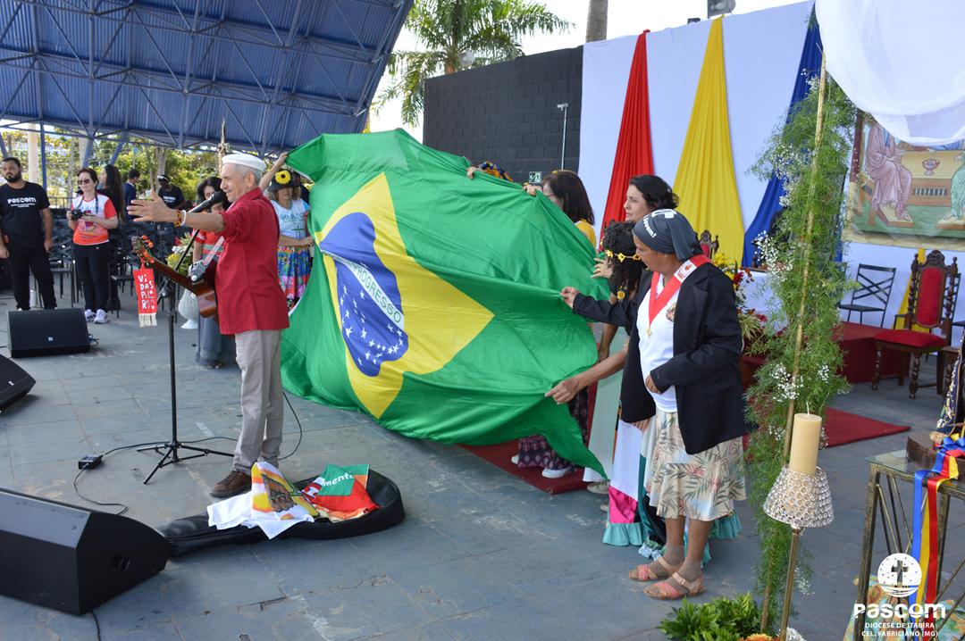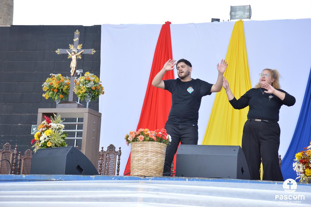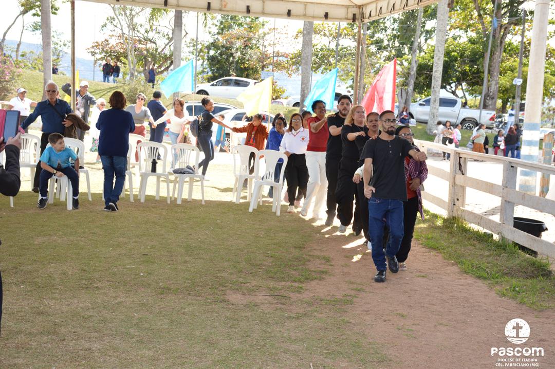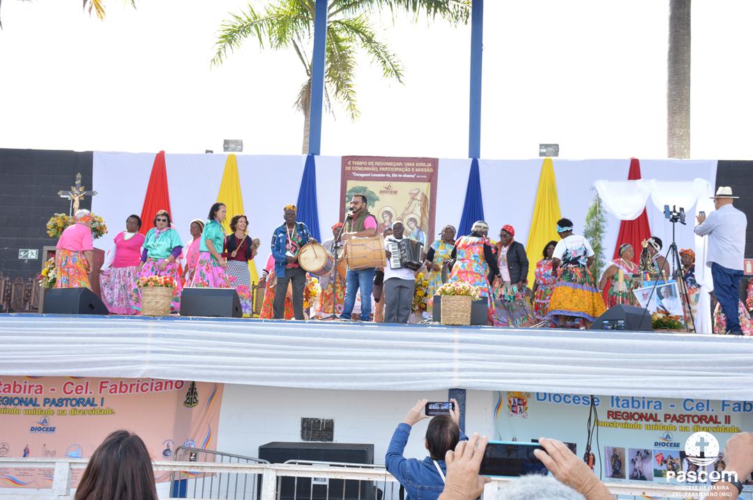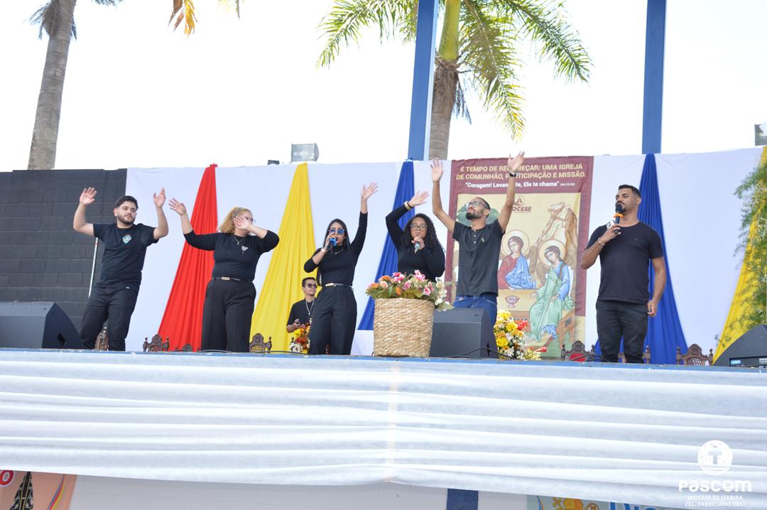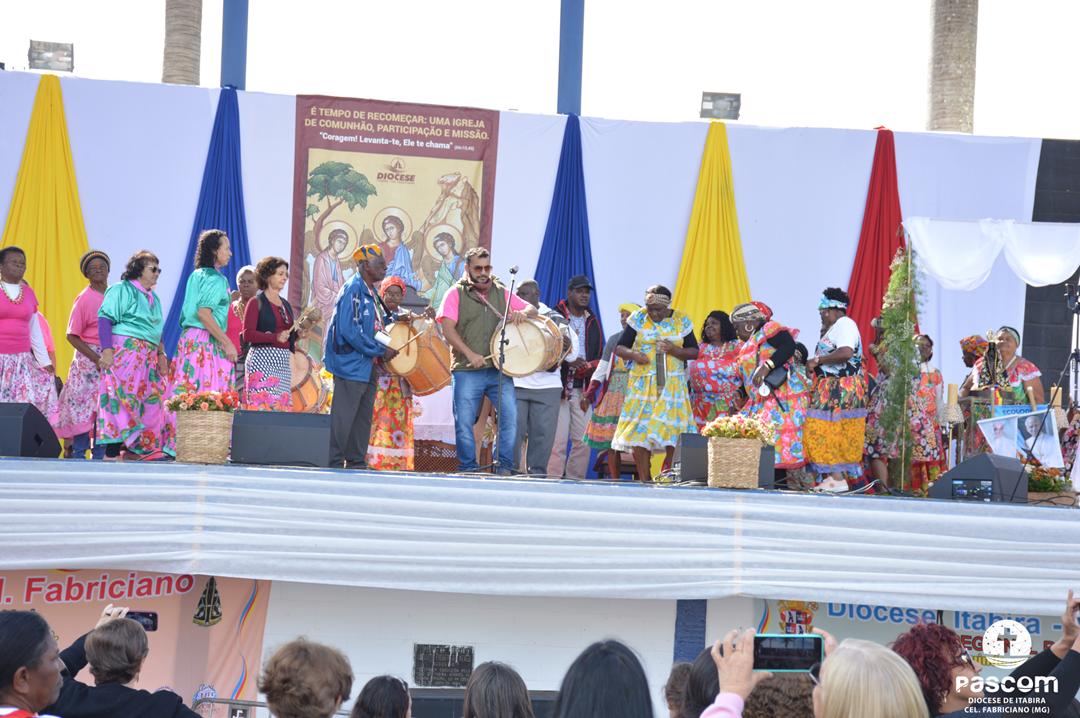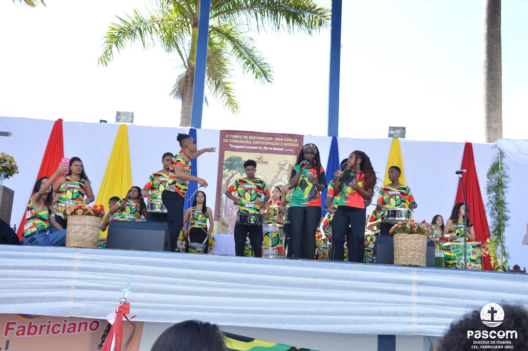 Ao longo da manhã, a festa seguiu com apresentações culturais incluindo os grupos Tambores do Morro, Batuque de Roda, Neste Chão. Na alegria deste Jubileu, tivemos a honra de contar com a presença do Padre Paulo Leal, filho de nossa Diocese, que com sua voz, sensibilidade e espiritualidade, abrilhantou nossa festa com belos momentos de louvor e oração. Sua participação tornou nossa celebração ainda mais especial. Após o almoço comunitário, às 13h15, o cantor Zé Vicente animou os fiéis com canções que expressam a espiritualidade e o compromisso com a justiça e a paz. Com sua voz profética, suas canções cheias de esperança e compromisso com os pequenos, Zé Vicente envolveu a todos em uma verdadeira experiência de espiritualidade encarnada e transformadora. Em seguida, foram partilhados testemunhos de fé e vida missionária por diversos leigos e lideranças da diocese.