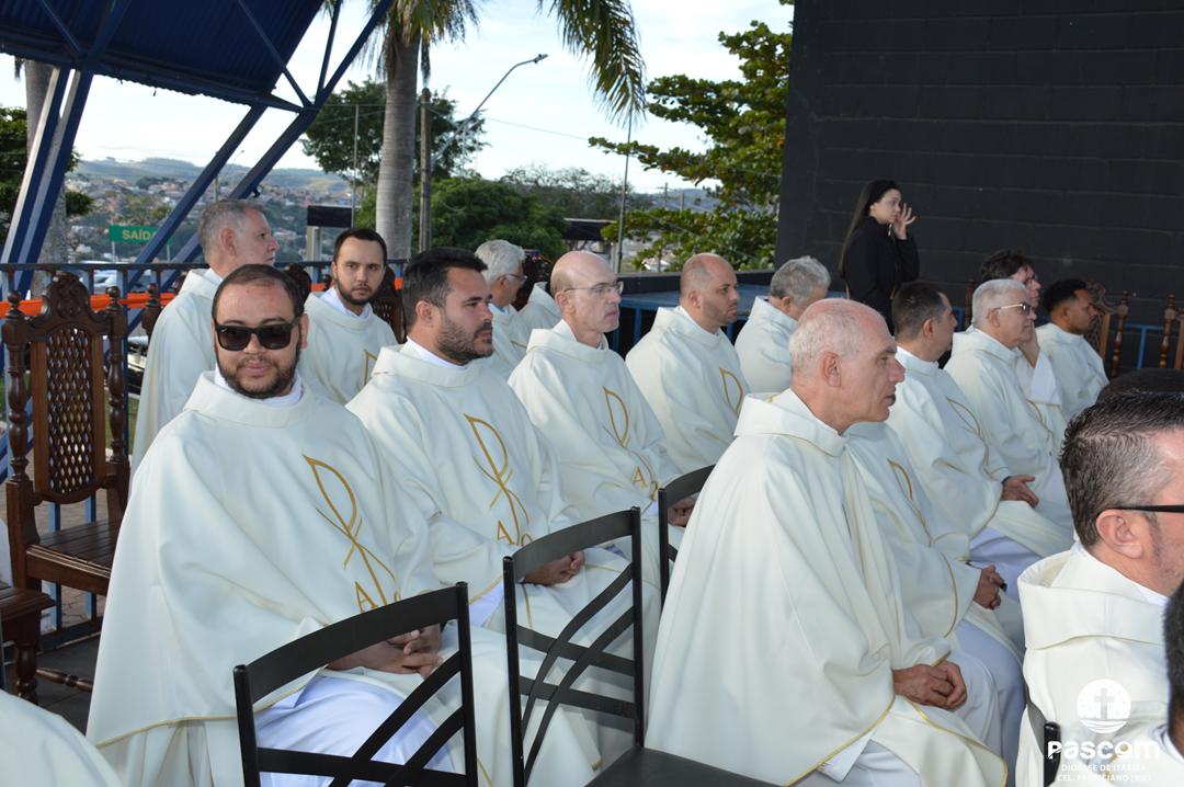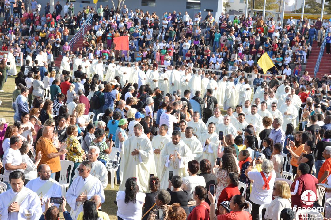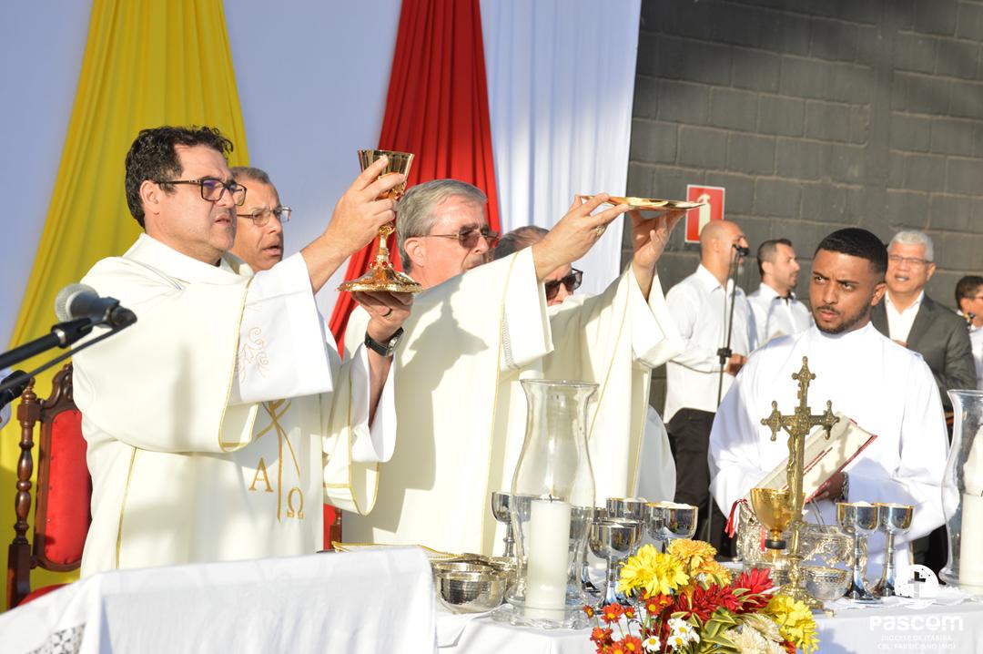 O ponto alto desta grande Festa Jubilar foi a Celebração Eucarística, realizada às 15h e presidida por Dom Marco Aurélio Gubiotti. Afinal, como nos recorda São João Paulo II na encíclica Ecclesia de Eucharistia, “a Igreja vive da Eucaristia” (n. 1). É dela que a Igreja se nutre e dela parte toda a sua ação evangelizadora. A Eucaristia é o coração da fé cristã e o fundamento de toda a missão eclesial. A Santa Missa contou com a presença do clero diocesano, seminaristas, representantes das paróquias, movimentos e pastorais, numa expressão visível da comunhão eclesial. Durante a celebração, foi feito o lançamento da 21ª Assembleia Diocesana de Pastoral, convocando toda a Diocese a viver um novo tempo de escuta, discernimento e renovação pastoral em espírito sinodal.