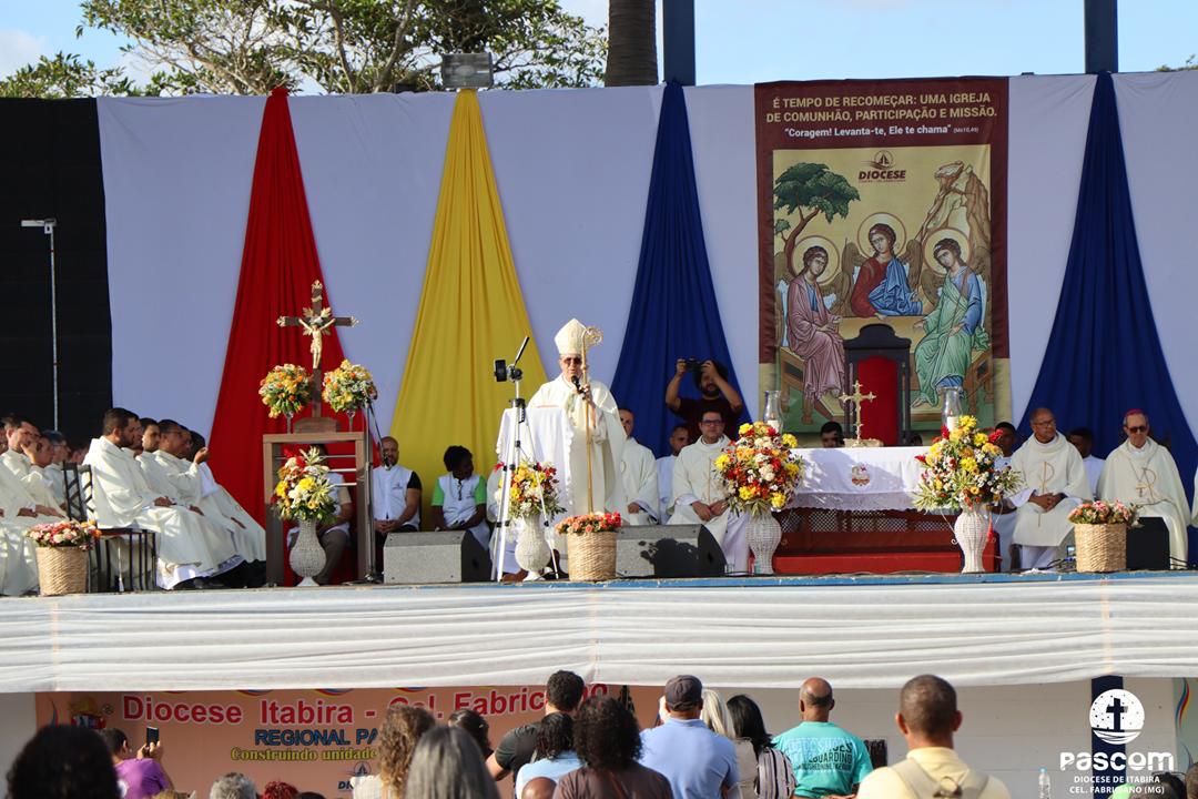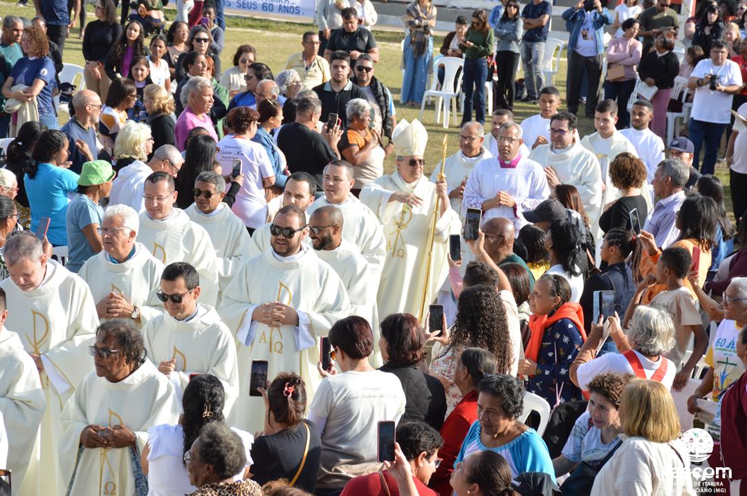 No último domingo, 15 de junho de 2025, a Diocese de Itabira-Cel. Fabriciano celebrou, com profunda alegria e espírito de unidade, o Jubileu de 60 anos de criação e missão evangelizadora. A grande celebração jubilar foi realizada no Parque de Exposições Virgílio José Gazire, em Itabira/MG, reunindo milhares de fiéis vindos de todas as regiões do território diocesano, além do clero, religiosos e religiosas, seminaristas, leigos e leigas comprometidos com a vida da Igreja.