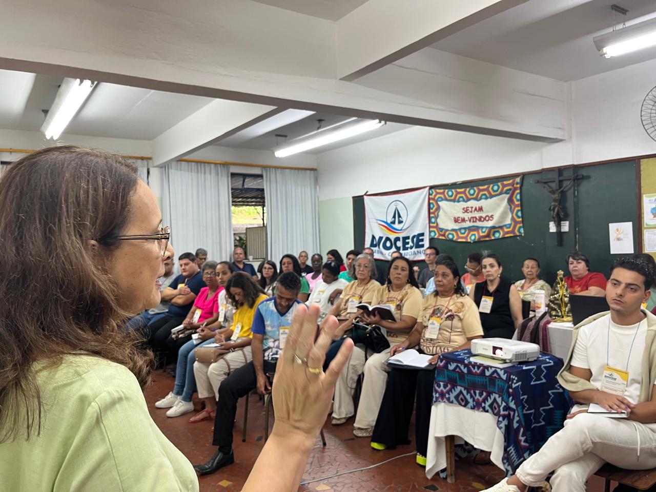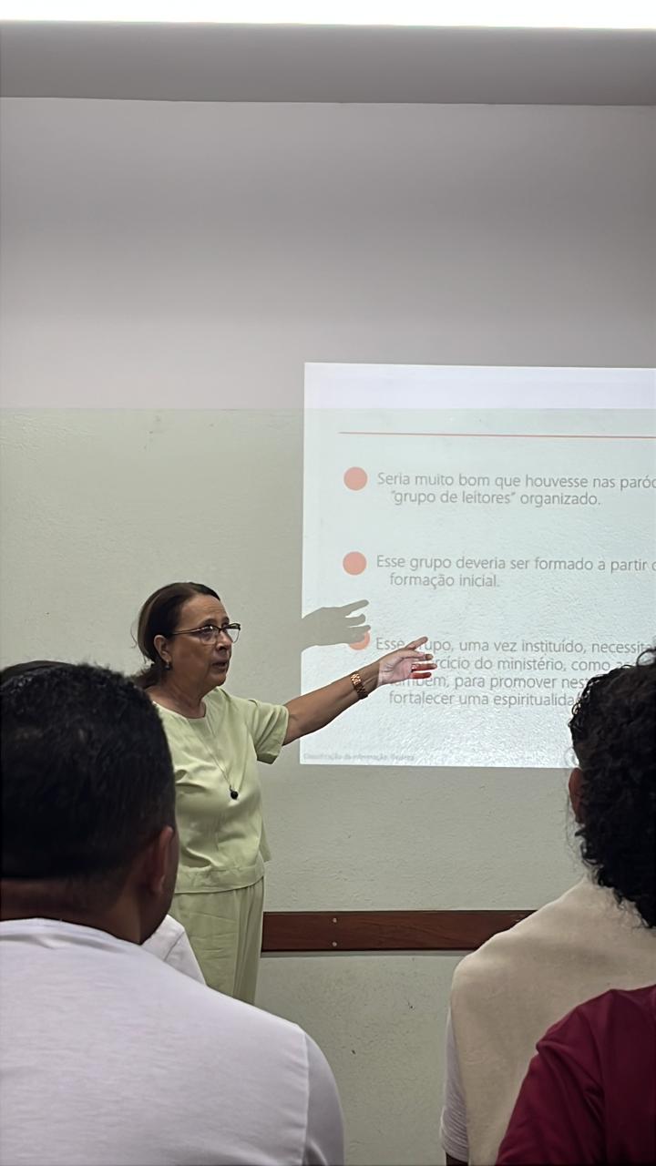 Dando continuidade ao itinerário de formação dos Proclamadores da Palavra, no último sábado, 5 de abril, nas dependências da ARPAS, aproximadamente 51 representantes das paróquias das Regiões Pastorais 1 e 2 participaram de uma manhã de formação e orientações, conduzida pela Coordenadora Diocesana, Gildete.