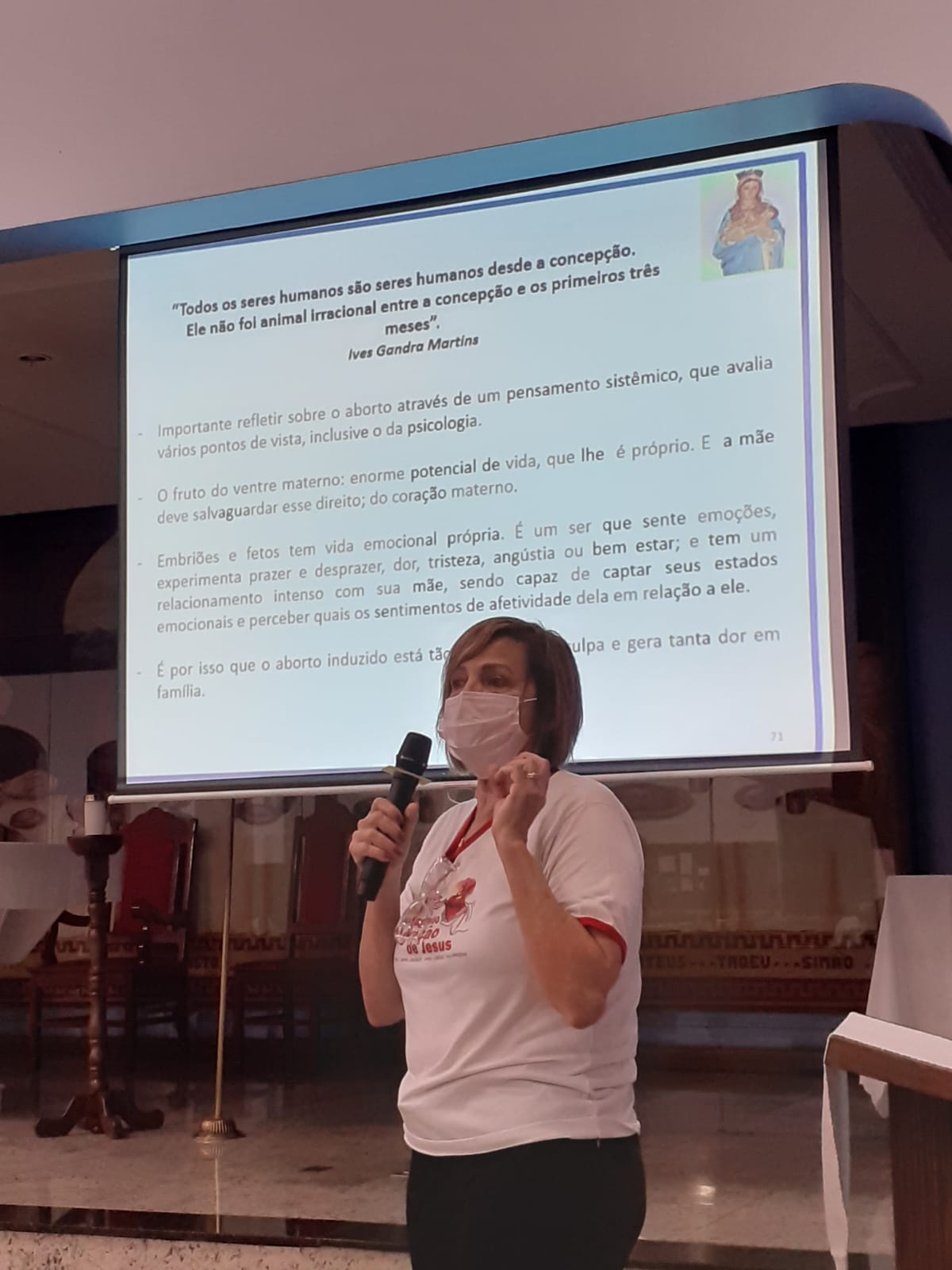 Ademais, abordou-se o aborto sobre o aspecto médico, jurídico e psicológico. Tudo isso, para despertar nos presentes o desejo de abraçar a missão de ajudar a salvar vidas por meio do aconselhamento e encaminhando pessoas que sofrem com a intenção de participar diretamente e ou indiretamente do aborto, atentando contra a VIDA NA GESTAÇÃO ou que já estão marcadas pelo sofrimento do arrependimento, para que possam encontrar a face da Misericórdia e amorosa de Deus e convertam-se a Ele.