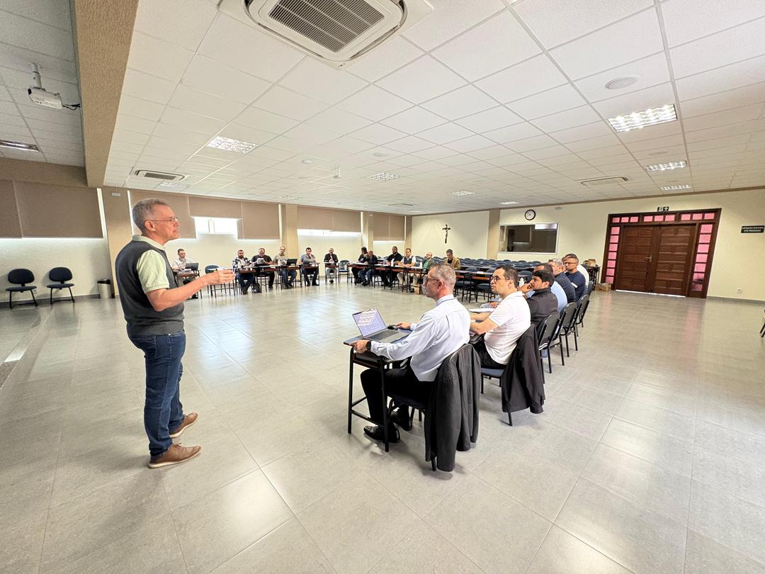 A assessoria do encontro é conduzida pelo Pe. Geraldo Luiz de Mori, professor da Faculdade Jesuíta de Filosofia e Teologia (FAJE), que propõe reflexões sobre o caminho sinodal e sua recepção nas dioceses, incentivando os participantes a identificar caminhos e estratégias para a implementação do Sínodo e das futuras diretrizes. Nos dias seguintes, os temas das pastorais sociais e da catequese também são abordados, com assessoria do Pe. Marcelo Santiago e de Lucimara Trevisan.