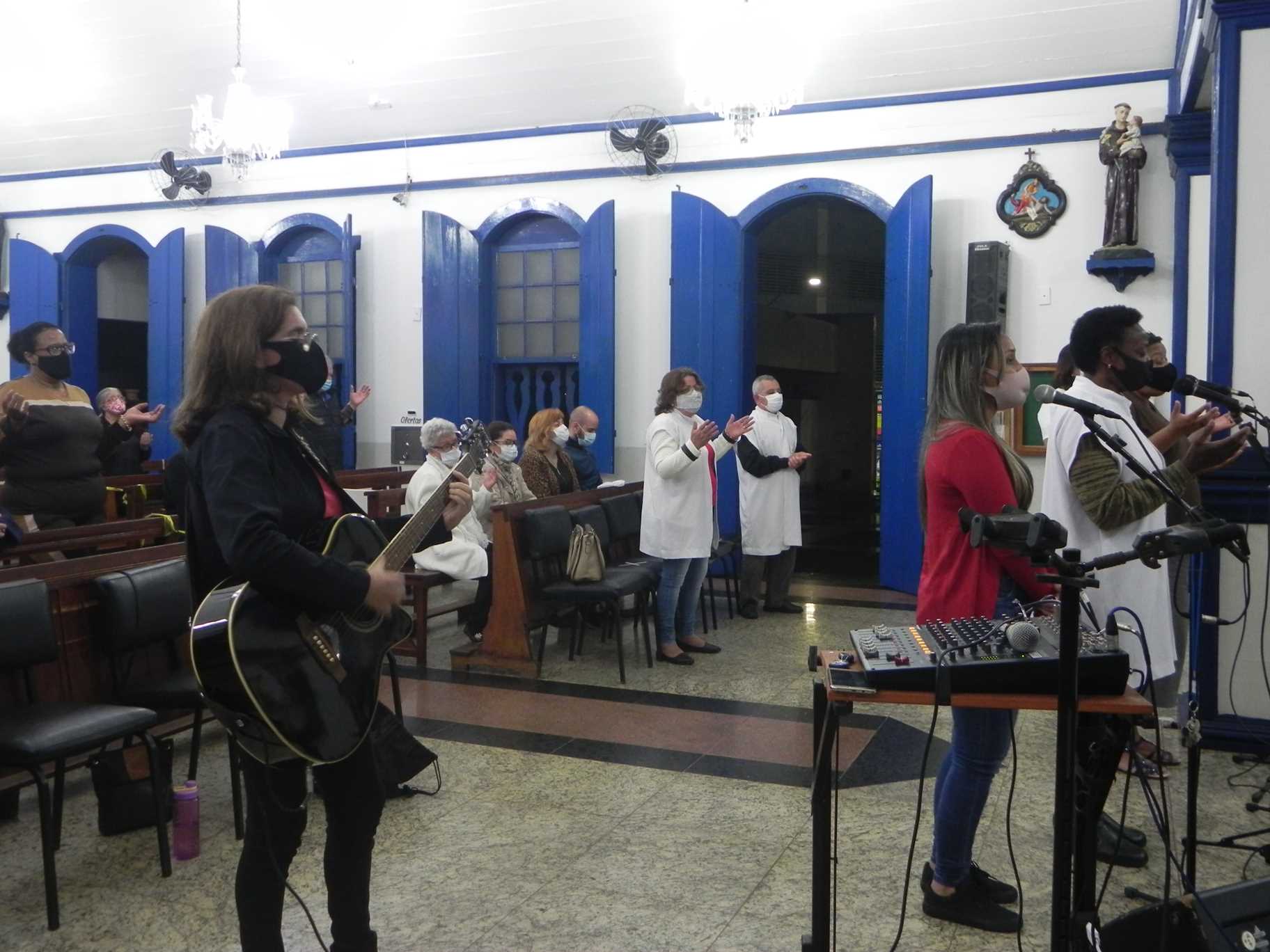 Outros tantos detalhes imprimiram características palpáveis do Evangelho à celebração. A leitura, salmo e prece do dia foram feitos por representantes das três comunidades paroquiais, num gesto claro de comunhão. Ainda que não proposital, o coral também refletiu essa unidade, bem como a assembleia que reuniu pessoas da Conceição, Fátima e Matriz.