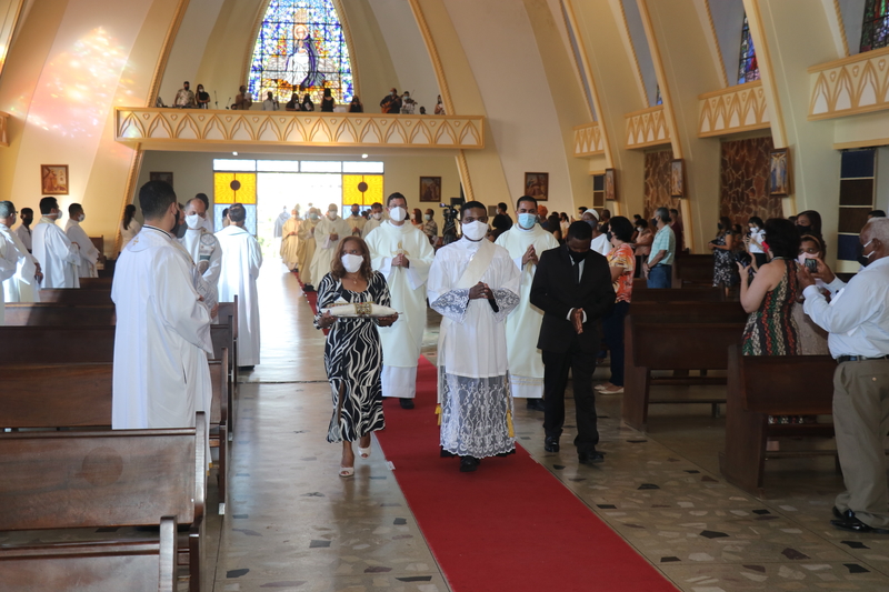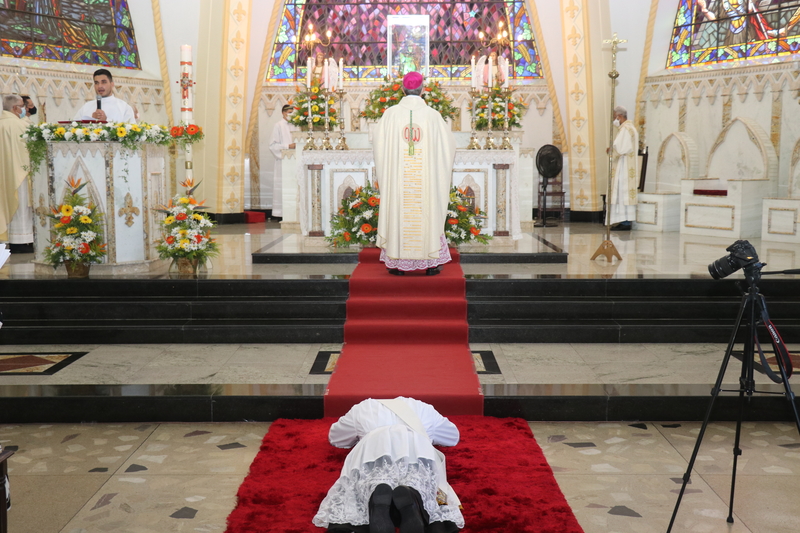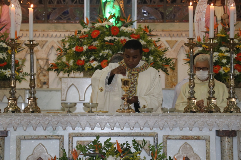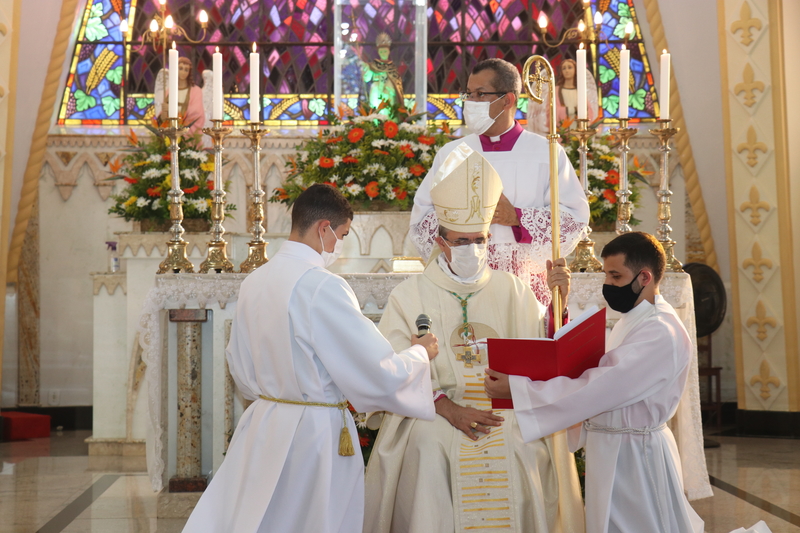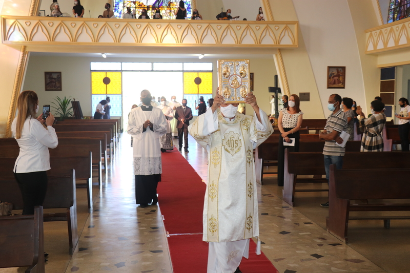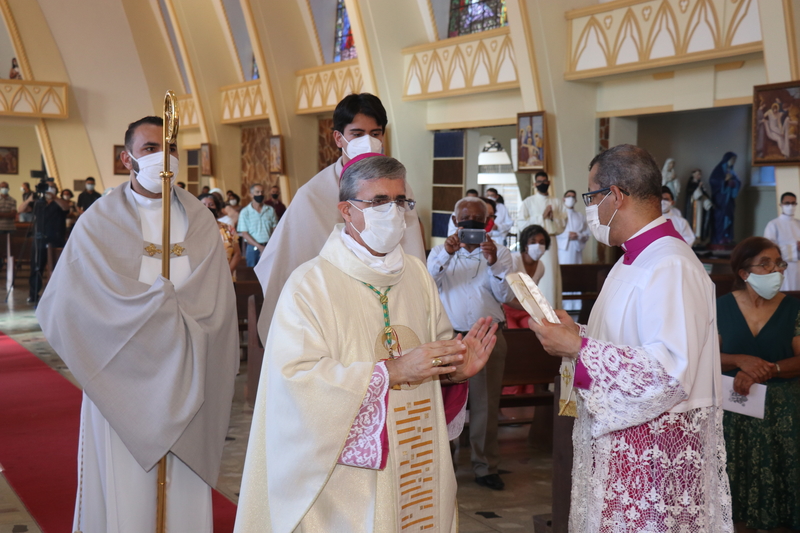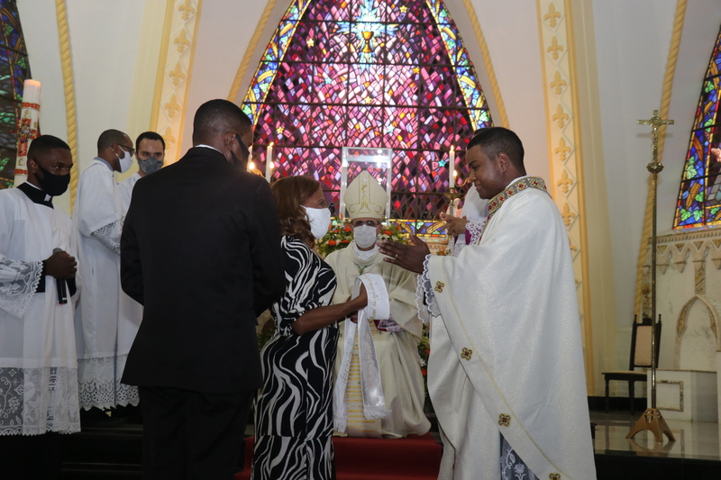 Transmitida através do Facebook e Youtube de nossa Diocese, a Solene celebração, foi realizada na Igreja Matriz São Domingos de Gusmão em São Domingos do Prata (MG). Com a participação limitada, contou-se com a presença do clero, familiares e alguns convidados.