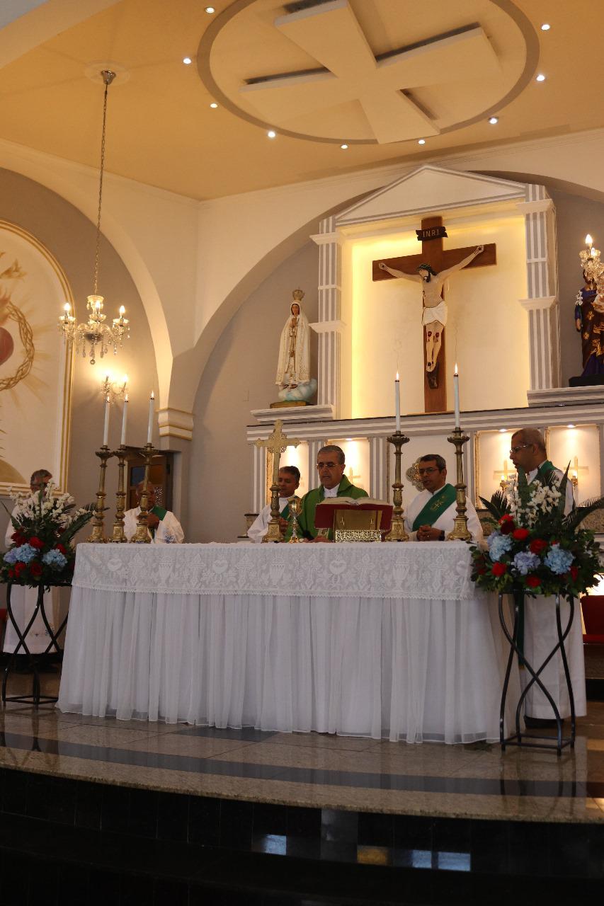 O encontro teve início com a Celebração da Santa Missa na Matriz Nossa Senhora de Fátima, presidida pelo nosso bispo diocesano, Dom Marco Aurélio Gubiotti, e concelebrada pelo Pe. Éfferson.