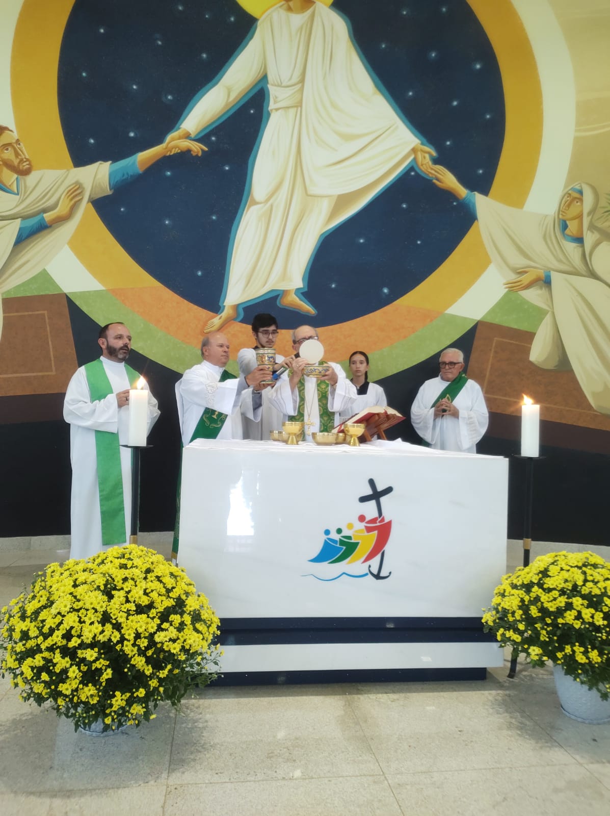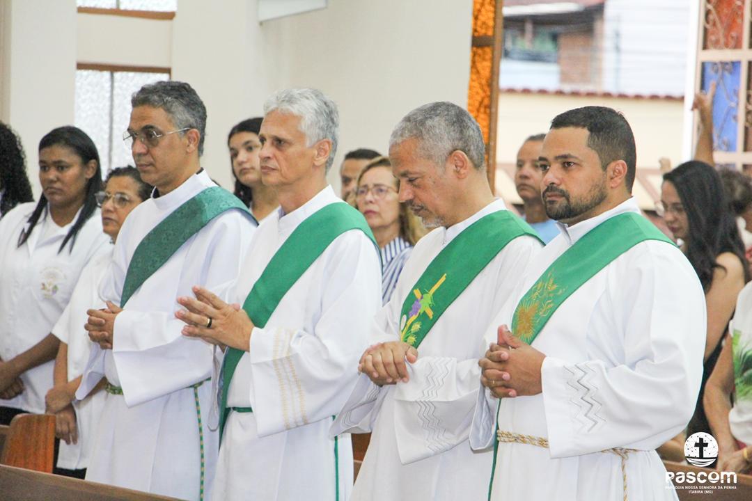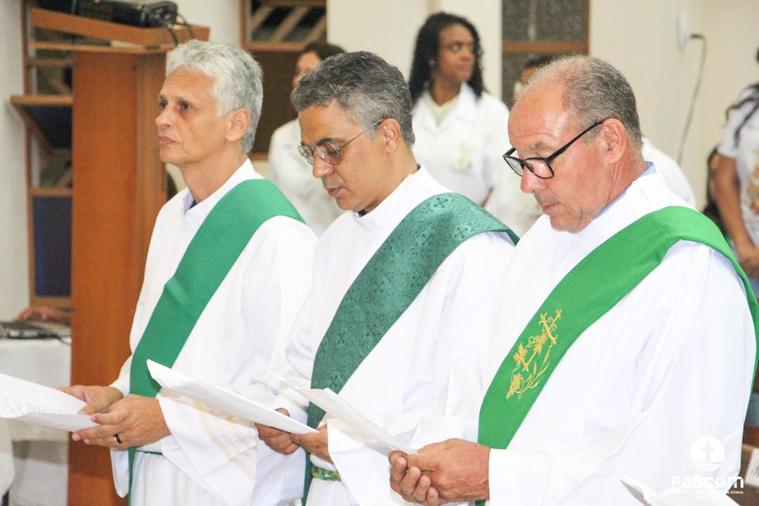 Logo pela manhã, às 10h, na Igreja Sagrado Coração de Jesus, Paróquia Nossa Senhora da Conceição, em João Monlevade, os diáconos do Regional 2 participaram da missa presidida pelo Pe. Elson Vital. No final da tarde, às 16h, no Santuário Diocesano Nossa Senhora da Piedade, em Coronel Fabriciano, os diáconos do Regional 3 participaram da celebração eucarística presidida por Dom Odilon Guimarães, bispo emérito, e concelebrada pelo Pe. Marcelo Ávila, SX. No início da noite, às 18h, na Igreja São Geraldo Majela, Paróquia Nossa Senhora da Penha, em Itabira, os diáconos do Regional 1 participaram da eucaristia presidida pelo Pe. Ueliton Neves.