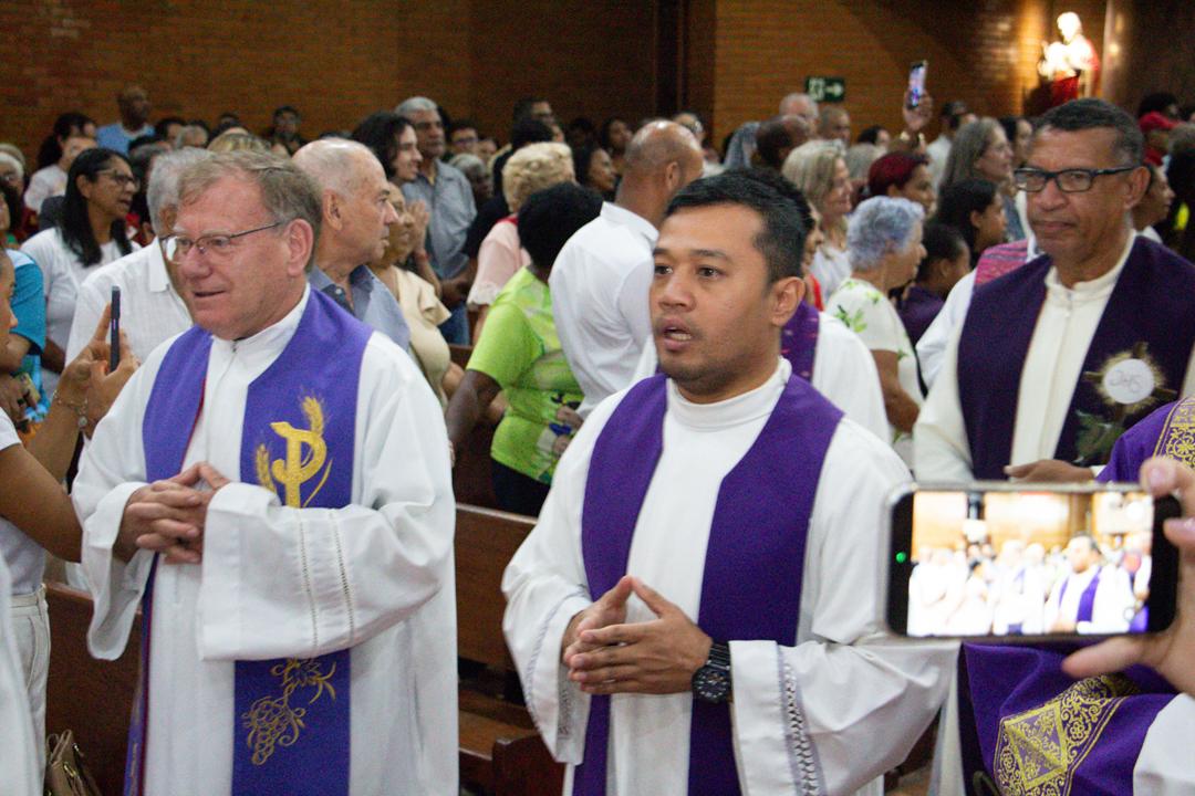 No dia 21, o Regional 3 reuniu-se no Santuário Senhor do Bonfim para prestar sua homenagem. Padres, diáconos, seminaristas e uma expressiva parcela dos fiéis participaram da celebração. Às 18h tiveram início as homenagens, marcadas por palavras de reconhecimento, carinho e gratidão pelo cuidado pastoral, pelo incentivo às comunidades e pelo testemunho de comunhão. Às 19h, a Santa Missa coroou o momento, expressando, na Eucaristia, a unidade construída ao longo dos anos.