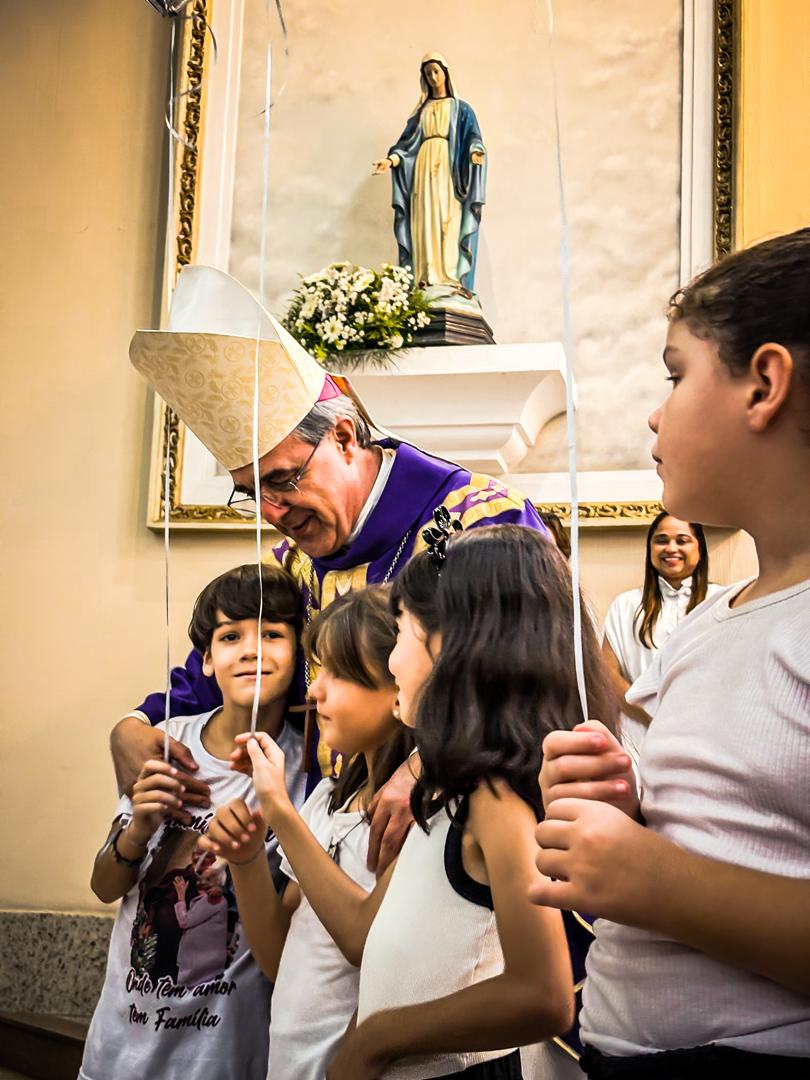 Durante a Santa Missa, foi concedida a bênção apostólica e renovada a ação de graças por todo o bem realizado. Em sua palavra final, Dom Marco Aurélio destacou a alegria de ter iniciado seu episcopado nesta Igreja Particular, agradeceu aos leigos comprometidos, aos clérigos e às parcerias firmadas ao longo da missão. Ressaltou que não se trata de uma despedida definitiva, mas de um “até breve”, ao seguir para sua nova missão em Juiz de Fora, levando no coração o carinho e a fé do povo itabirano.