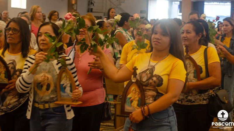 O momento final da celebração foi marcado pela entrada dos “anjinhos”, que cantaram “Maria, Luz de Esperança”, e pela passagem sob o túnel de flores preparado pelos missionários. A comunidade então fez sua Consagração à Mãe e Rainha, num gesto de entrega e renovação da fé.