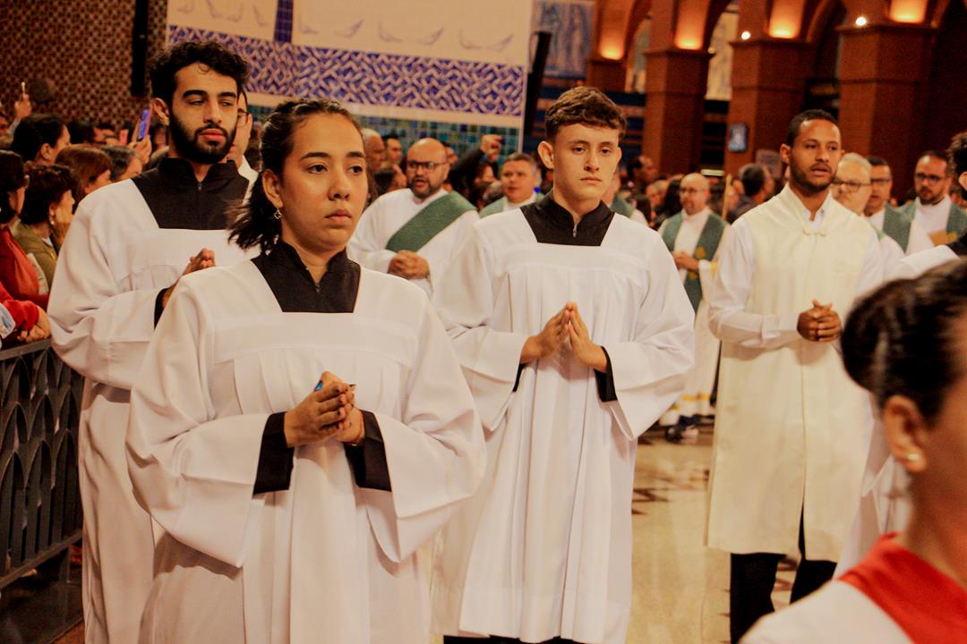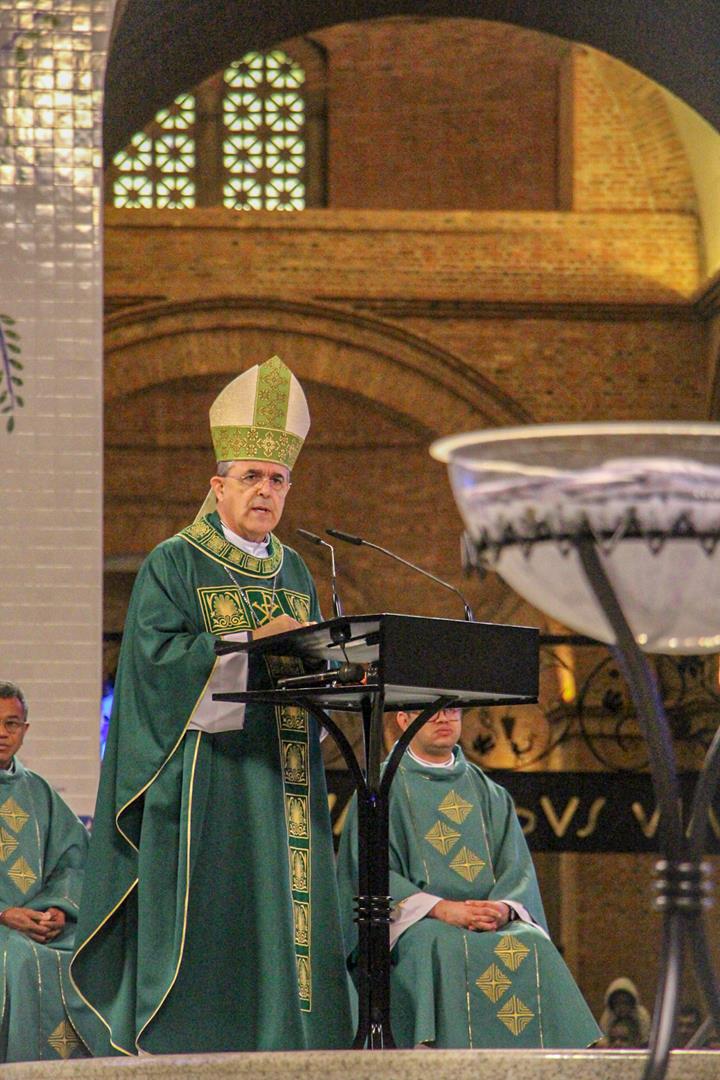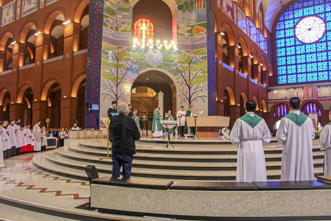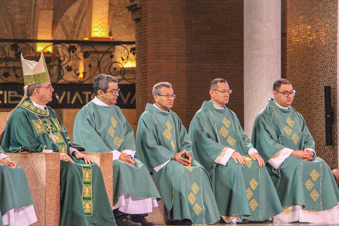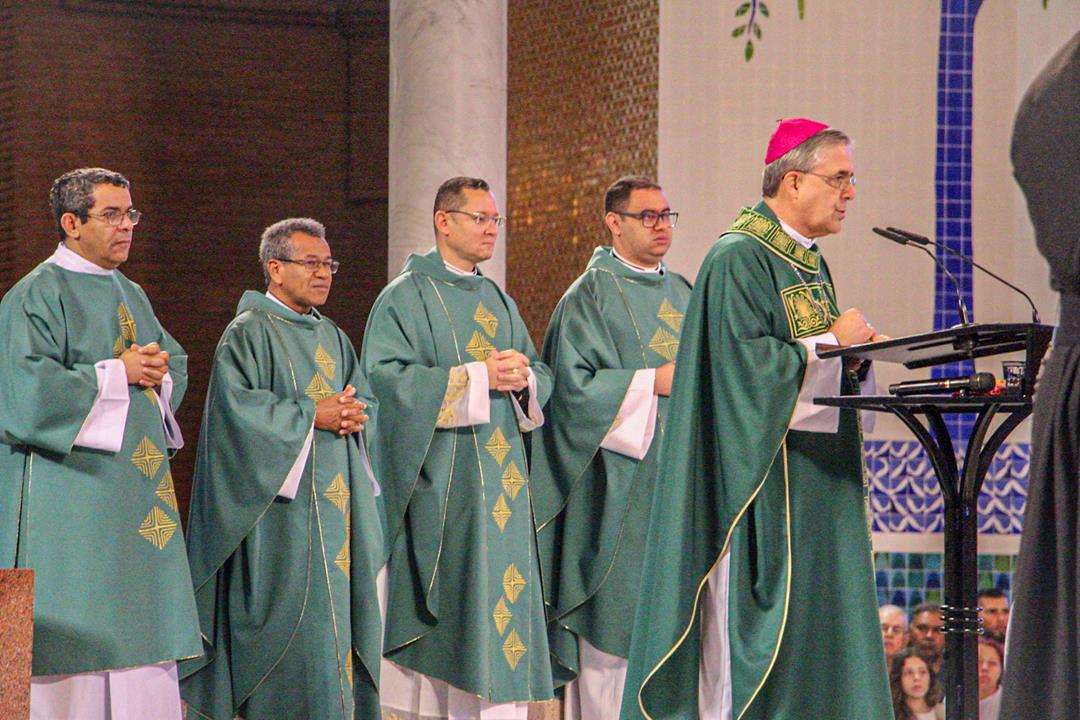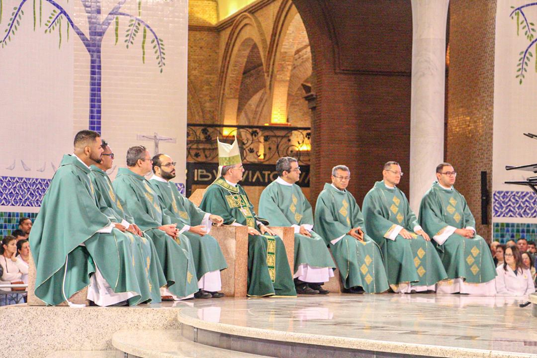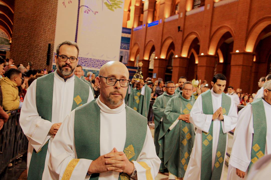 A Diocese de Itabira-Coronel Fabriciano realizou no último final de semana a romaria ao Santuário Nossa Senhora Aparecida, São Paulo. A romaria é uma das atividades do Ano Jubilar Diocesano 2024/2025 rumo aos 60 anos de história e evangelização de nossa igreja particular. Na manhã do dia 20 de julho, Dom Marco Aurélio Gubiotti, bispo diocesano, presidiu a santa missa no Altar principal do Santuário da Mãe Aparecida, transmitida pela TV Aparecida, com uma significativa participação de romeiros da nossa diocese e de outras. Na oportunidade, Dom Marco Aurélio recordou que, além do jubileu diocesano, rezamos pelos membros do clero em celebração jubilar de prata de ordenação neste ano: Dom Odilon Guimarães Moreira, de ordenação episcopal; padres José Geraldo da Silva Reis, Justin Munduala Tchiwala (CICM), Pascifal José do Nascimento e Rogério Baumann Hernandes, de ordenação presbiteral.