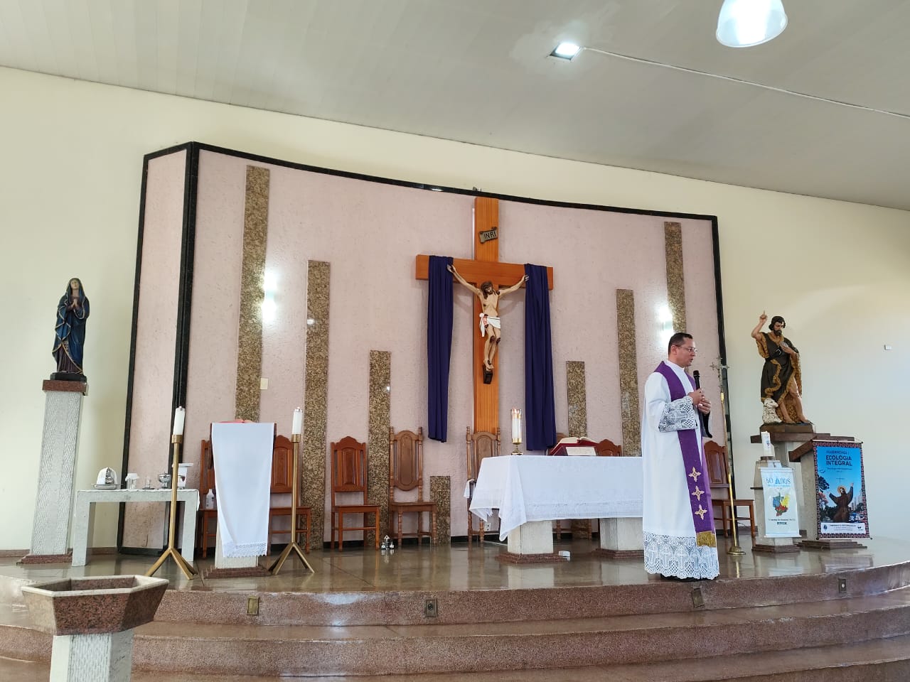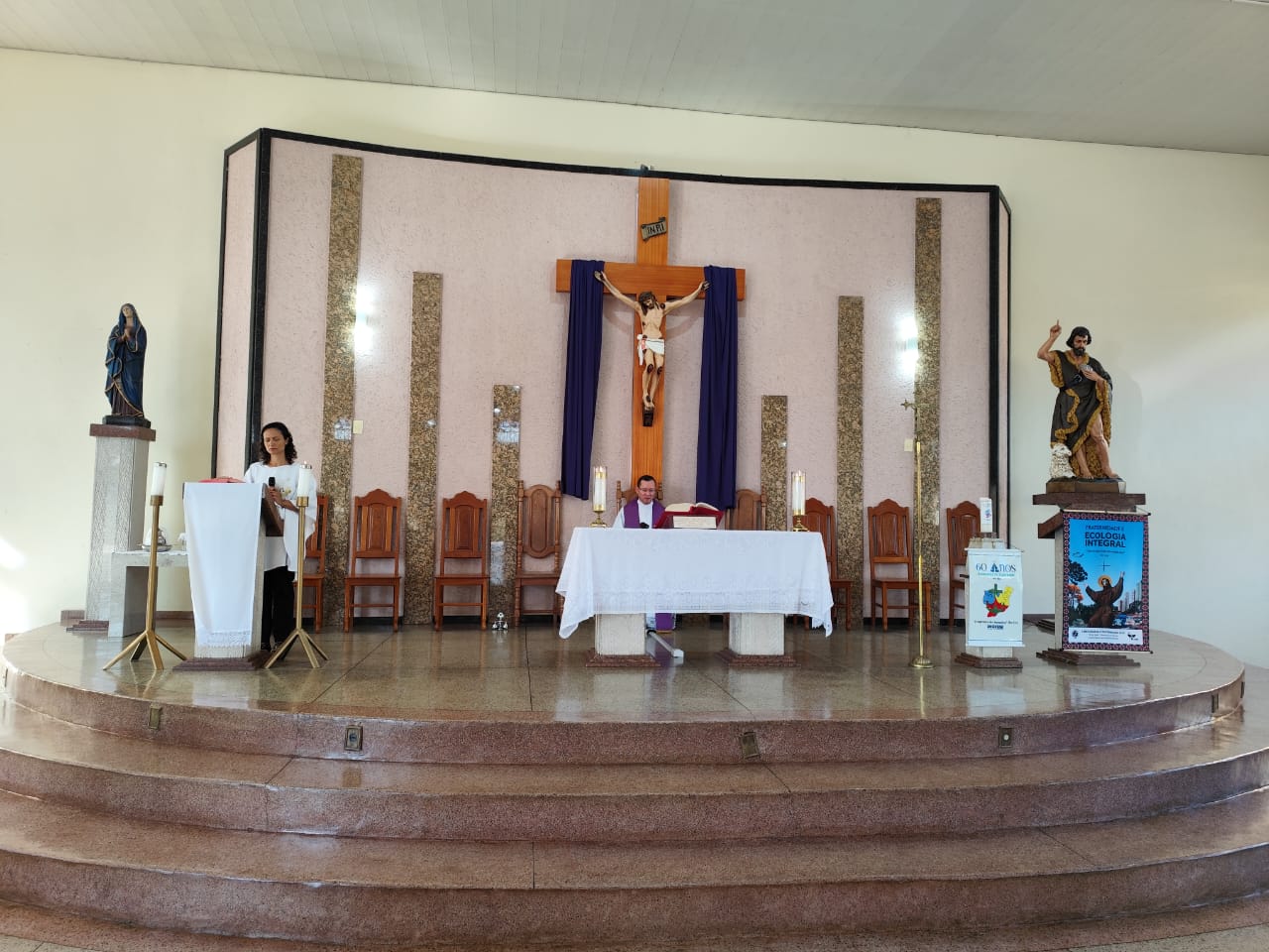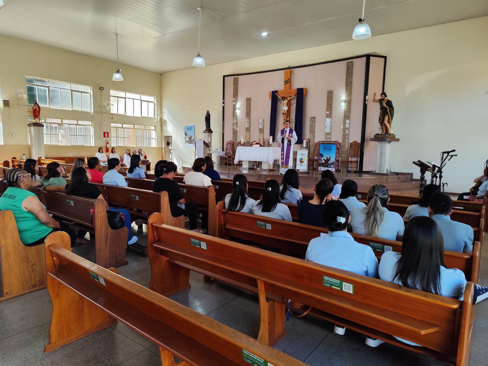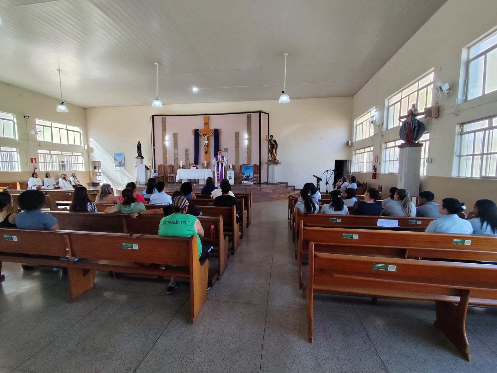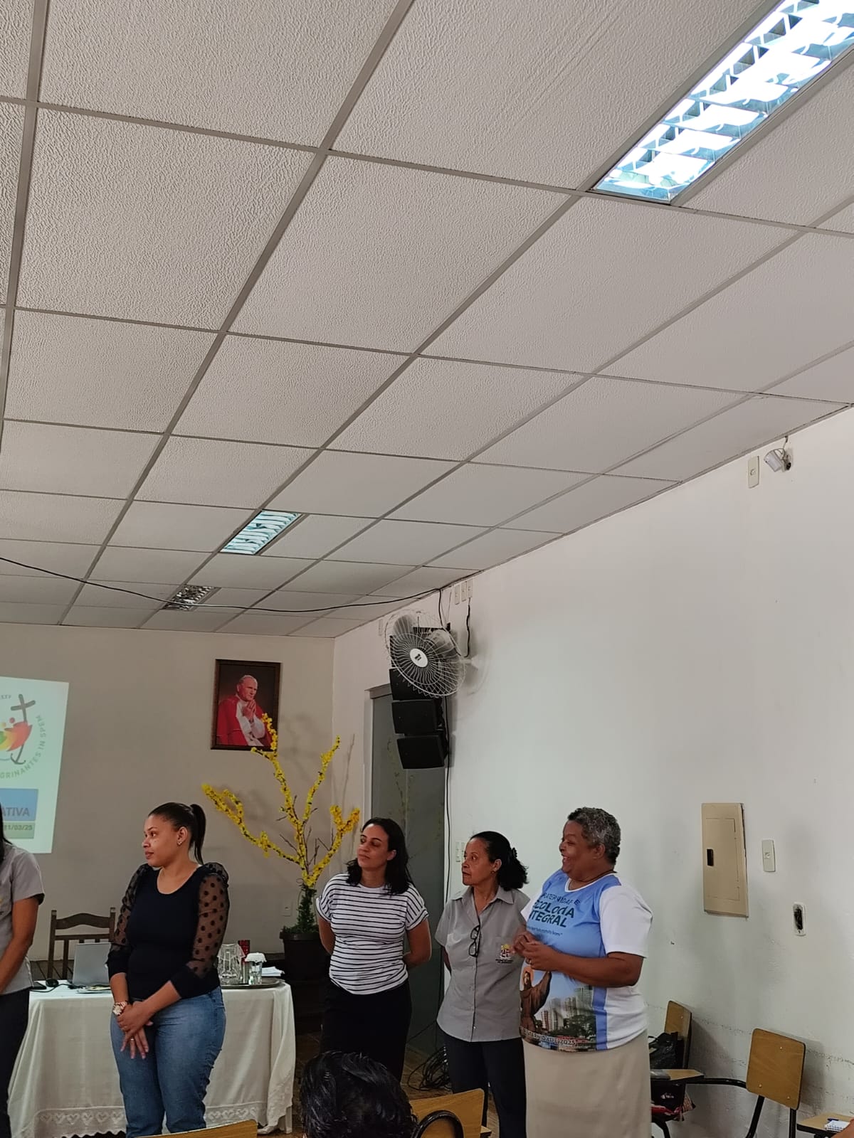 O encontro teve início com a santa missa presidida pelo Pe. Ueliton Neves da Silva, chanceler do bispado e moderador da Cúria Diocesana, na Igreja Matriz da Paróquia São João Batista. Em seguida, os participantes seguiram para o café e a formação que aconteceu no salão paroquial, onde foram acolhidos e apresentados pelo Pe. Ueliton. Diolina Vicentina Teixeira, notária da Cúria Diocesana, e Ir. Sílvia Aparecida Batista, FSCJ, Secretária de Pastoral da Região Pastoral 1, falaram sobre o “Intercâmbio de dons”, expressão usada no documento final da XVI Assembleia Geral Ordinária do Sínodo dos Bispos, segunda sessão, que aconteceu entre os dias 02 e 27 de outubro de 2024, com o tema: “Para uma Igreja sinodal: comunhão, participação, missão”. O documento final do Sínodo enfatiza uma série de reformas e propostas para tornar a Igreja mais inclusiva, participativa e conectada com as comunidades locais. A secretaria paroquial deve ser um espaço de apostolado e escuta, buscando sempre o diálogo e a integração, com foco na evangelização e no espírito de sinodalidade.