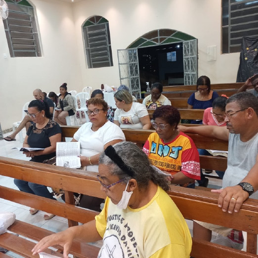 No dia 20/12, celebramos o 9º dia da Novena de Natal na Comunidade Santa Clara de Assis, Paróquia Cristo Redentor, no São Francisco, bairro Bethânia. Neste dia, fizemos memória da participação desta comunidade nos trabalhos das CEBs de nossa Cidade. Os representantes de nossa Diocese para o 15º Intereclesial são da Paróquia Cristo Redentor, Vasco Lagares e Edna de Oliveira, presentes nesta reflexão. Vimos que para superar a situação de fome e exclusão, nós precisamos nos comprometer e entre os pequenos está a esperança de um mundo novo.