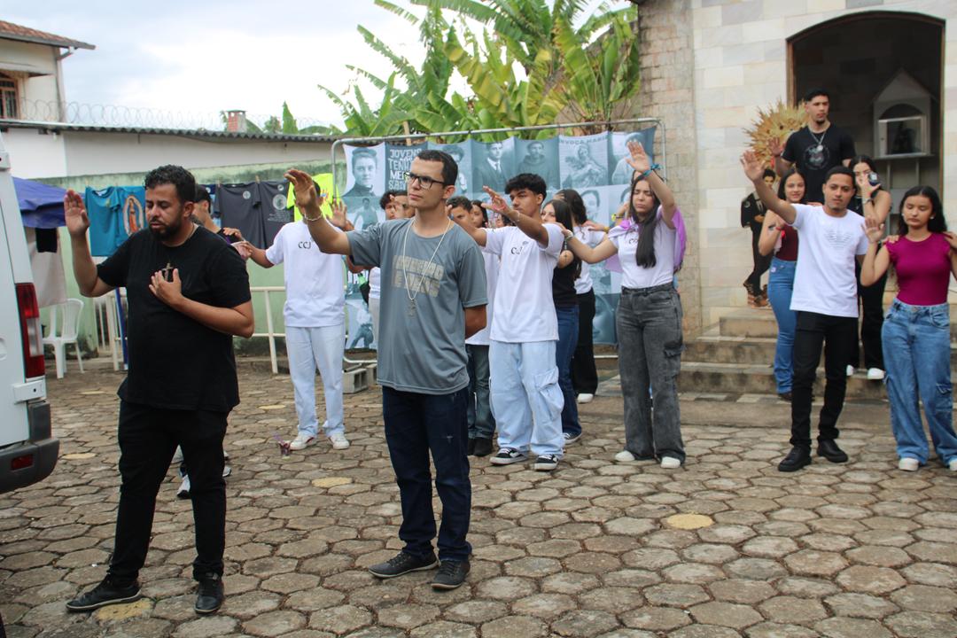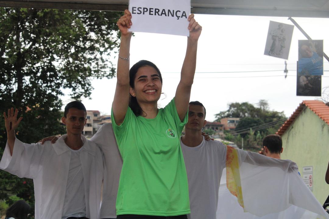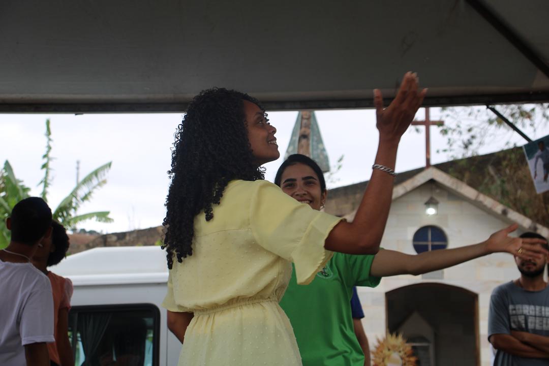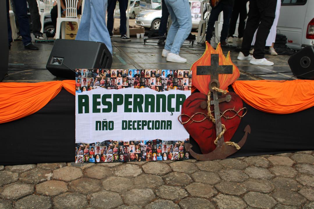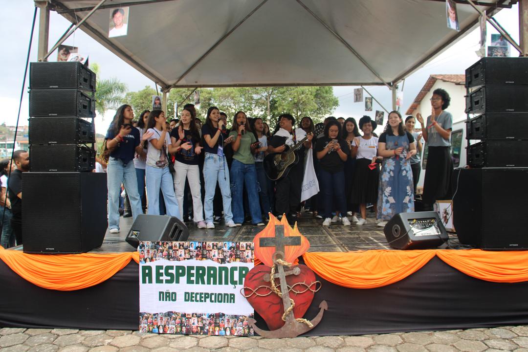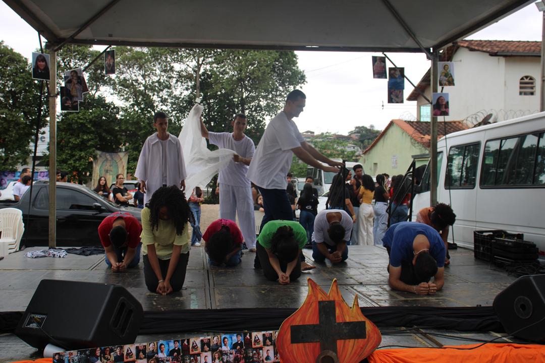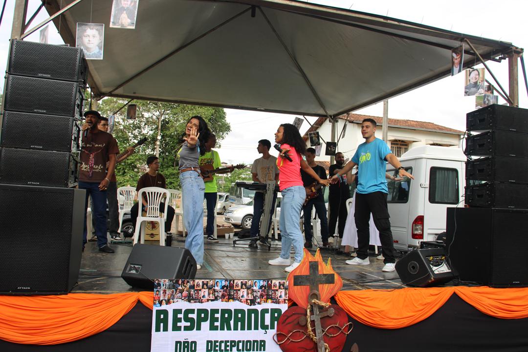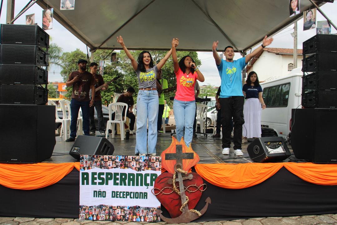 Após o almoço, a tarde foi marcada por intensa vivência espiritual e cultural: o teatro “Cristo é a nossa Esperança, e a Esperança não decepciona” (Rm 5,5) emocionou o público, seguido de um animado show com Cris e Marlon, também da comunidade Cordeiro de Deus.