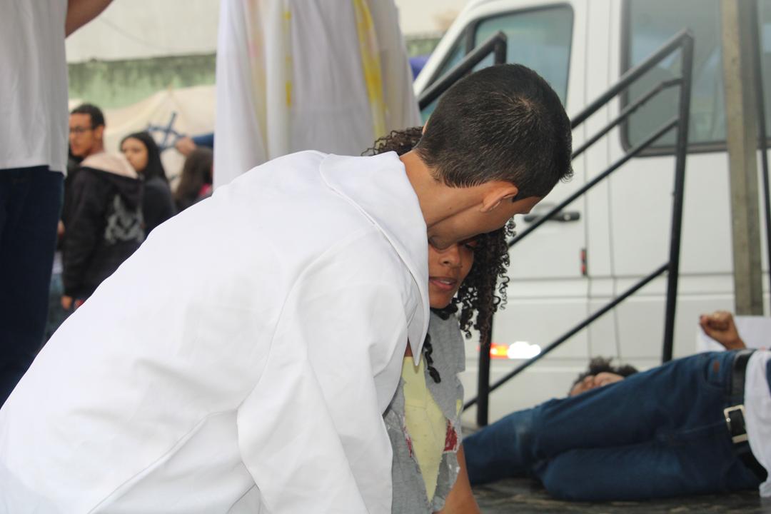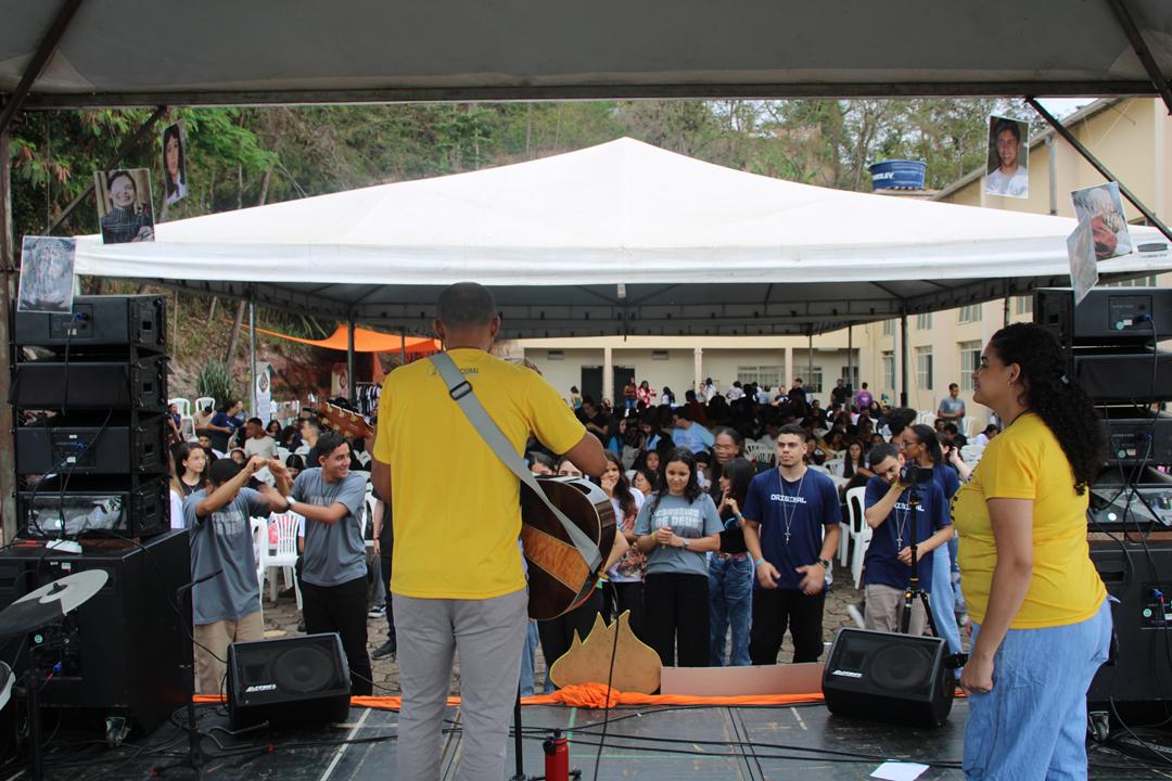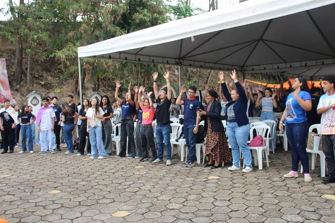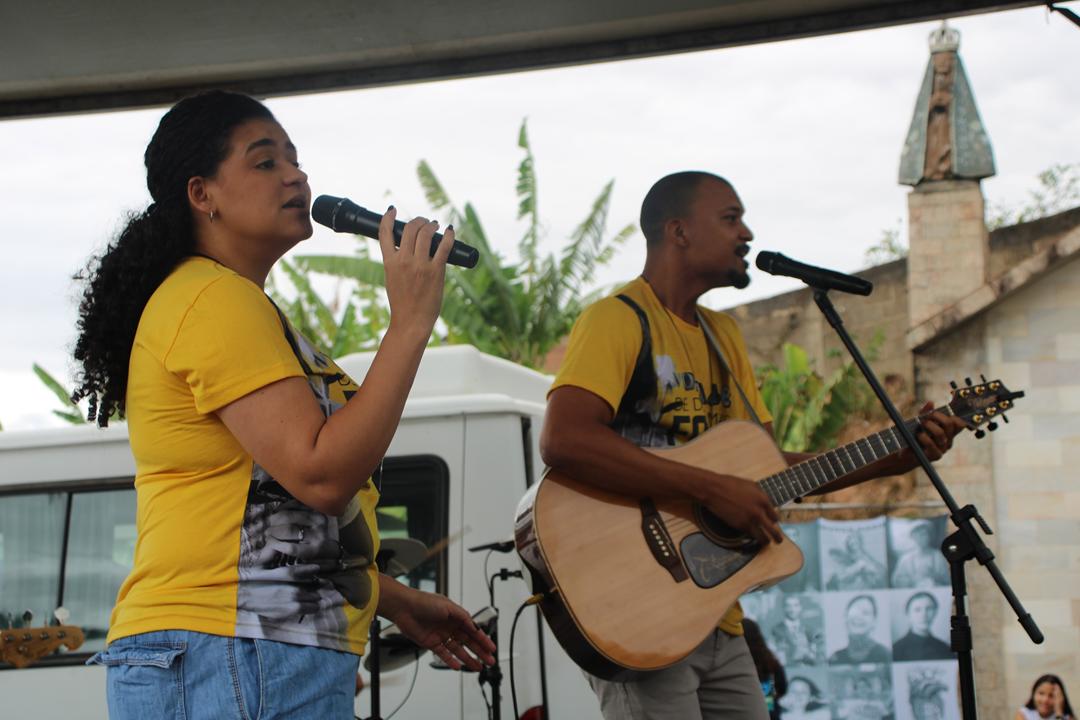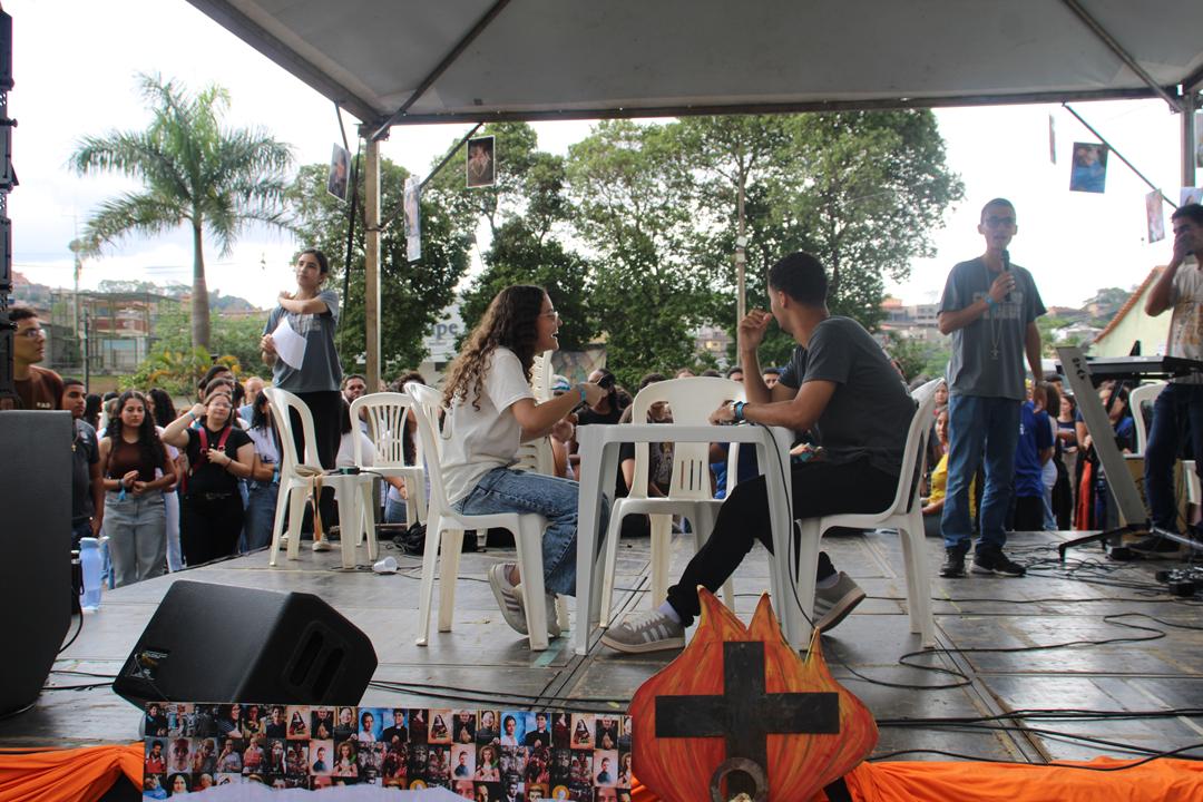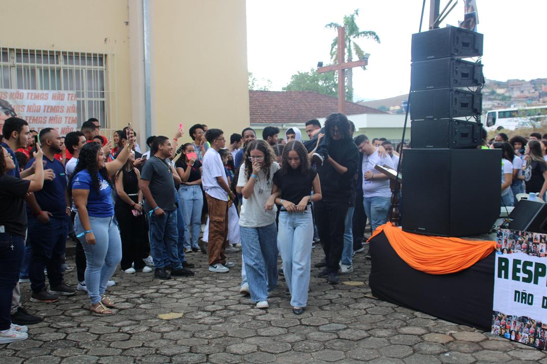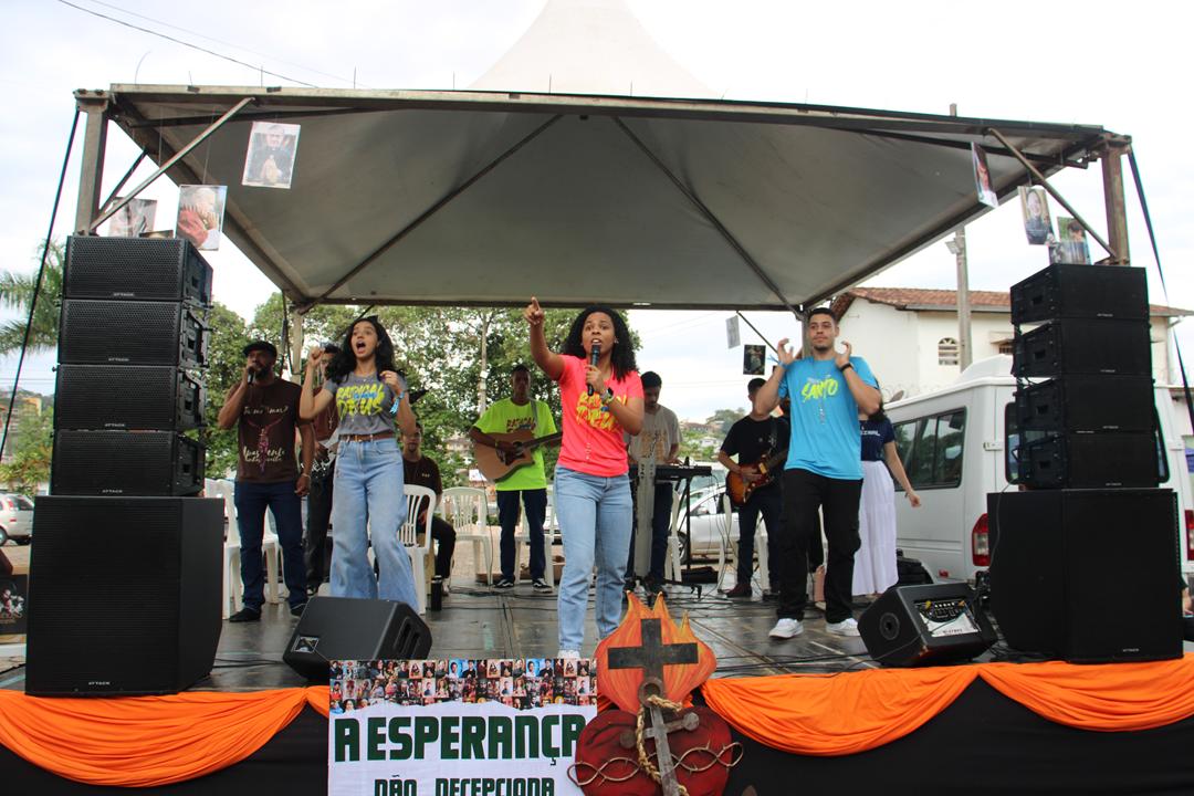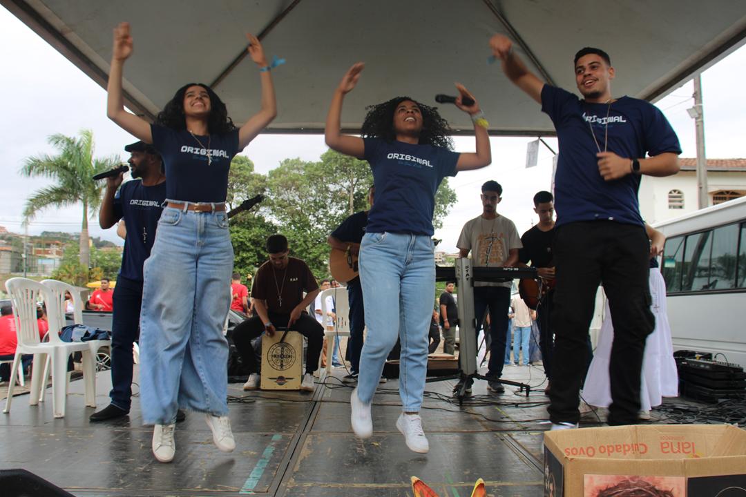 Após o almoço, a tarde foi marcada por intensa vivência espiritual e cultural: o teatro “Cristo é a nossa Esperança, e a Esperança não decepciona” (Rm 5,5) emocionou o público, seguido de um animado show com Cris e Marlon, também da comunidade Cordeiro de Deus.