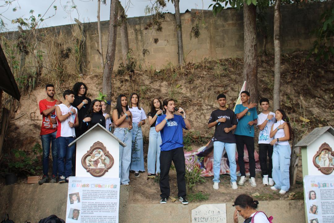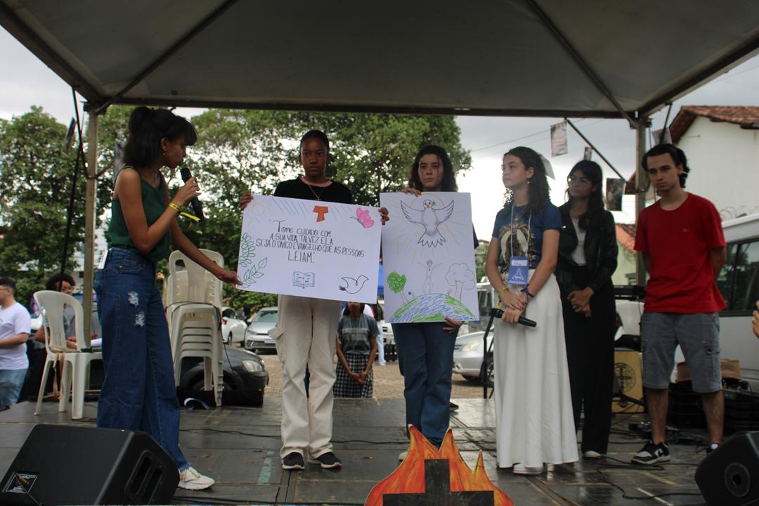A programação teve início às 9h, com acolhida e café, seguida de louvor e animação. Às 10h, houve o momento de aprofundamento sobre o tema “Jovens guardiões da criação”, conduzido pela comunidade Cordeiro de Deus, levando os jovens a refletirem sobre o chamado de Deus para cuidar da vida e do meio ambiente.