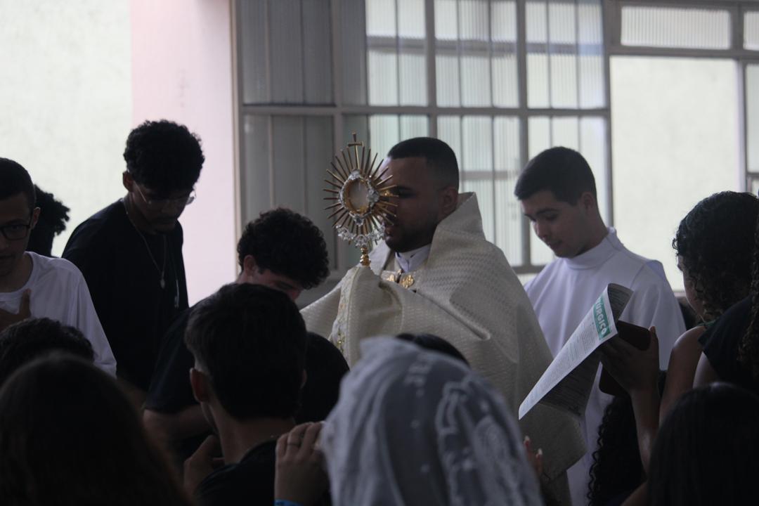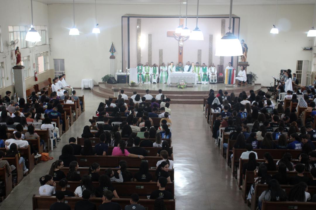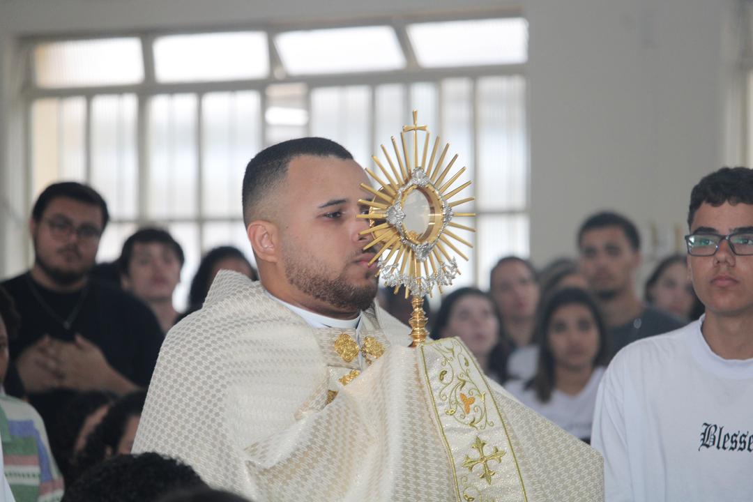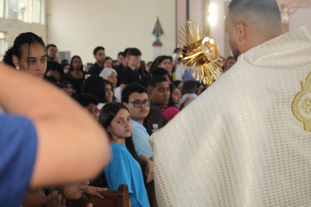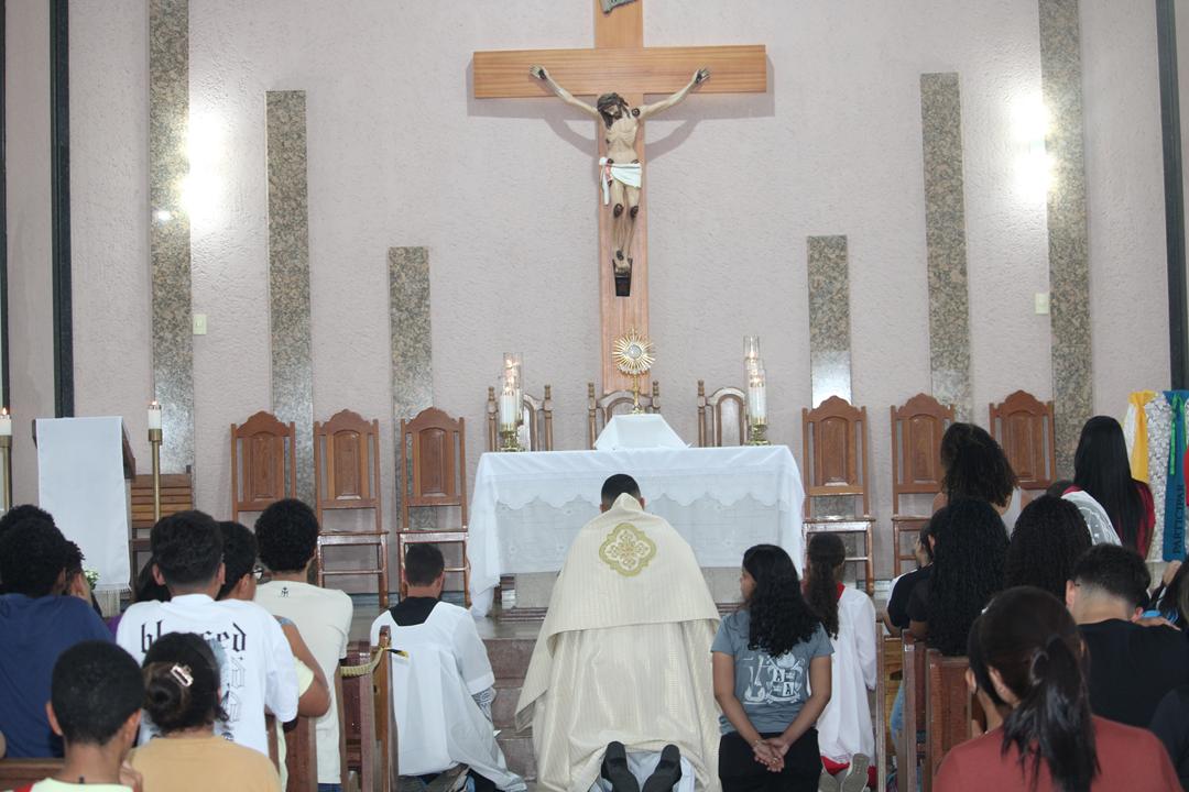 O evento seguiu com um momento de adoração ao Santíssimo Sacramento, conduzido pelo Diácono Marlon e pelos jovens da Comunidade Cordeiro de Deus, culminando com a Santa Missa e o envio dos jovens, presidida pelo Pe. Márcio Rodrigo, contando com a presença de vários padres, Diáconos e seminaristas.