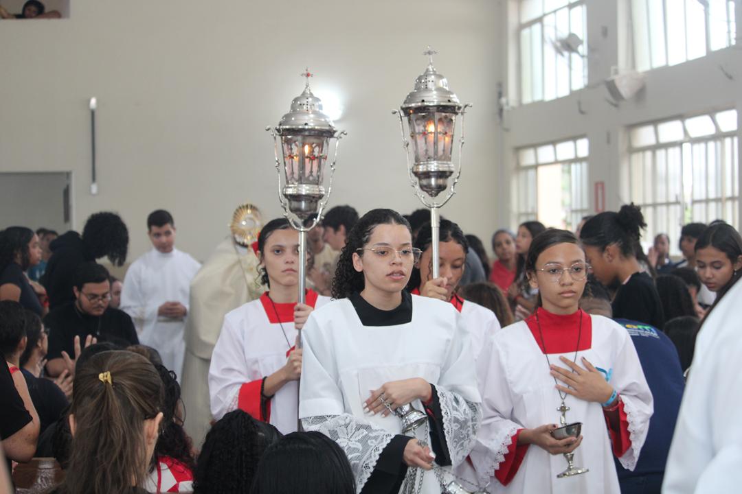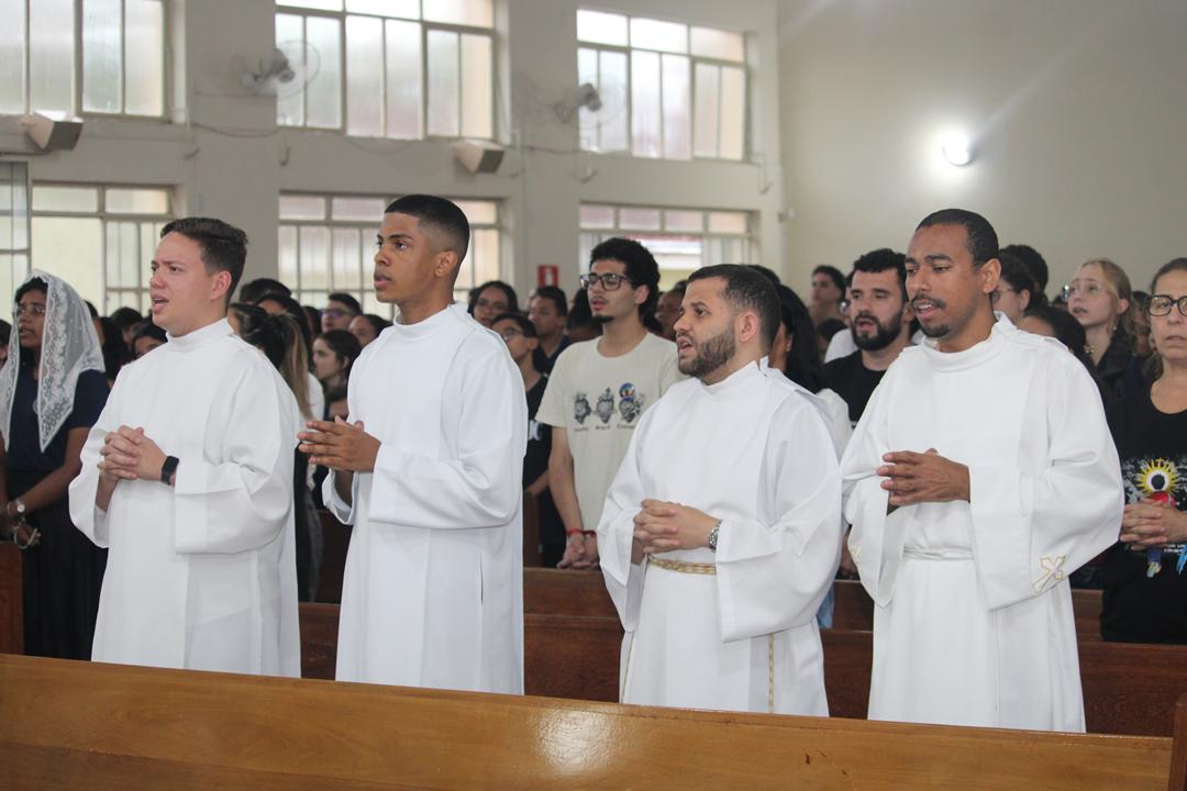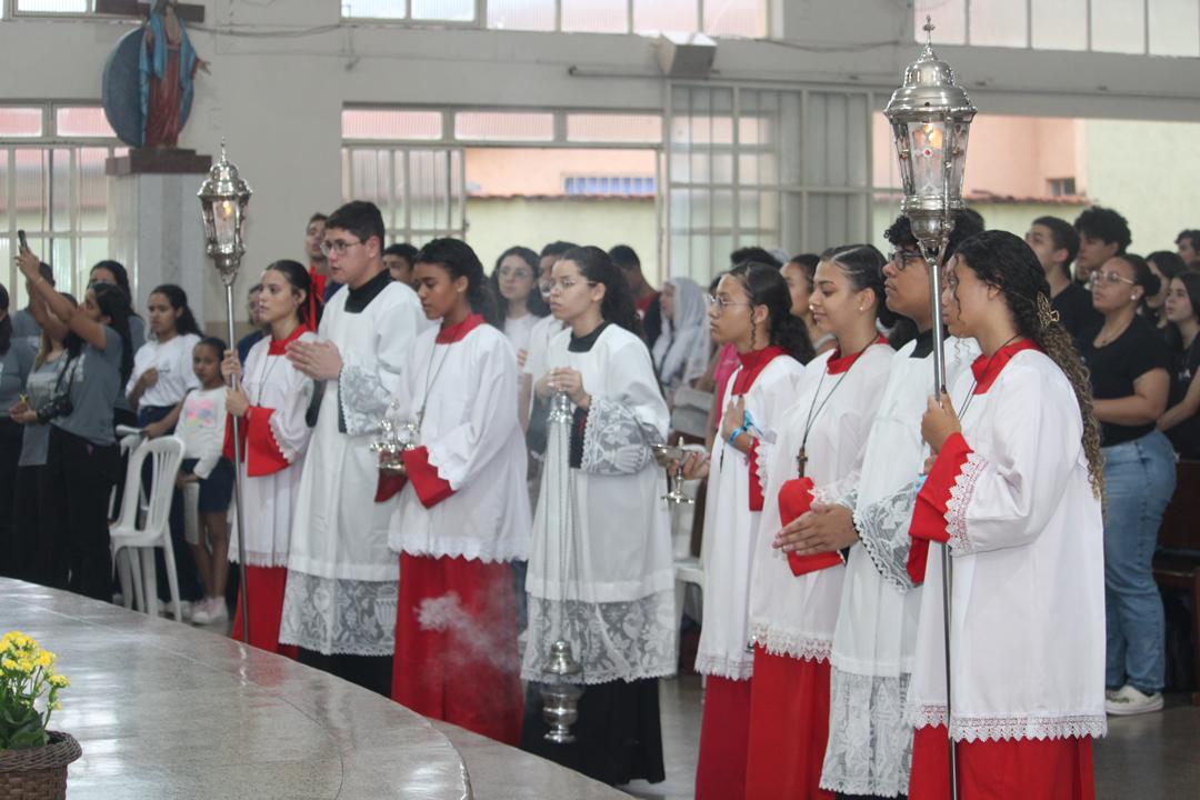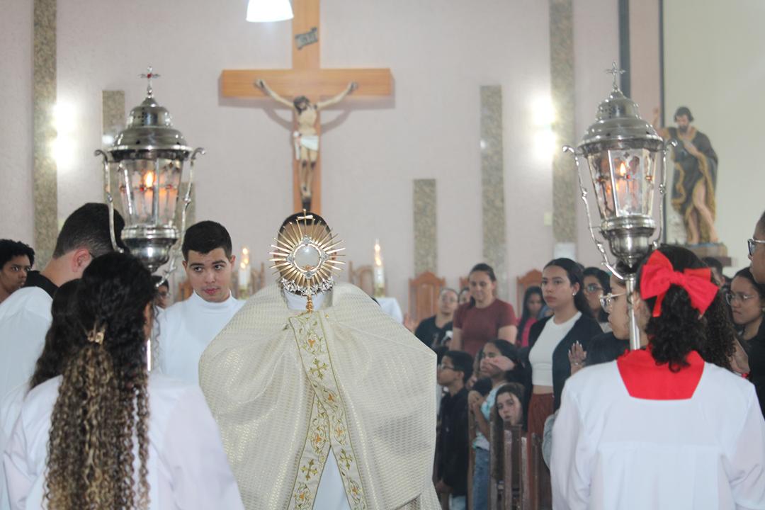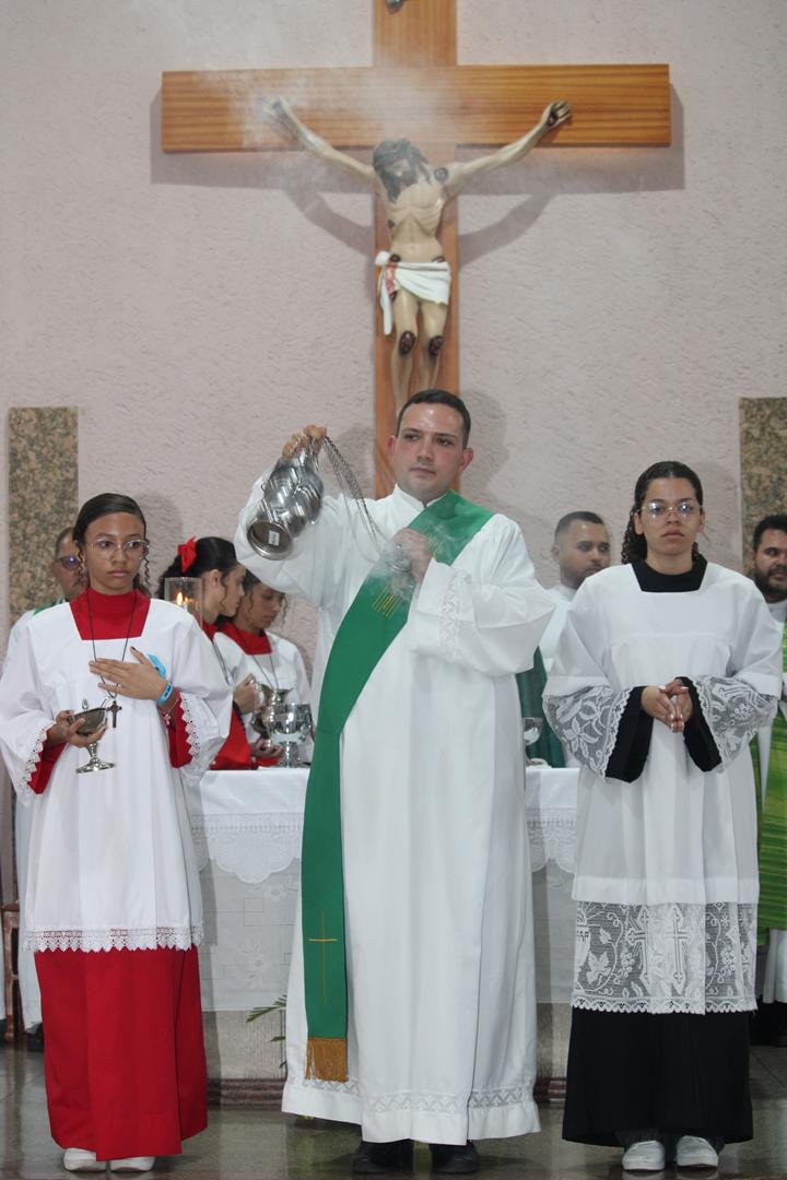 O evento seguiu com um momento de adoração ao Santíssimo Sacramento, conduzido pelo Diácono Marlon e pelos jovens da Comunidade Cordeiro de Deus, culminando com a Santa Missa e o envio dos jovens, presidida pelo Pe. Márcio Rodrigo, contando com a presença de vários padres, Diáconos e seminaristas.