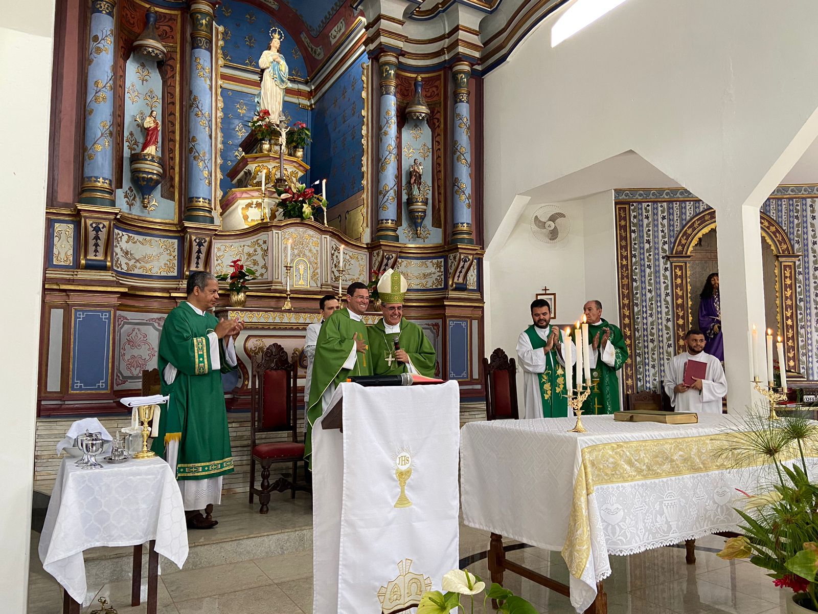 Aconteceu neste último domingo, 12/02, em solene celebração eucarística, a posse canônica do Padre Márcio Soares como administrador paroquial da Paróquia Nossa Senhora das Oliveiras, em Itambé do Mato Dentro. A Eucaristia foi presidida pelo bispo diocesano, Dom Marco Aurélio Gubiotti, e contou com a participação de membros do clero, candidato ao diaconato permanente, seminaristas e uma expressiva participação dos fieis da paróquia Nossa Senhora das Oliveiras, de amigos e de familiares do Padre Márcio Soares.