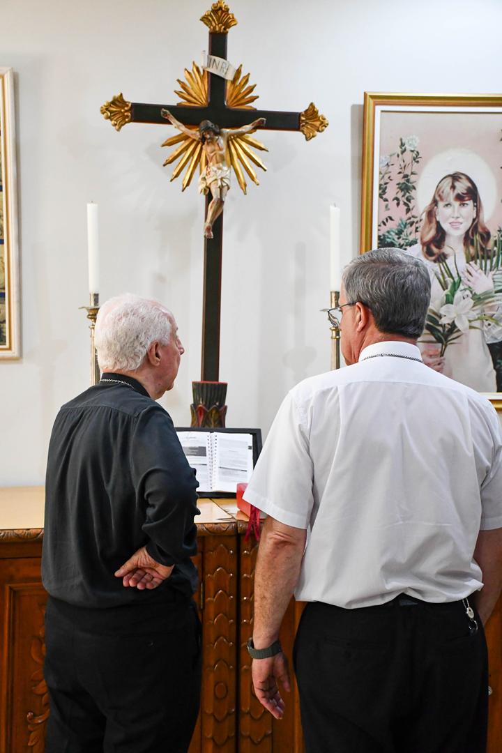 A visita foi acompanhada pelo Administrador Apostólico de Juiz de Fora, Dom Gil Antônio Moreira; pelo Chanceler de Juiz de Fora, Pe. Eder Luiz Pereira; pelo Chanceler da Diocese de Itabira-Coronel Fabriciano, Pe. Ueliton Neves; e pelo Pe. Carlos Arlindo.