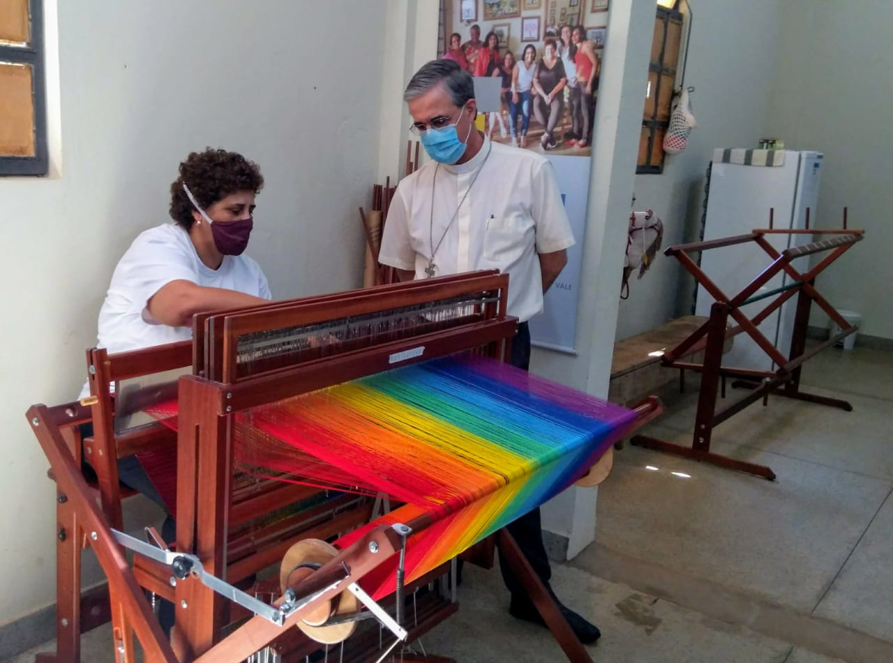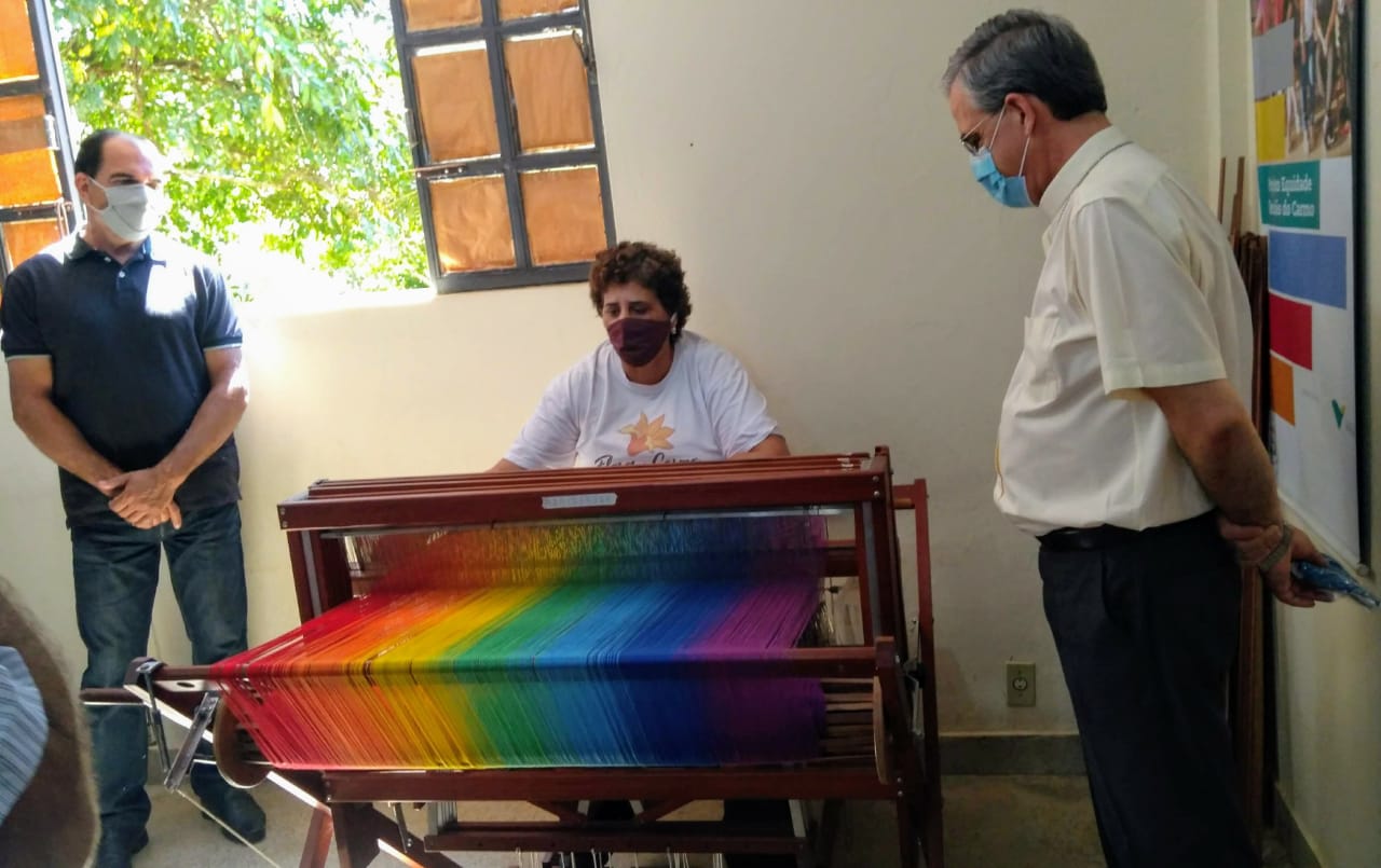 Logo após, Dom Marco Aurélio dirigiu-se à casa paroquial, onde foi recepcionado com café da manhã. Em seguida, realizou a verificação de livros e registros na secretaria paroquial. Cumprindo agenda estabelecida pelo vigário paroquial, visitou o Centro de Tradições e Tear Flores do Carmo. Neste local, nosso bispo diocesano, conheceu a história do distrito de Senhora do Carmo, bem como o trabalho desenvolvido pelas artesãs, como: confecção de bolsas, toalhas, máscaras de proteção individual, entre outros.