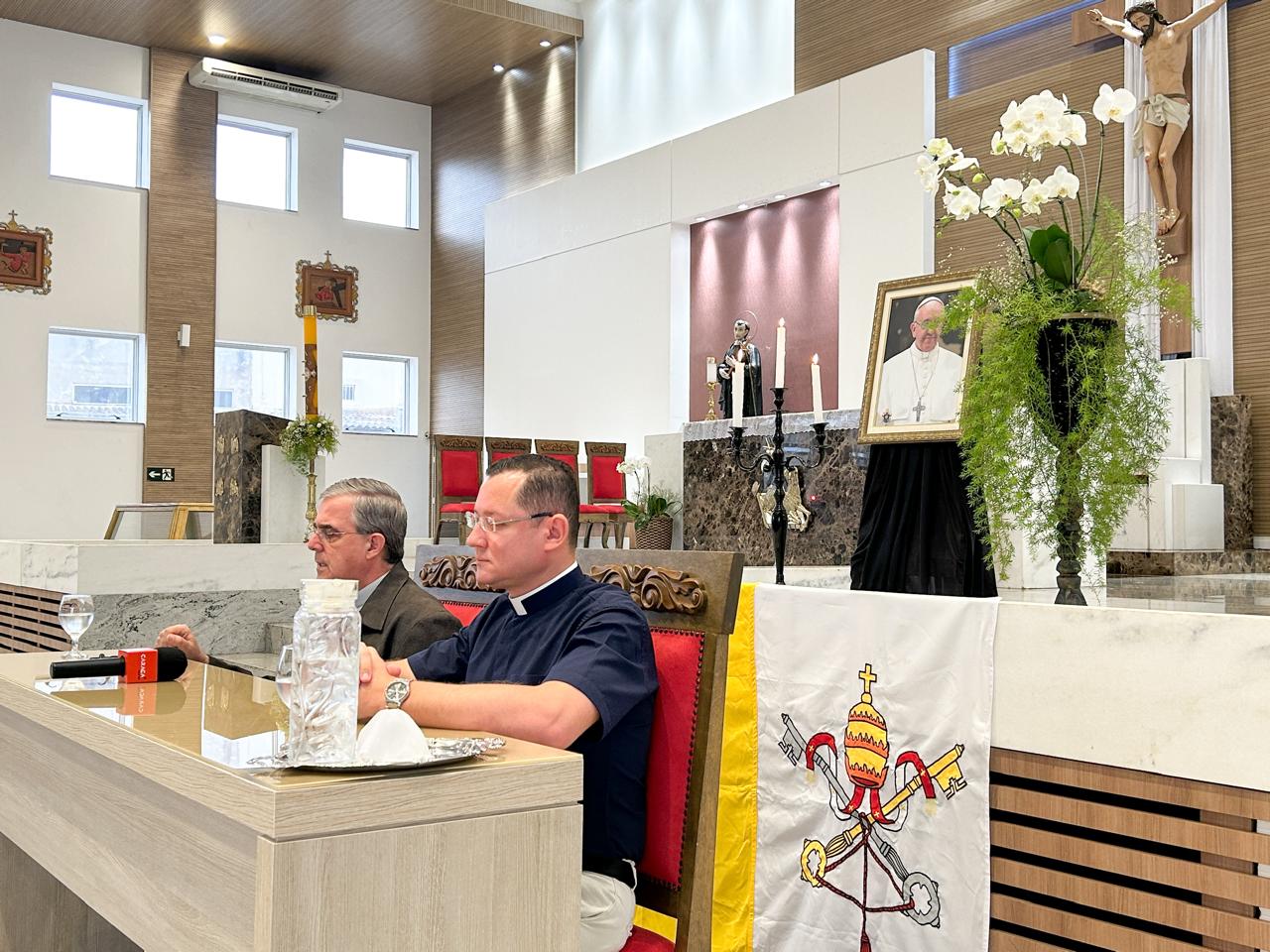 Devido ao falecimento do Santo Padre, o Papa Francisco, ocorrido na manhã da última segunda-feira, 21 de abril de 2025, Dom Marco Aurélio Gubiotti, bispo de Itabira-Coronel Fabriciano, concedeu uma coletiva de imprensa testemunhando o legado deixado pelo Santo Padre para todos nós. A coletiva aconteceu as 11h no Santuário São Geraldo Majela, em Itabira, e foi acompanhada pelo assessor diocesano de comunicação, Pe. Ueliton Neves da Silva. Na oportunidade Dom Marco Aurélio partilhou a experiência que teve com o Santo Padre em três momentos distintos: na jornada mundial da juventude, no Rio de Janeiro; logo quando foi nomeado bispo, em Roma e por último em 2022, na visita Ad Limina Apostolorum. Destacou algumas das muitas características do Papa Francisco: um Papa que buscou servir antes de ser servido; construtor de pontes entre o Evangelho e as angústias da humanidade; olhar sensível e caridoso para com os pobres. Dentre os seus gestos que marcaram nosso modo de viver o Evangelho estão: o lavar os pés dos presos, acolher os migrantes, abraçar os enfermos, expressar sua dor e angústia diante das guerras e outros conflitos e sua preocupação constante com nossa Casa Comum. Ele nos ensinou a viver os valores do Evangelho, com coragem. Recordou ainda o primeiro e importante gesto logo no início do seu pontificado e que marcou toda a sua missão: inclinou-se e pediu a oração e a bênção dos fiéis. Dom Marco Aurélio falou ainda com espírito de gratidão do afeto do Papa Francisco para com todos e recordou para com o povo brasileiro.