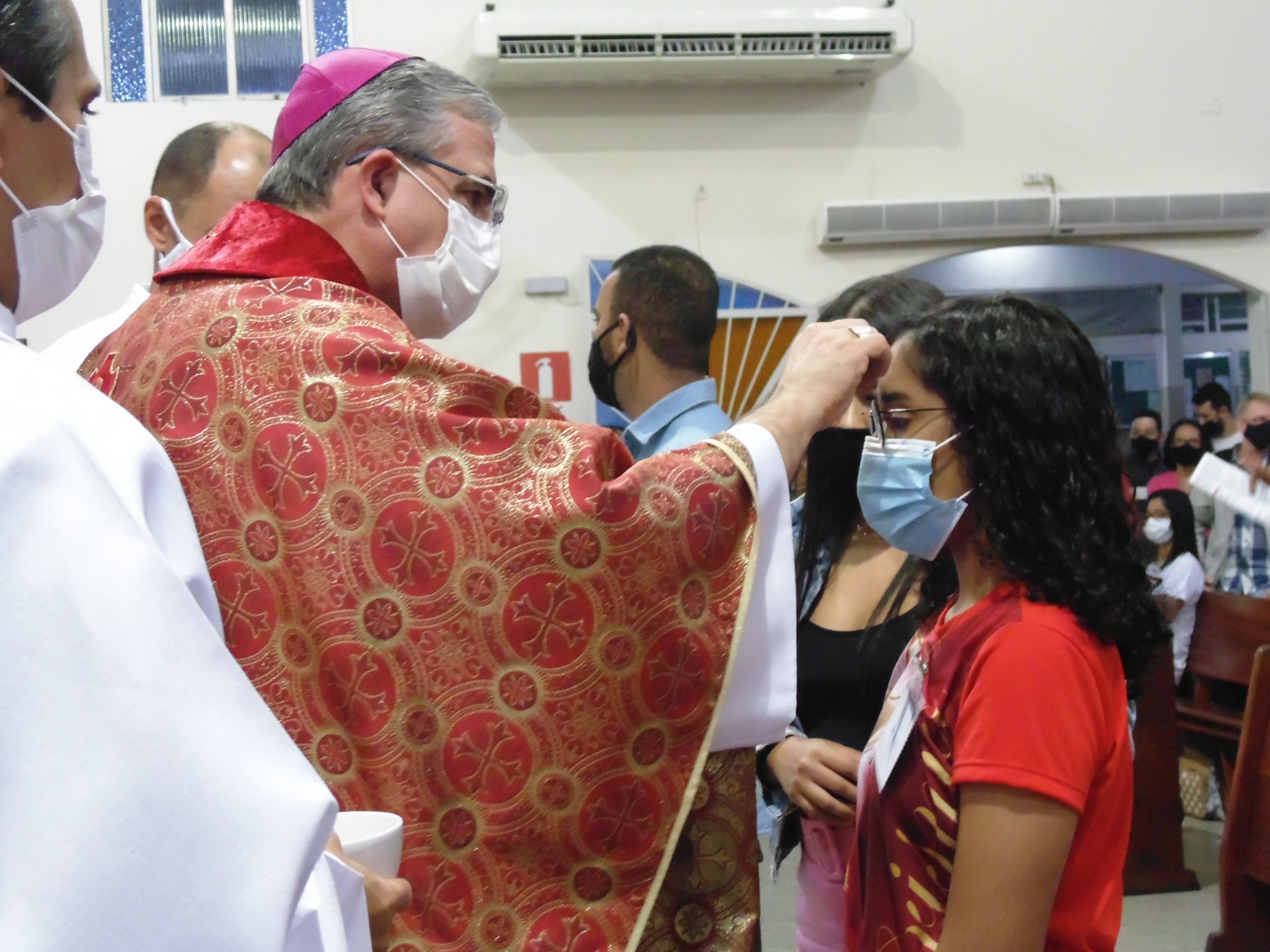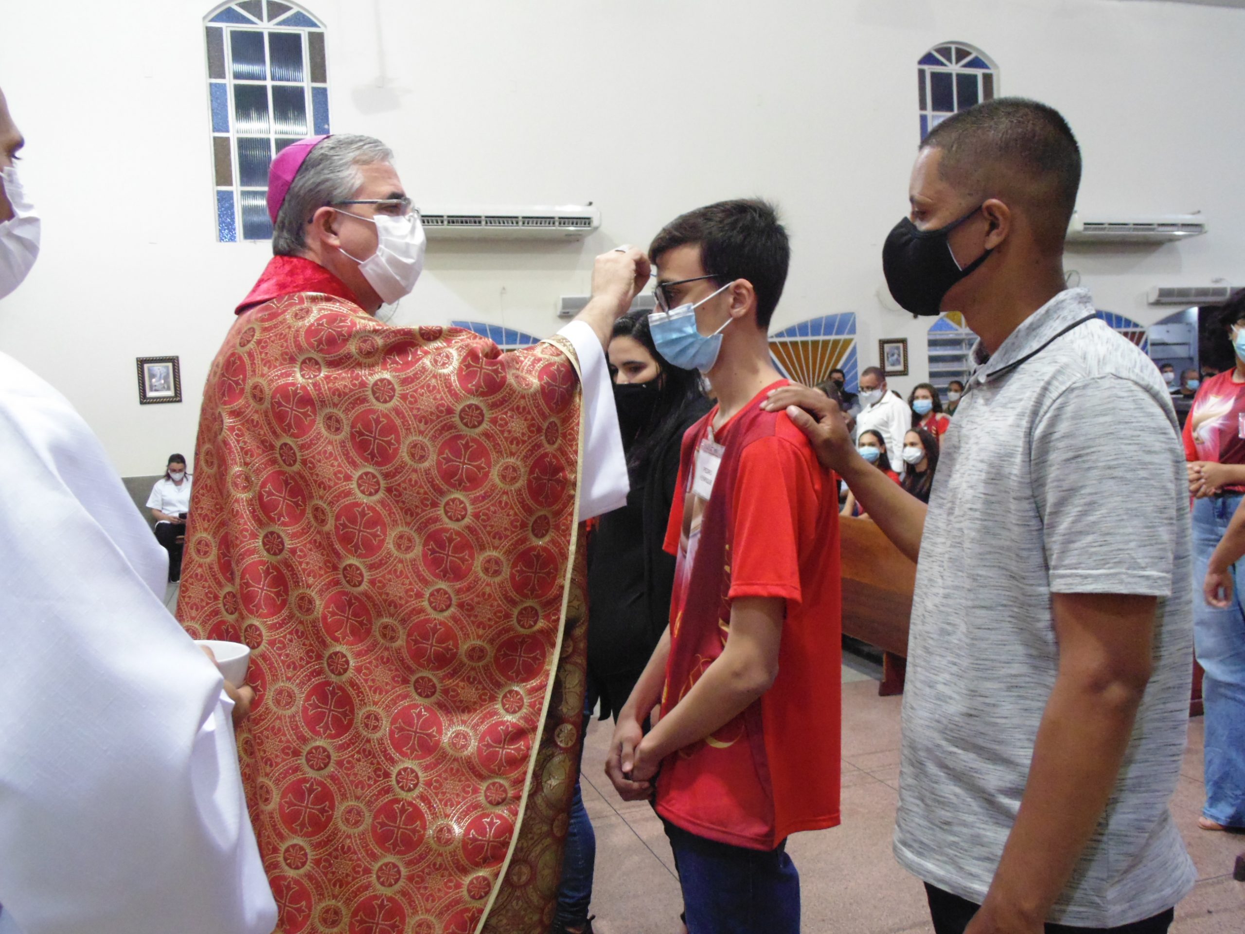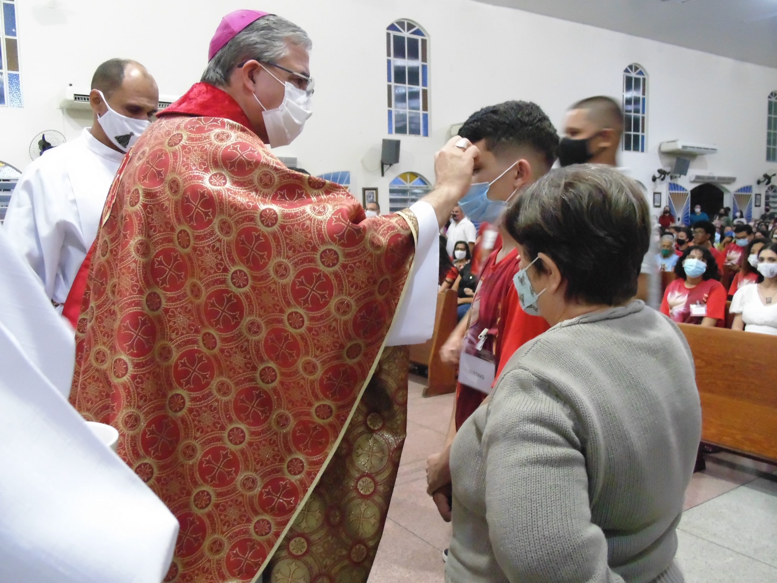 No sábado, 18 de junho, na Igreja Matriz de São Geraldo Magela em Ipatinga (MG), aconteceu a Missa do Sacramento da Crisma. Presidida por Dom Marco Aurélio Gubiotti, Bispo da Diocese de Itabira – Coronel Fabriciano, concelebrada pelo Pároco Pe. Aloísio Vieira e pelo Vigário Paroquial Geraldo Morini, e com assistência dos Diáconos Permanentes Henrique Armstrong Carvalho Rodrigues e Márcio Rogério Vieira Honorato, a celebração foi realizada com a observação dos protocolos e orientações de biossegurança para evitar a transmissão e contaminação do covid-19.