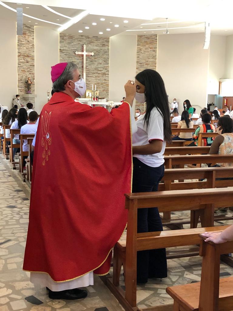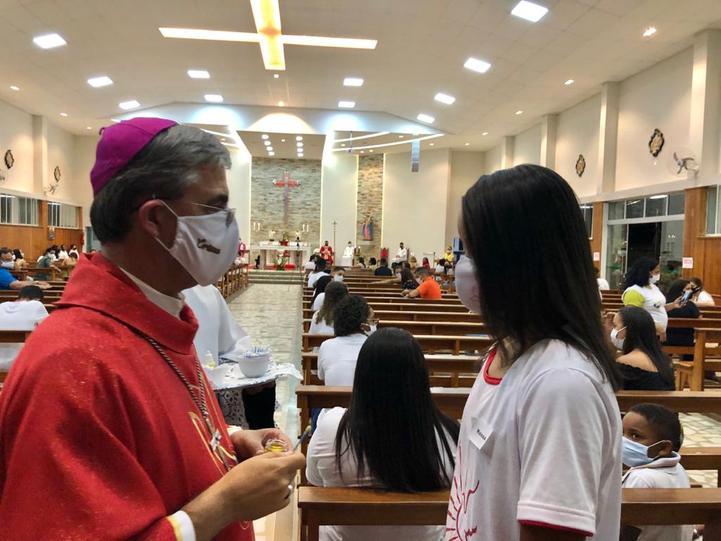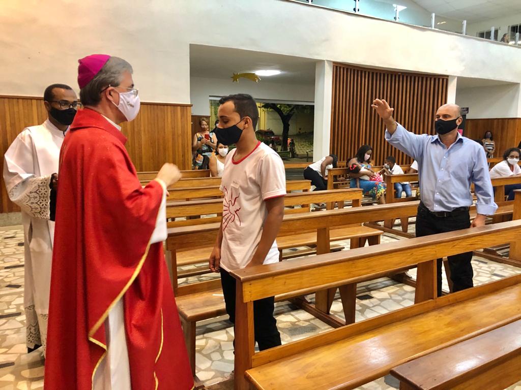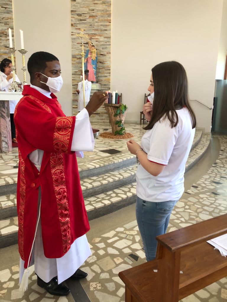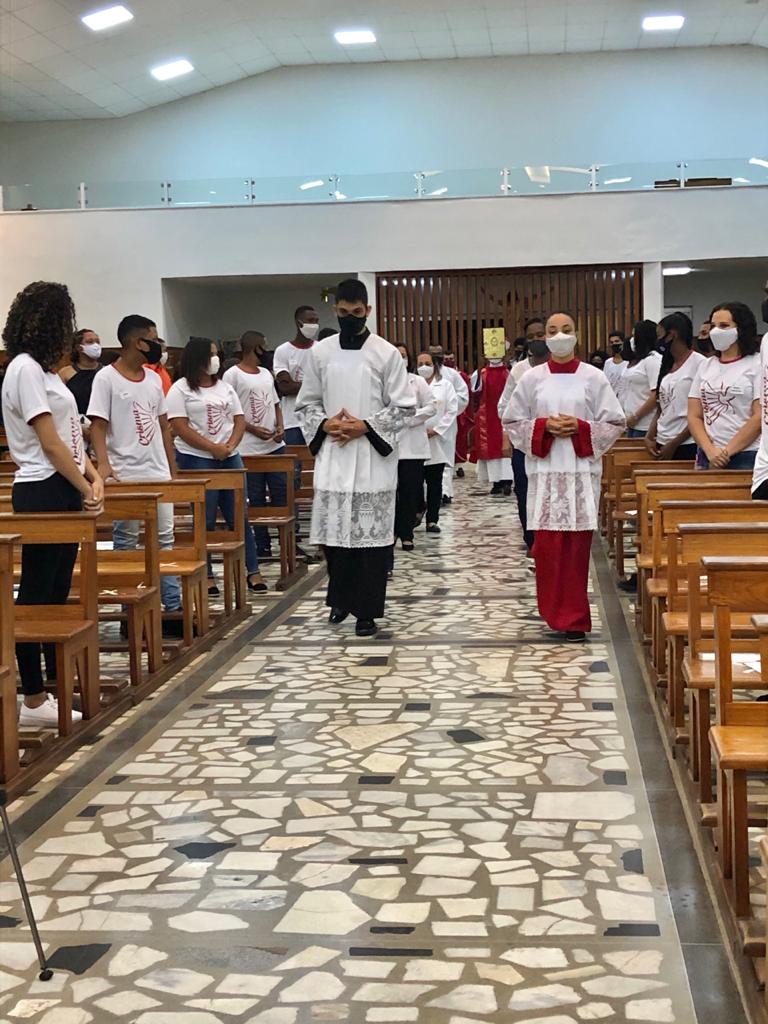 Atendendo às orientações sanitárias visando a proteção contra a transmissão do vírus da Covid-19, o grupo foi divido em duas turmas, com Missas às 15 e às 19 horas. Presidiram a celebração o Bispo Diocesano, Pe. Edinei Barros e participaram também os Diáconos Gustavo Alves e Luciano Santos, além dos seminaristas Arthur Guilherme e Francis.