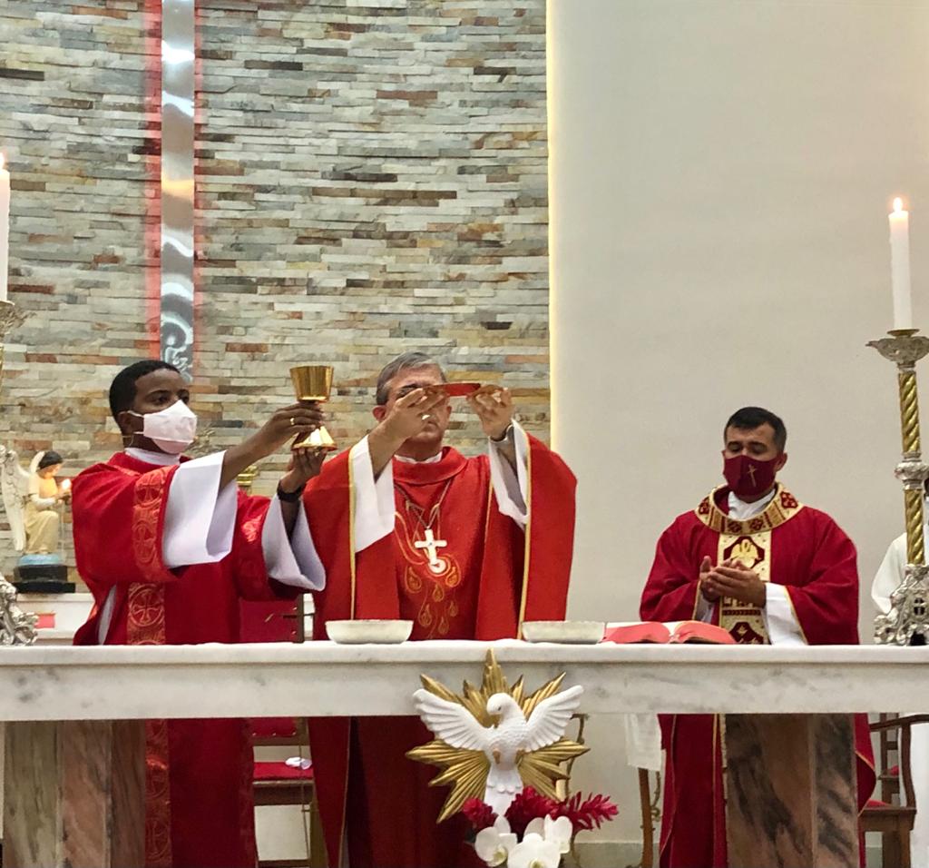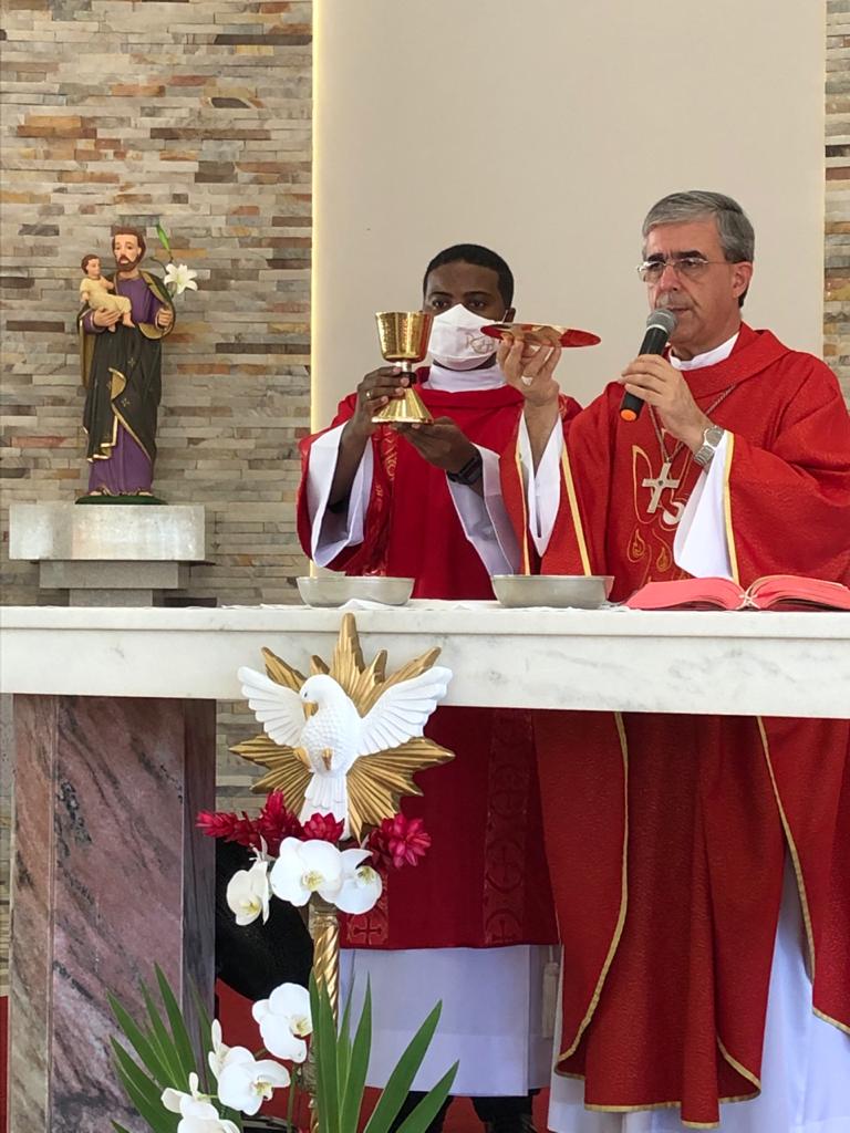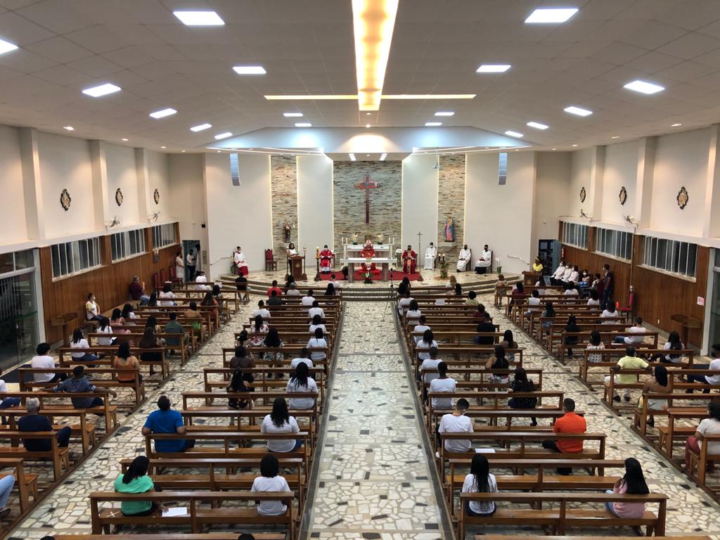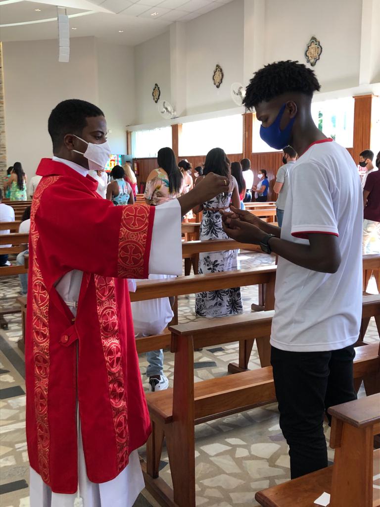 Atendendo às orientações sanitárias visando a proteção contra a transmissão do vírus da Covid-19, o grupo foi divido em duas turmas, com Missas às 15 e às 19 horas. Presidiram a celebração o Bispo Diocesano, Pe. Edinei Barros e participaram também os Diáconos Gustavo Alves e Luciano Santos, além dos seminaristas Arthur Guilherme e Francis.