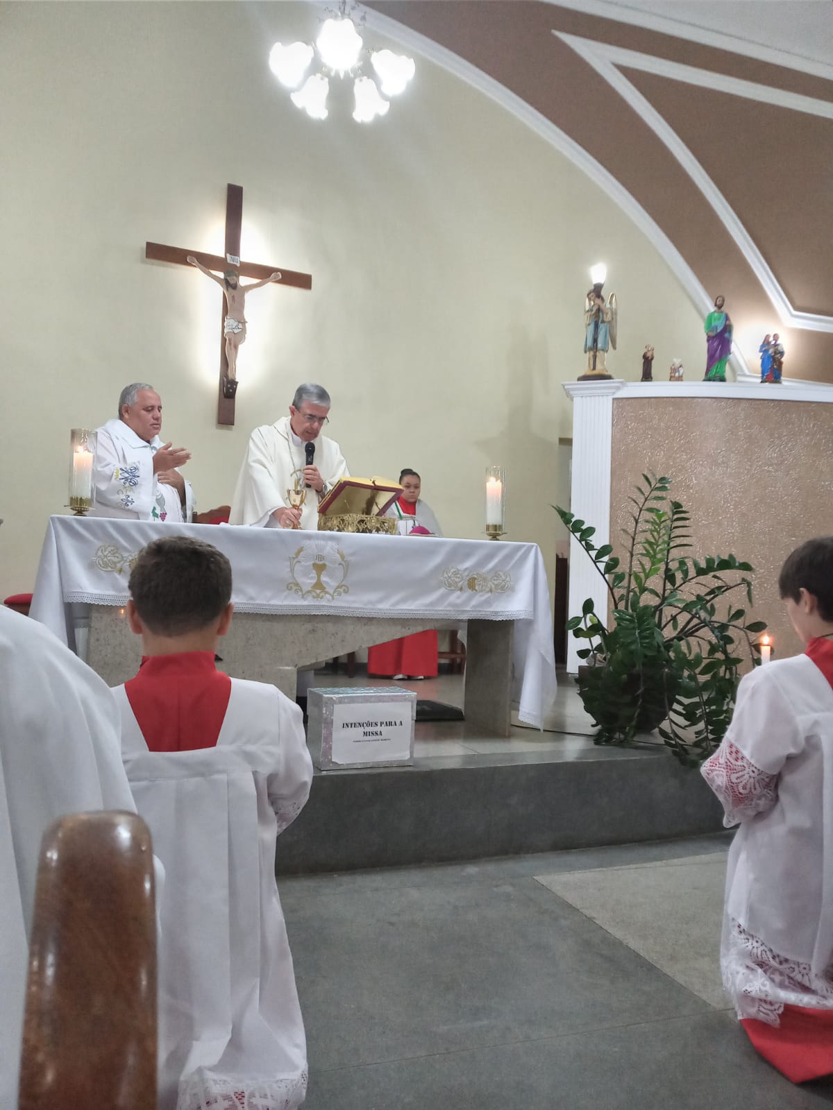 Já no sábado, nosso Bispo Diocesano participou da reunião do CPP, celebrou a Santa Missa na Comunidade do burrinho de baixo e na Matriz. Por fim, no domingo, Dom Marco Aurélio participou de um café com os representantes das comunidades, e em seguida, presidiu a Eucaristia na Igreja Matriz.