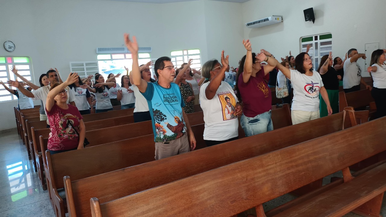Na sequência, a coordenadora Célia promoveu uma dinâmica em alusão ao Dia das Mães, que seria celebrado no dia seguinte. O encontro foi entremeado por momentos de louvor e oração, conduzidos pelo ministério de música da Paróquia Senhor do Bonfim, proporcionando uma verdadeira experiência do amor de Deus.