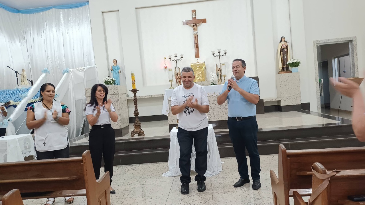 Após um delicioso lanche, marcado pela interação fraterna, o Diác. Wellington deu início ao ponto central do encontro: a apresentação da Pastoral da Pessoa com Deficiência, em fase de formação em nossa diocese. A exposição contou com a participação do coordenador diocesano e regional da pastoral, Avelino Cruz, e da coordenadora paroquial da PPCD na Paróquia Nossa Senhora da Esperança, Patrícia Bicalho Pinto Pacheco. Foi um momento de enriquecimento, com explicações e exemplos práticos sobre como acolher bem nossos irmãos cadeirantes, surdos, pessoas com deficiência temporária e também crianças e adultos autistas.