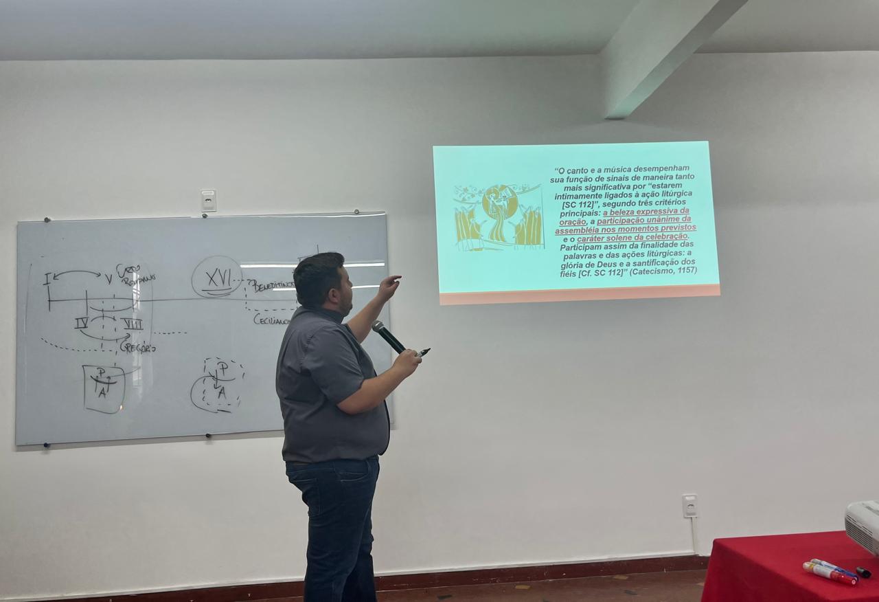 Durante as formações, o assessor fez amplo uso da Instrução Geral do Missal Romano (IGMR), documento essencial para a compreensão da unidade e da universalidade da liturgia, que ao longo dos séculos serviu de referência para que o culto cristão se consolidasse e se espalhasse pelo mundo. Padre Antônio destacou a importância de compreender o canto litúrgico não como mero adorno, mas como parte integrante da ação celebrativa, a serviço da assembleia e da comunhão eclesial.