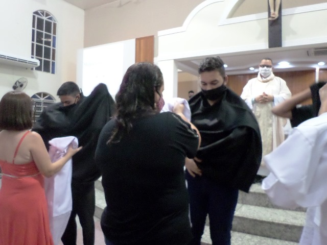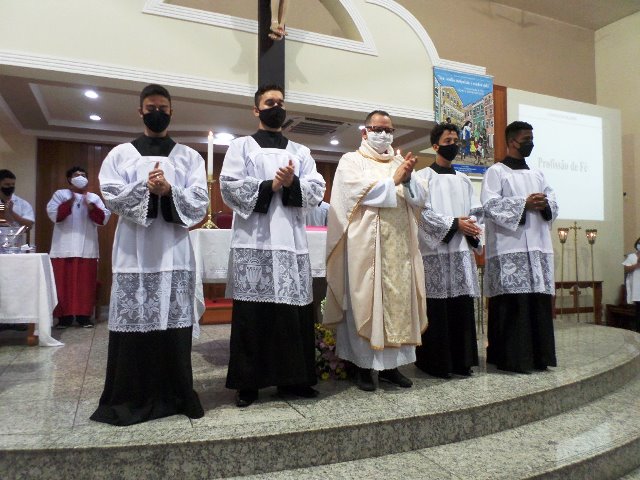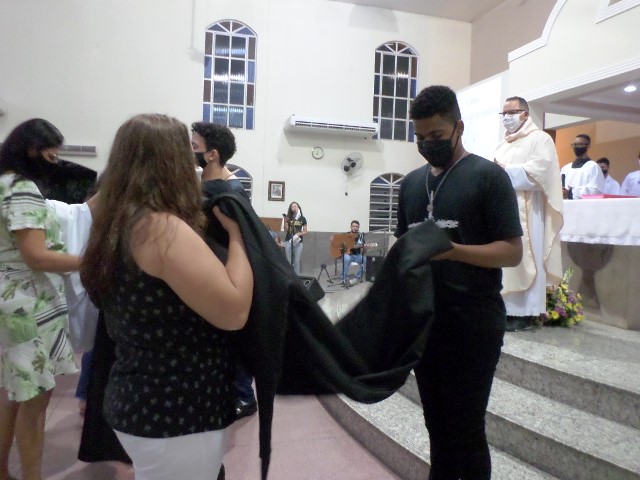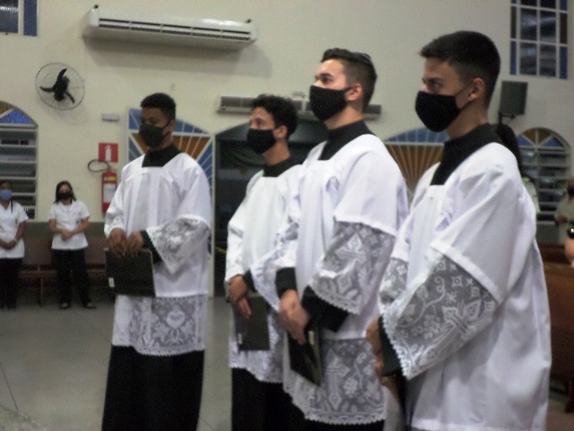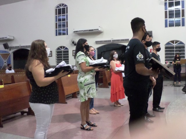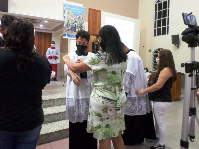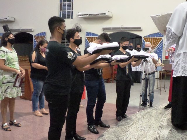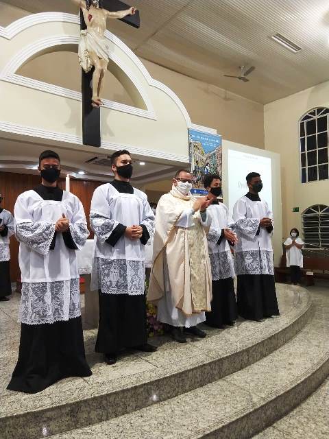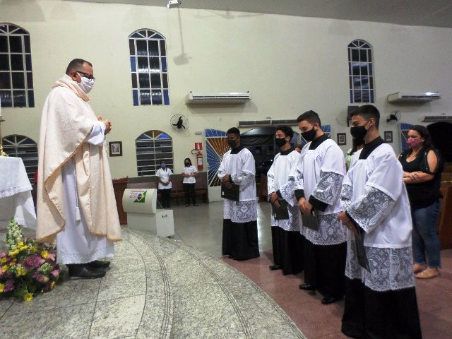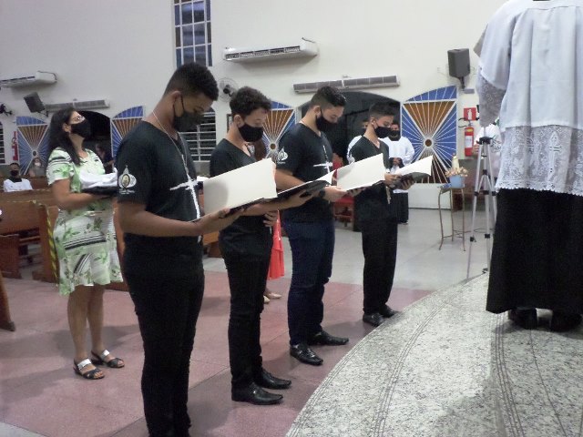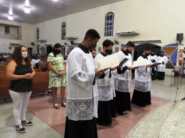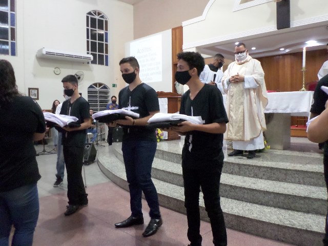 Durante a cerimonia os novos acólitos foram recebidos com suas madrinhas ao Presbitério para o envio, à presença da comunidade reunida, fizeram seus votos de dedicação e zelo ao “serviço do Altar”. Seguidamente receberam a Benção Sacerdotal, sendo acolhidos com uma calorosa salva de palmas por todos os presentes.