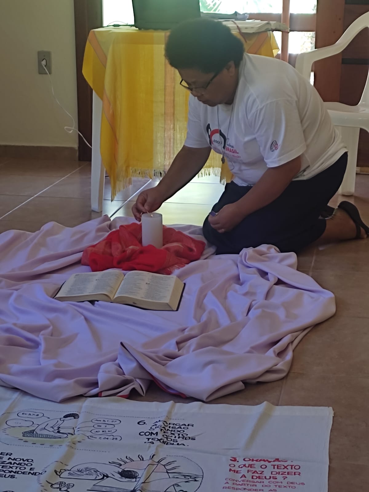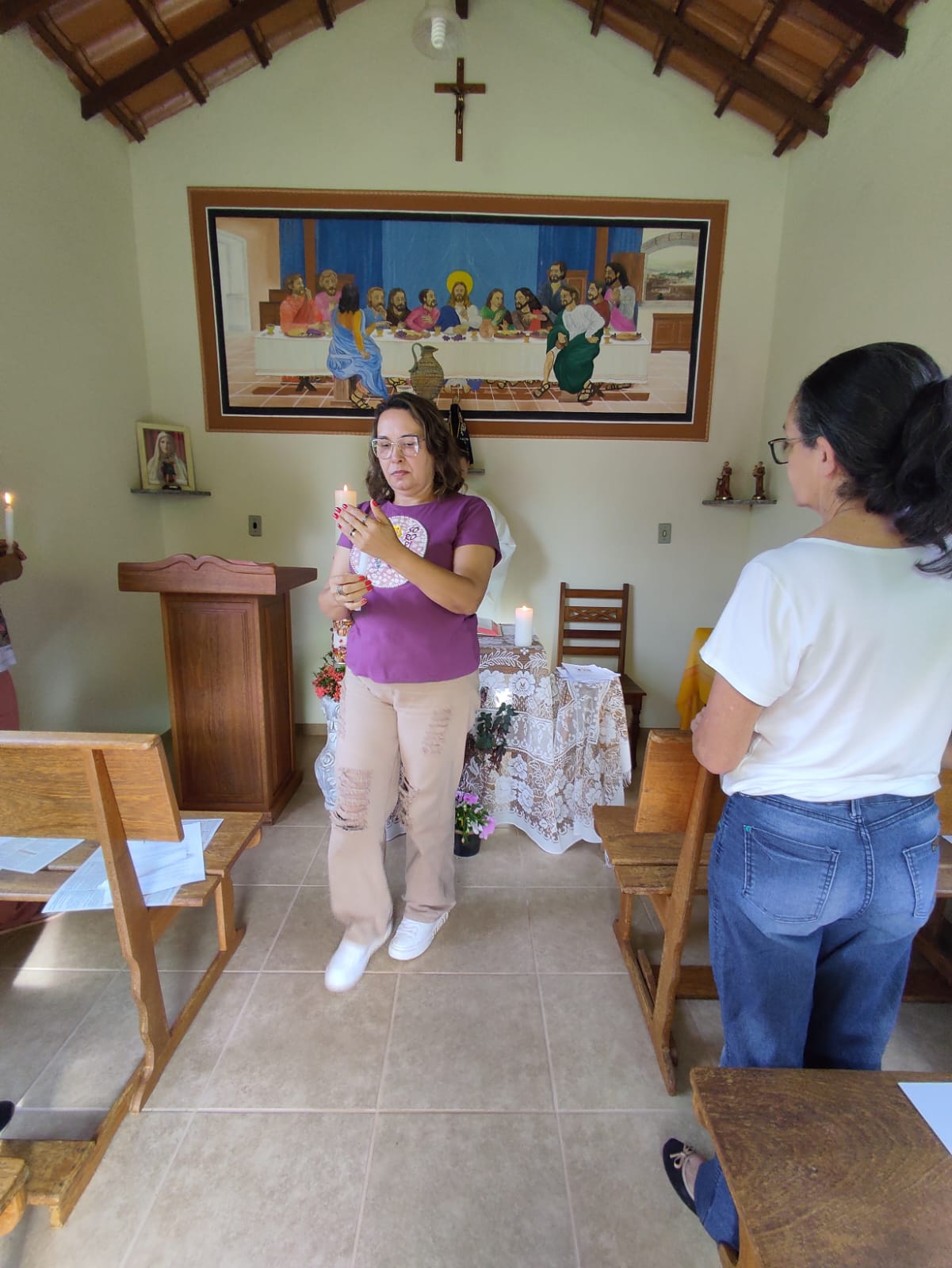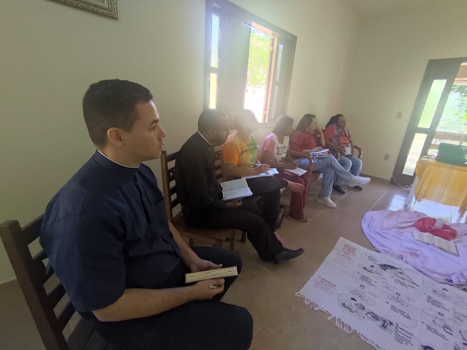 A Ir. Eline conseguiu de forma envolvente contribuir com o silêncio orante, propor as meditações, indicar pistas para orações e conduzir a elaboração pessoal para a vida espiritual. Encerrando o retiro, foi realizado a Santa Missa celebrada pelo Pe. Márcio e o envio dos membros para a missão.